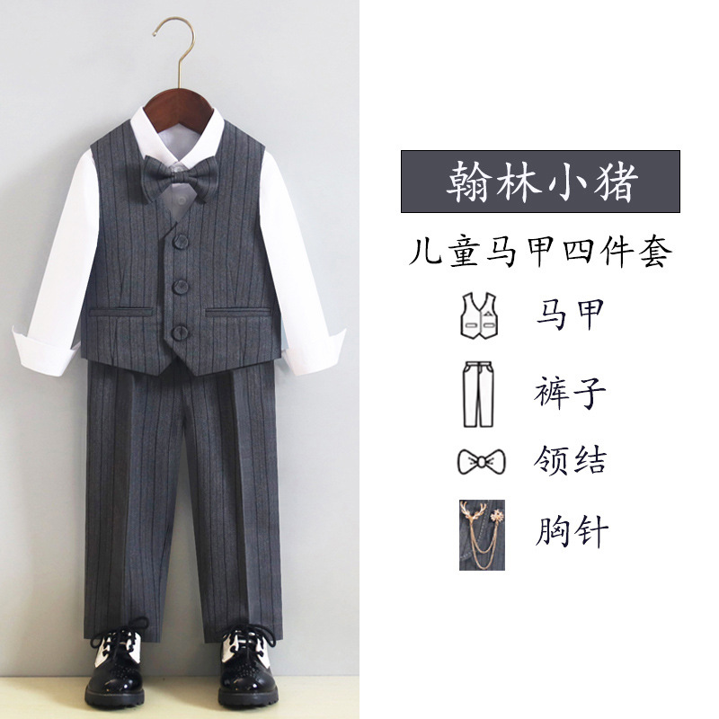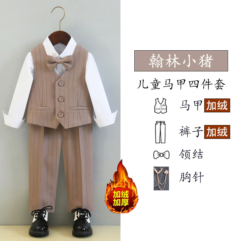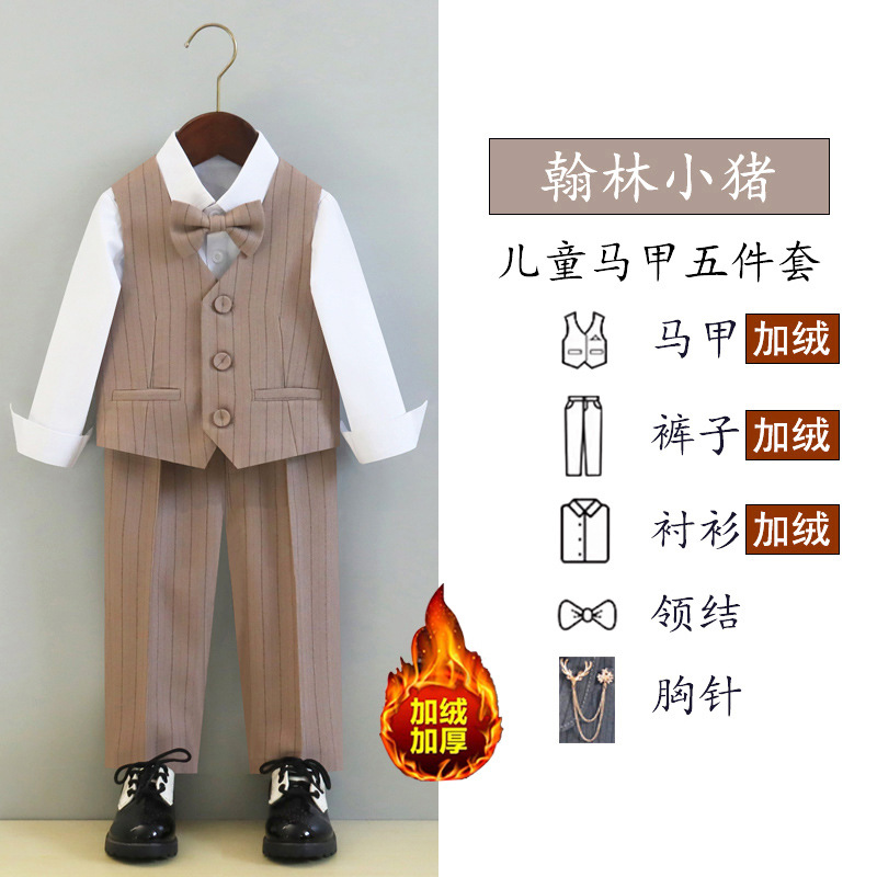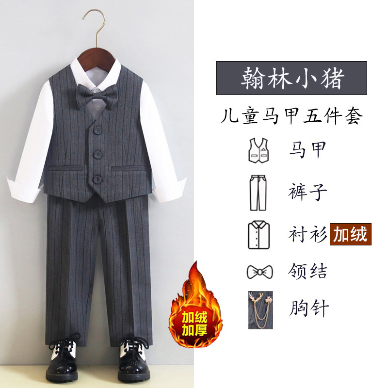 Детский костюм-платье, весенне-осенний костюм, жилет, костюм для мальчика, цветочка, девочки, летний костюм ведущего для выступления на фортепиано, на флисовой подкладке