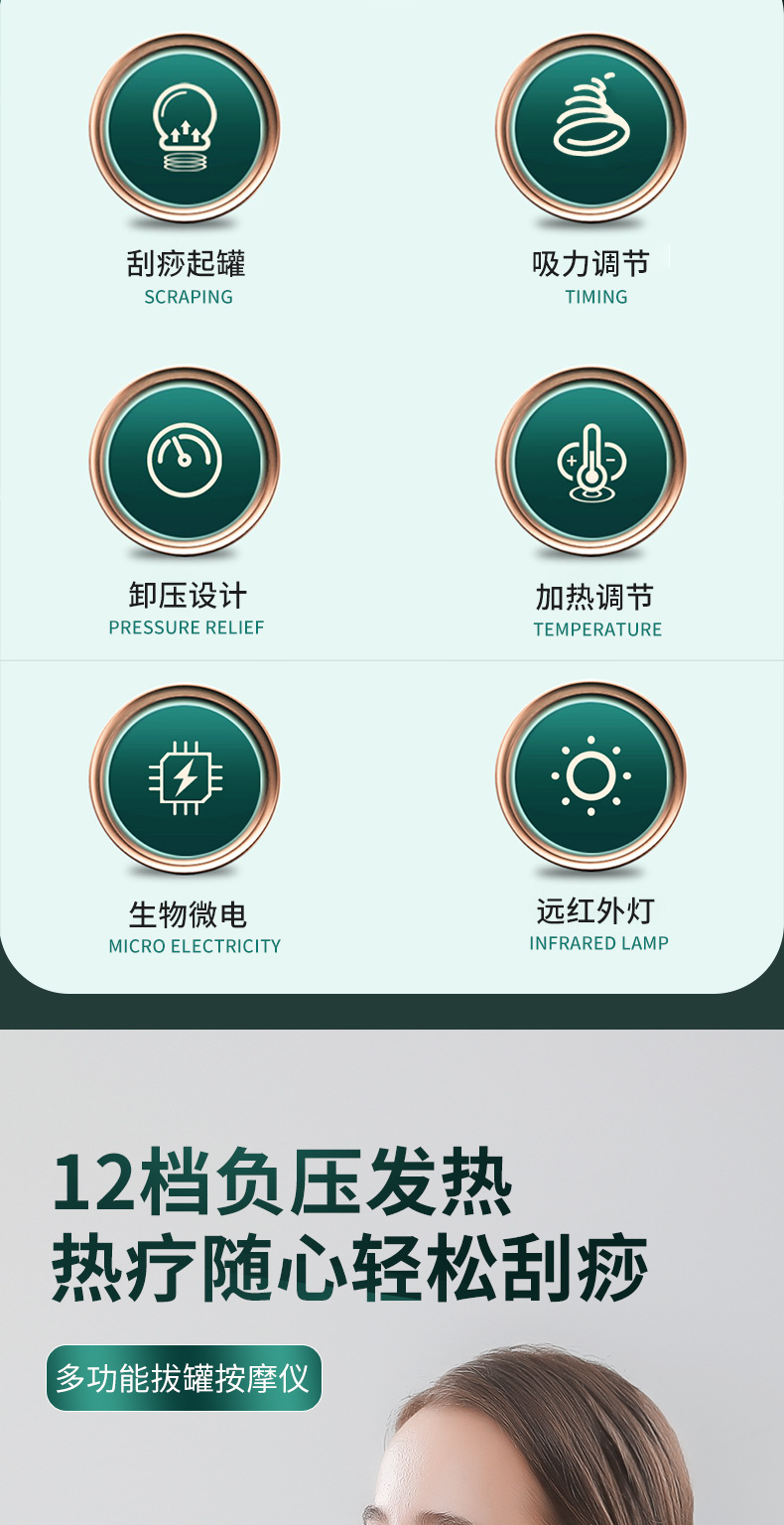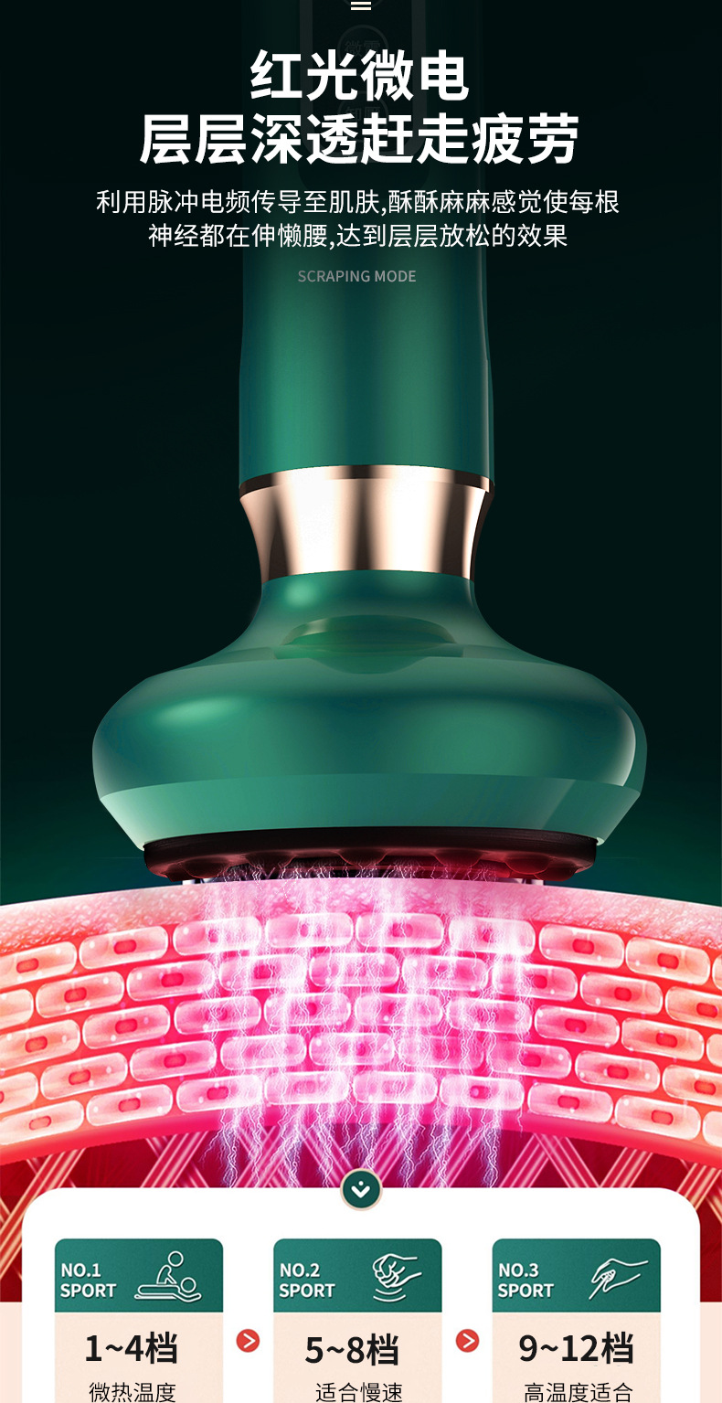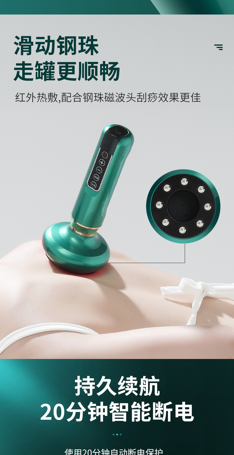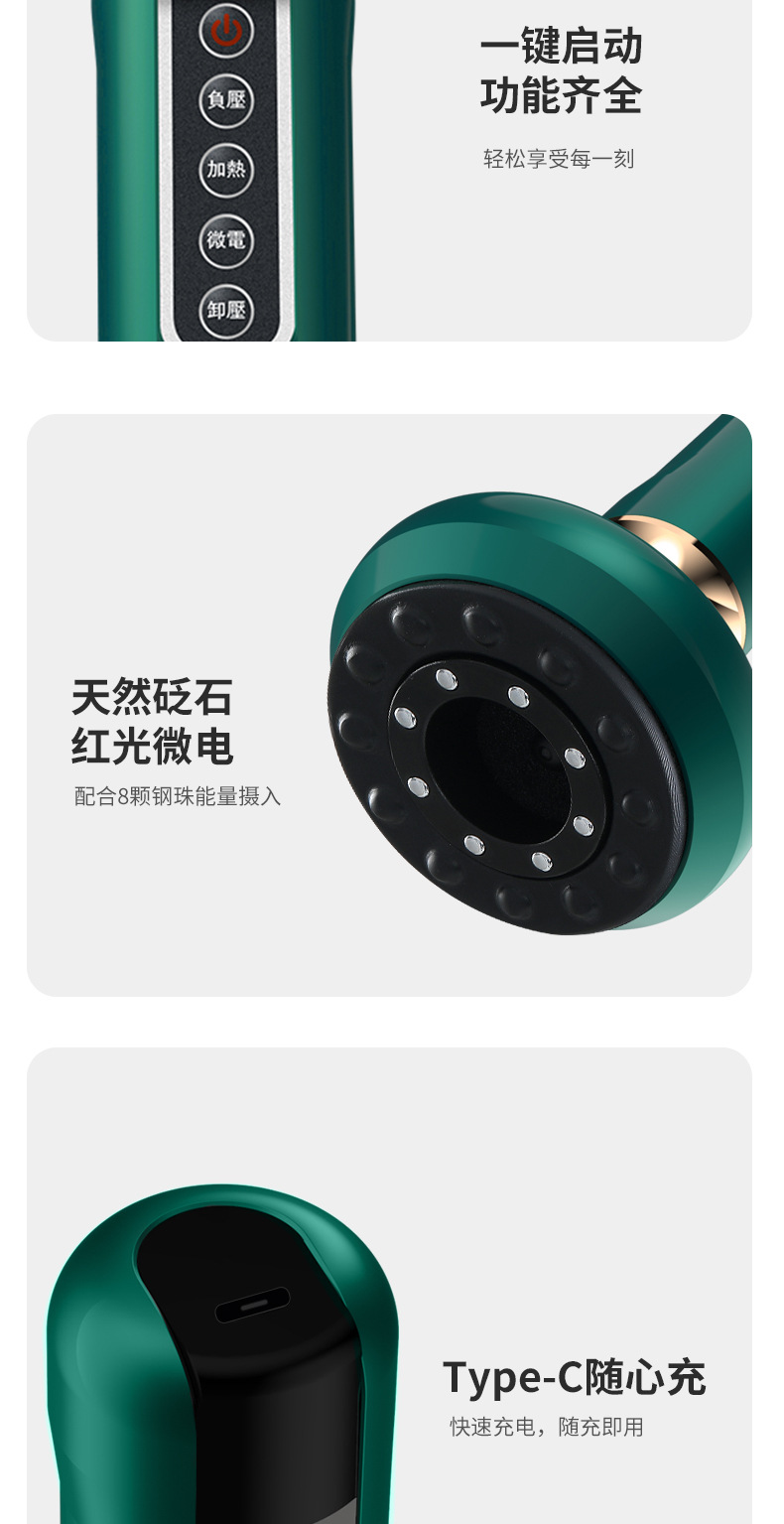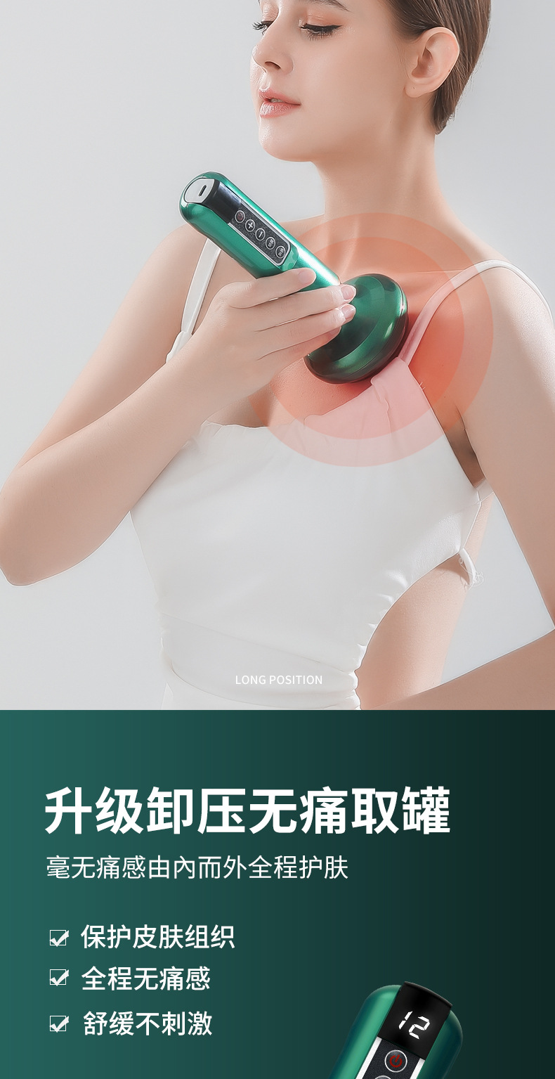 Многофункциональный электрический аппарат для гуаша и меридианной терапии с функцией массажа, светом и вакуумной терапии (глубокий массаж)
