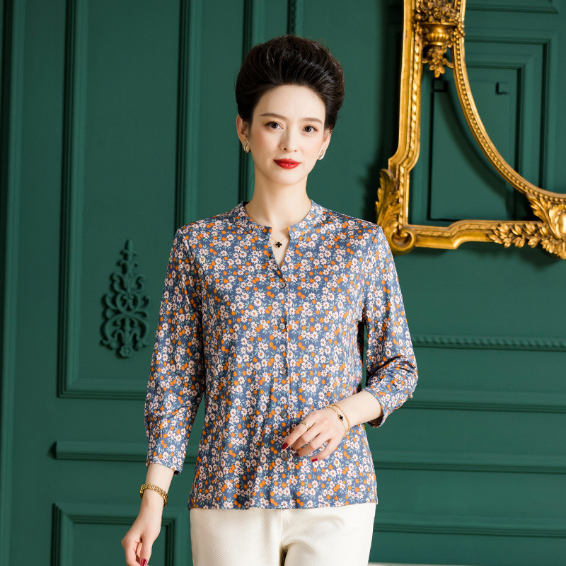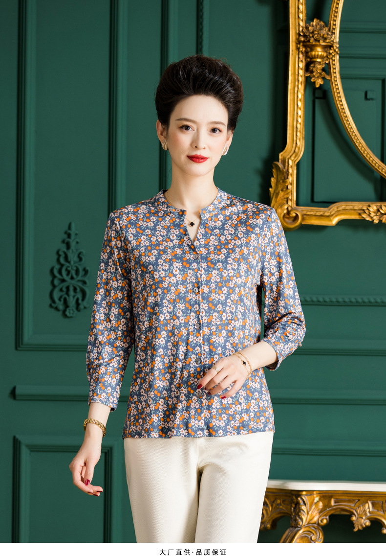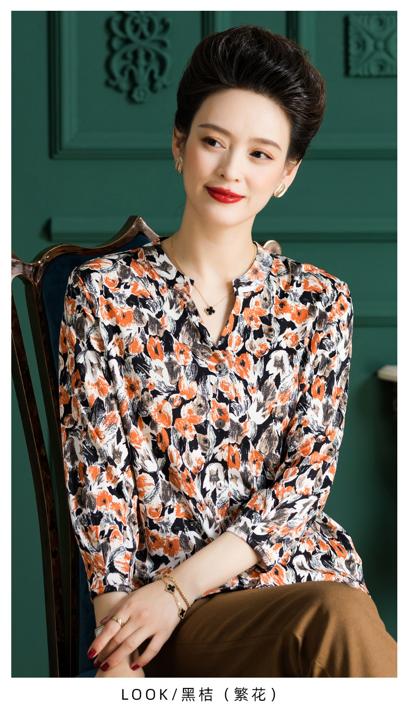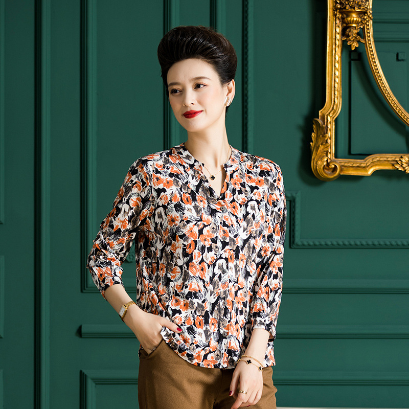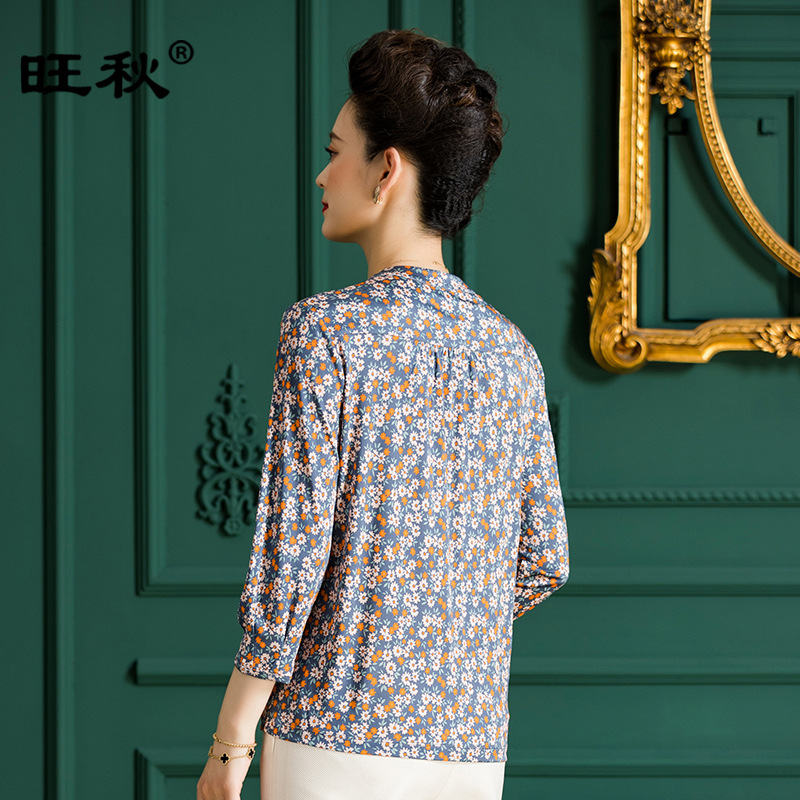 Da Factory прямая печать шелковицы шелковицы топ с круглым вырезом тонкая трикотажная рубашка тяжелый шелковый топ F3365