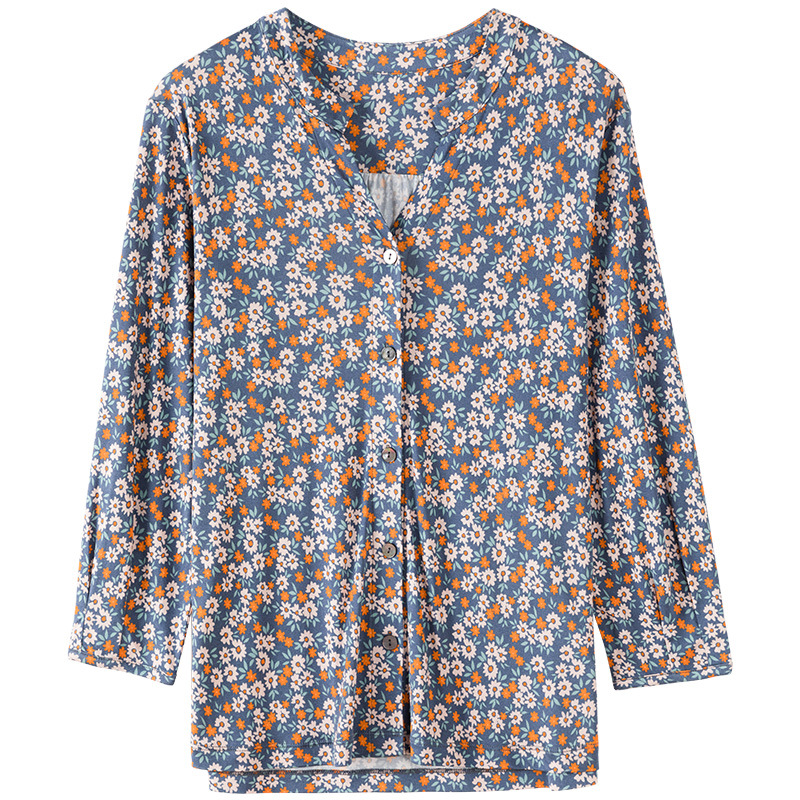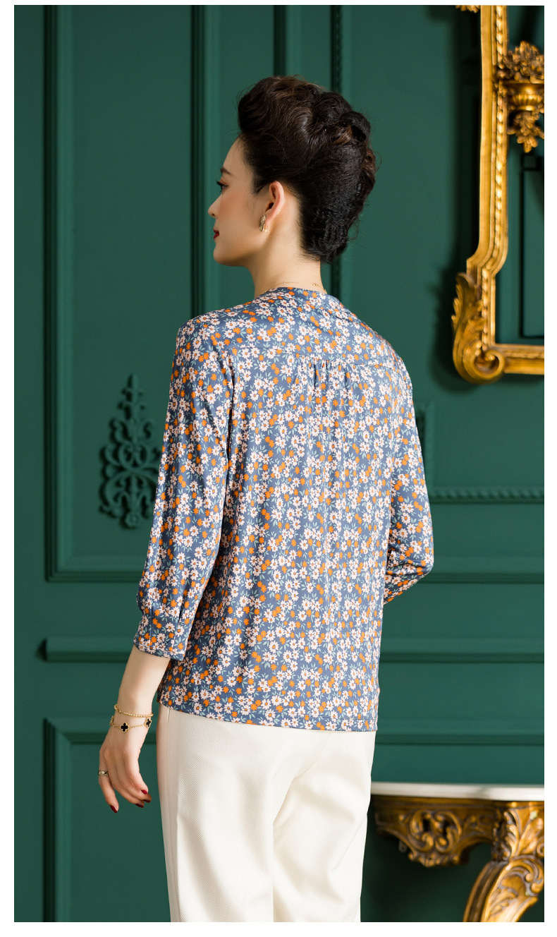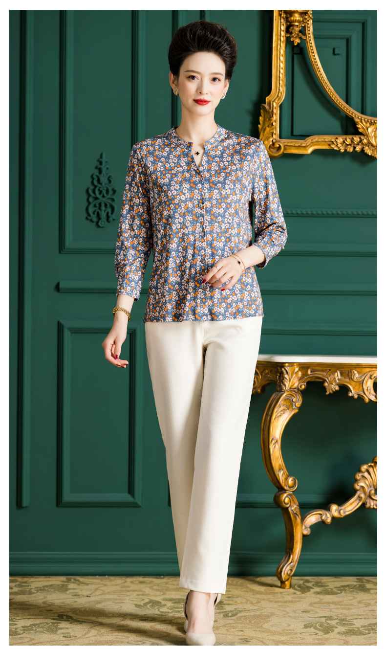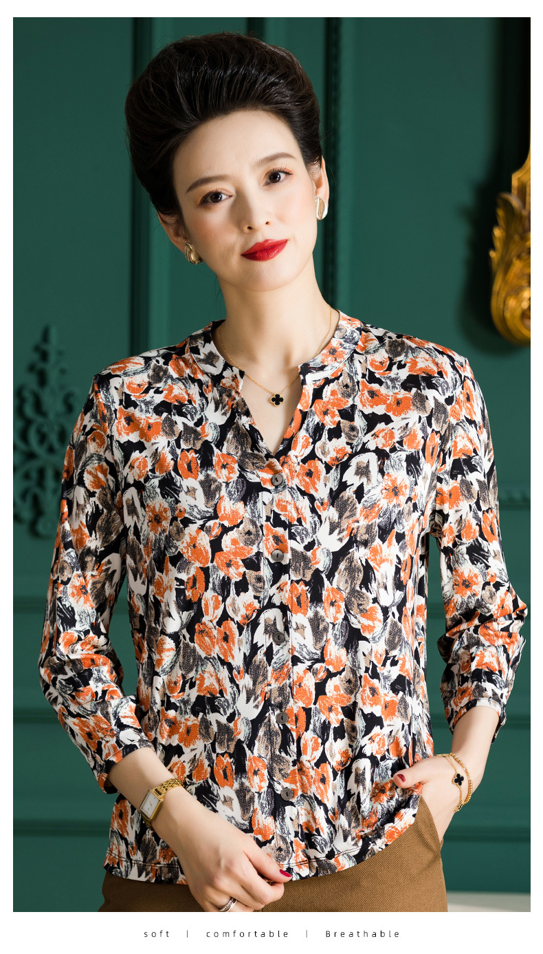 Da Factory прямая печать шелковицы шелковицы топ с круглым вырезом тонкая трикотажная рубашка тяжелый шелковый топ F3365
