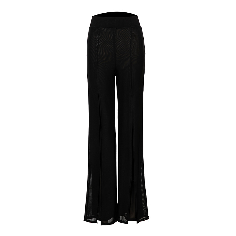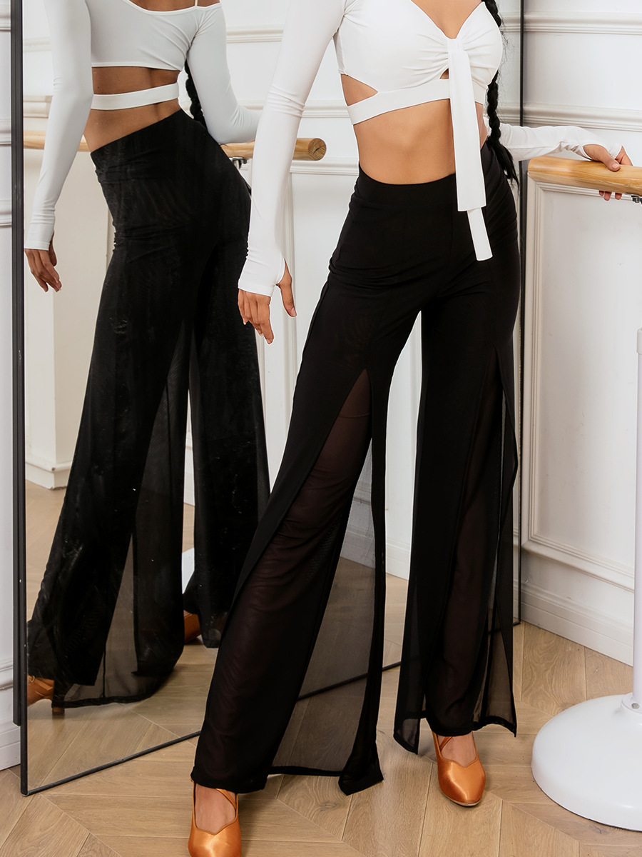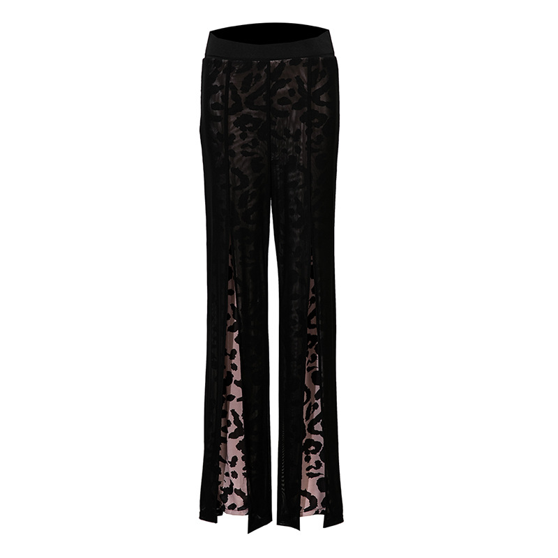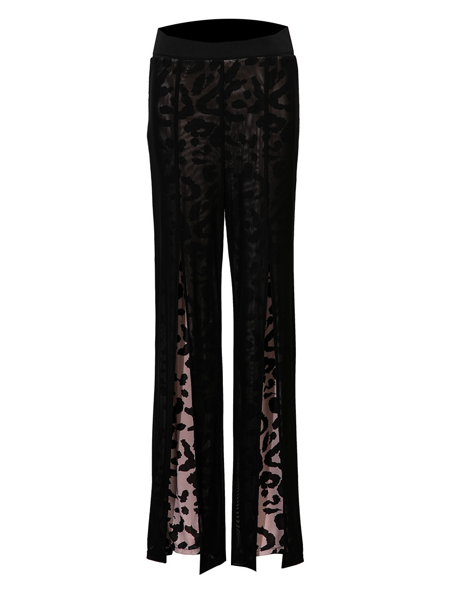 Латинский танец с открытым и двойным слоями сетчатой пряжи высокого уровня чувство широкие брюки 2024 новый леопардовый стиль танцевальные брюки