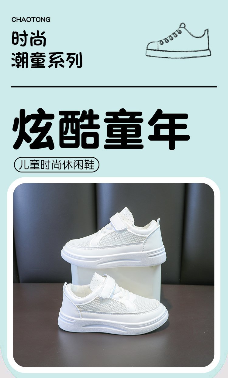 Детская Белая обувь 2024 года, весенне-летние новые дышащие белые кроссовки для мальчиков из одной сетки, Повседневные кроссовки для девочек, модные