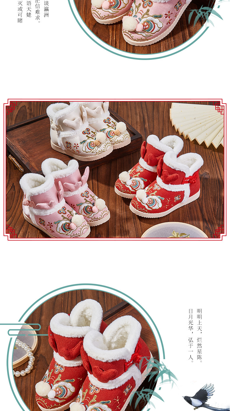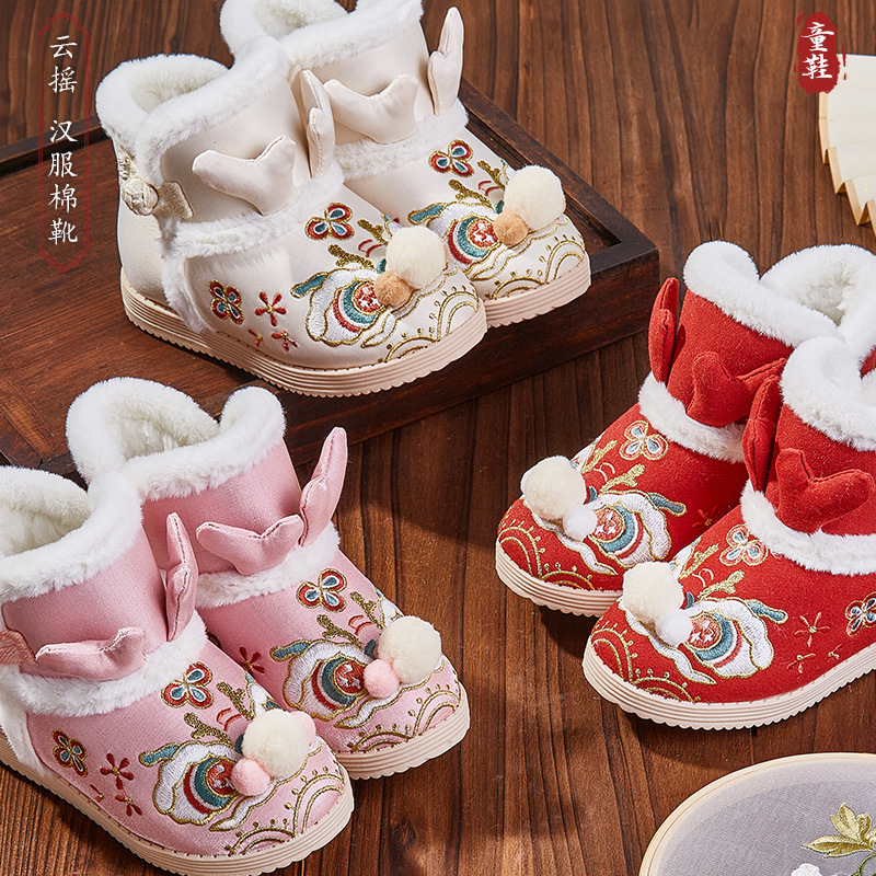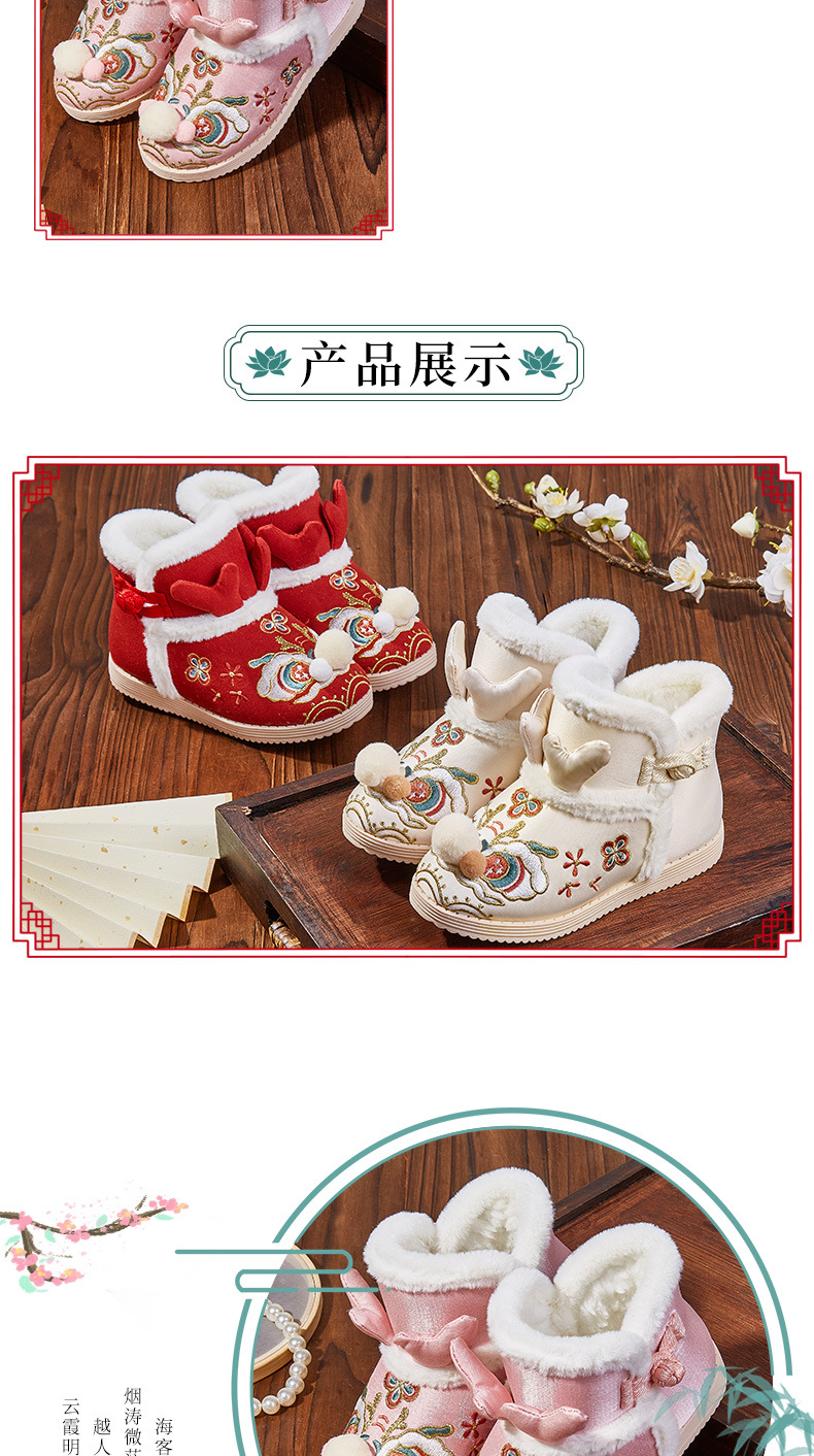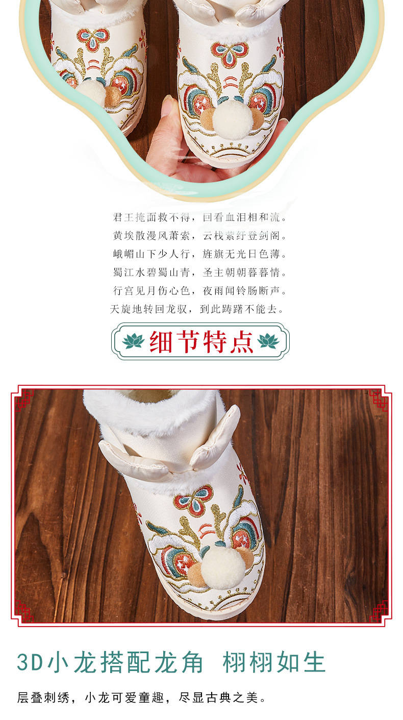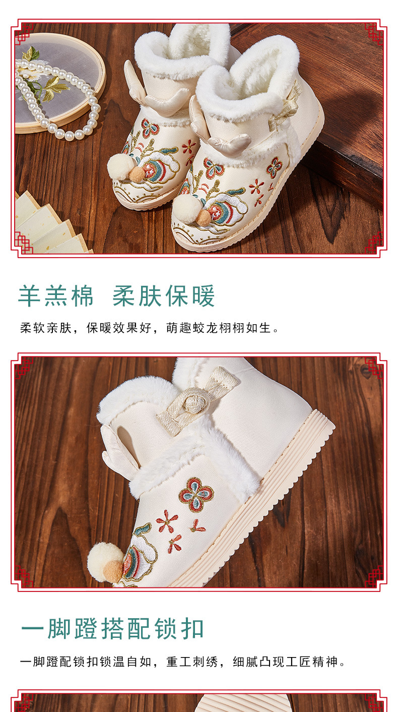 3D облако дрожать Дракон рог утолщенный цветок древний костюм этнический стиль обувь для девочек зима Новый Год Дракона обувь ханьфу