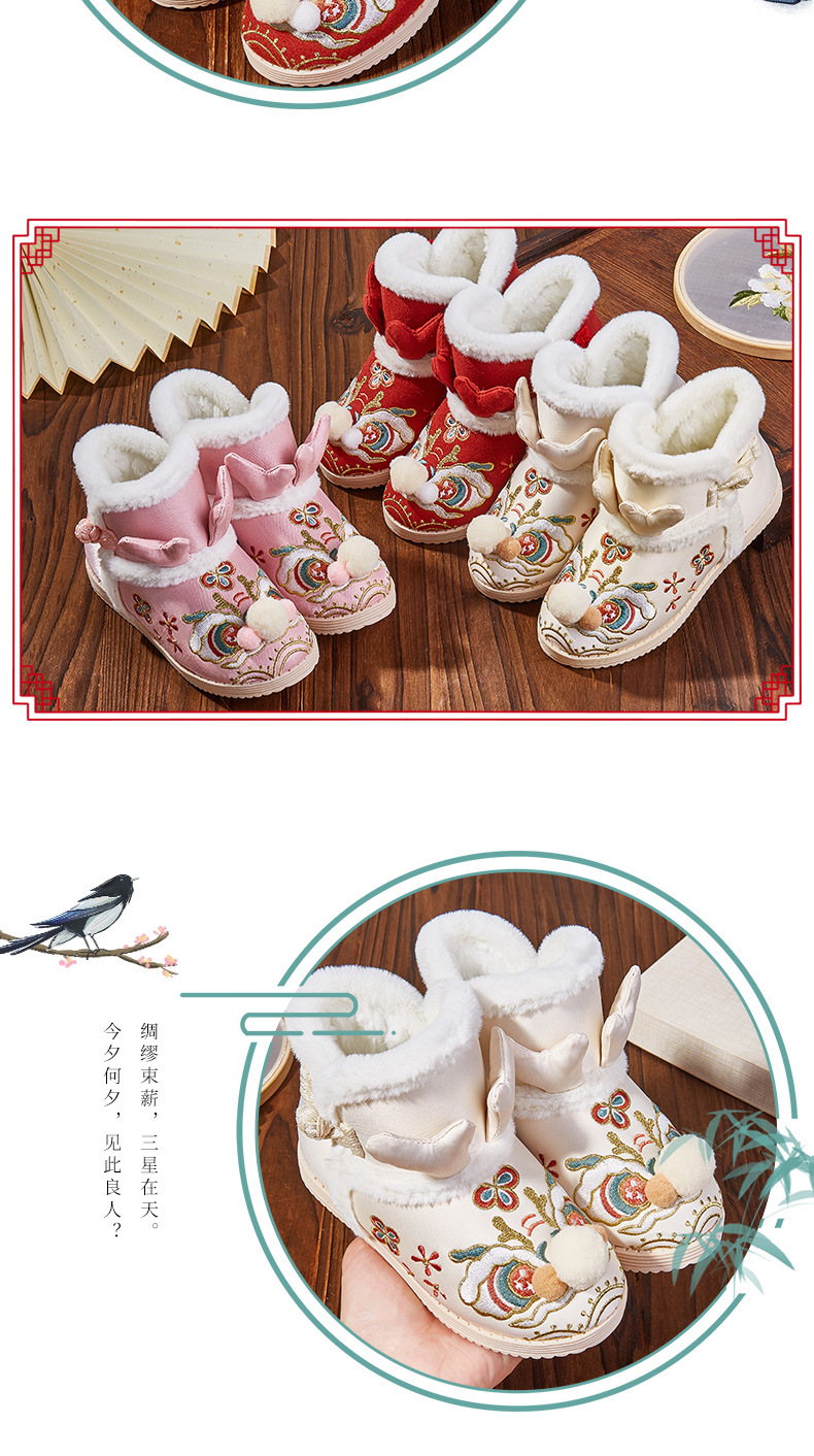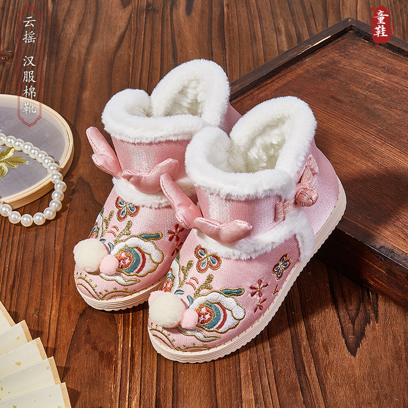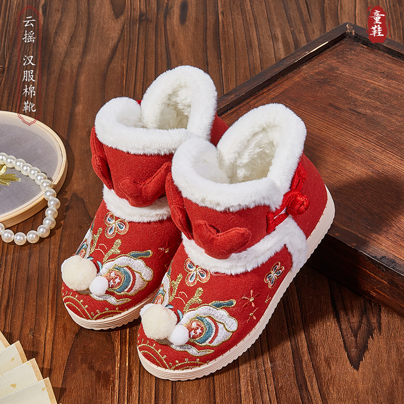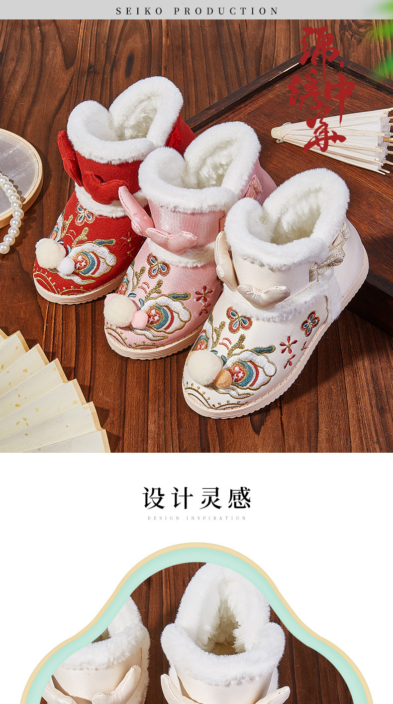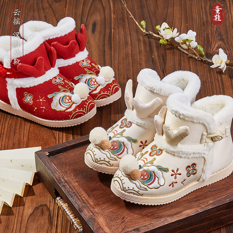 3D облако дрожать Дракон рог утолщенный цветок древний костюм этнический стиль обувь для девочек зима Новый Год Дракона обувь ханьфу