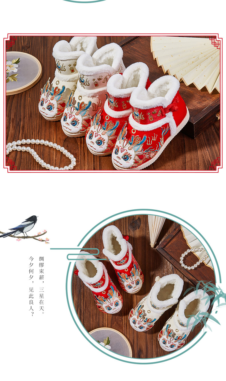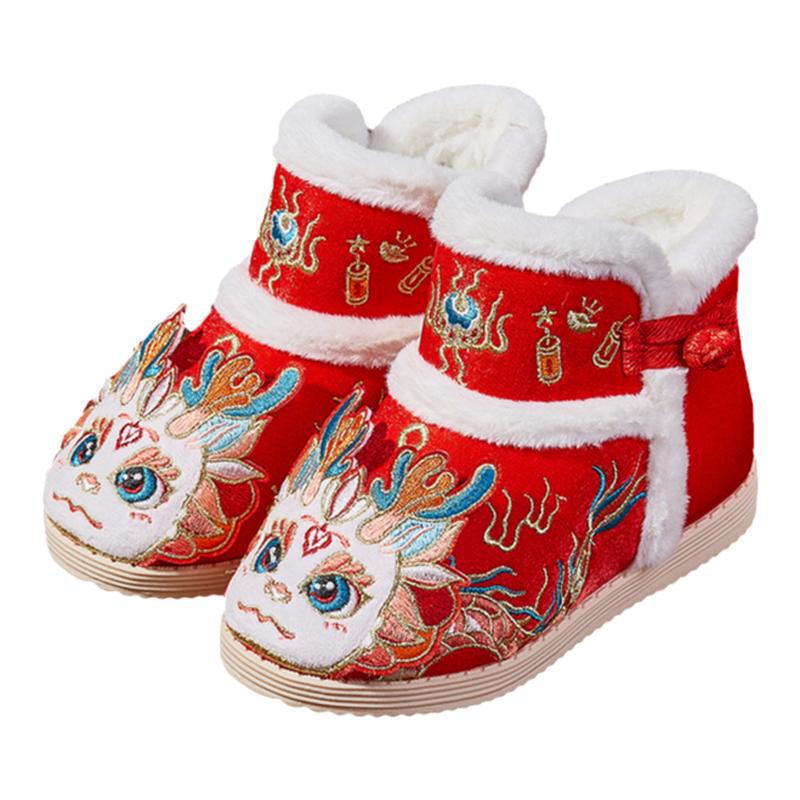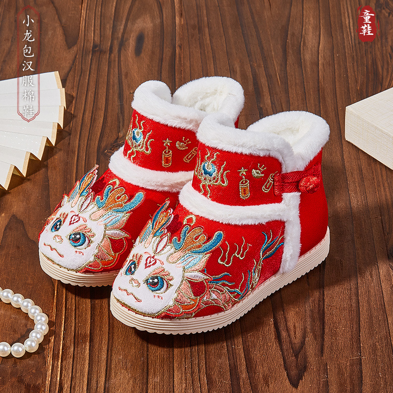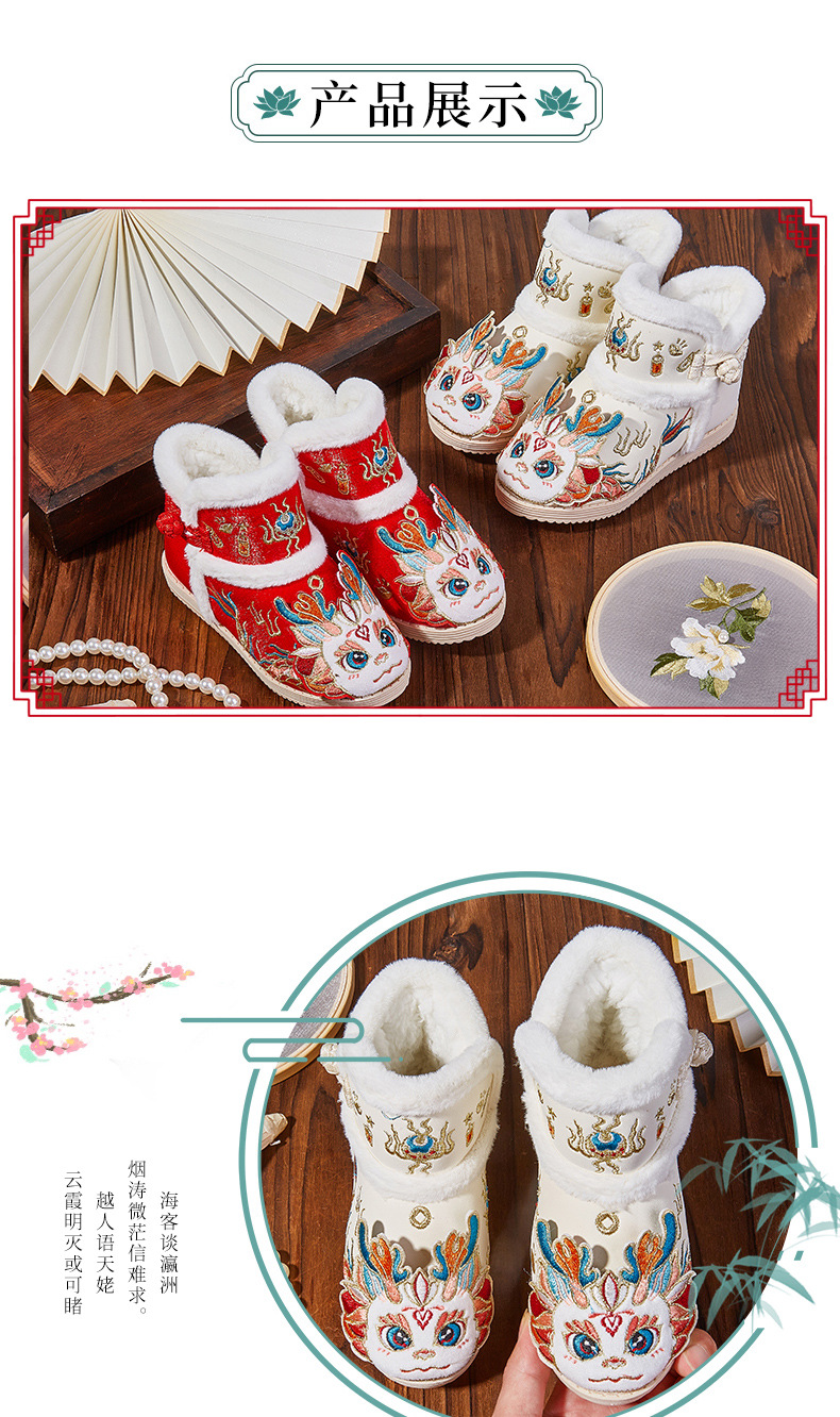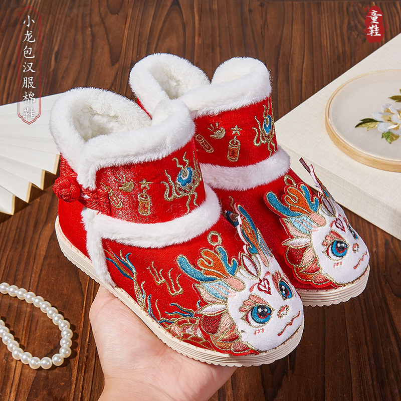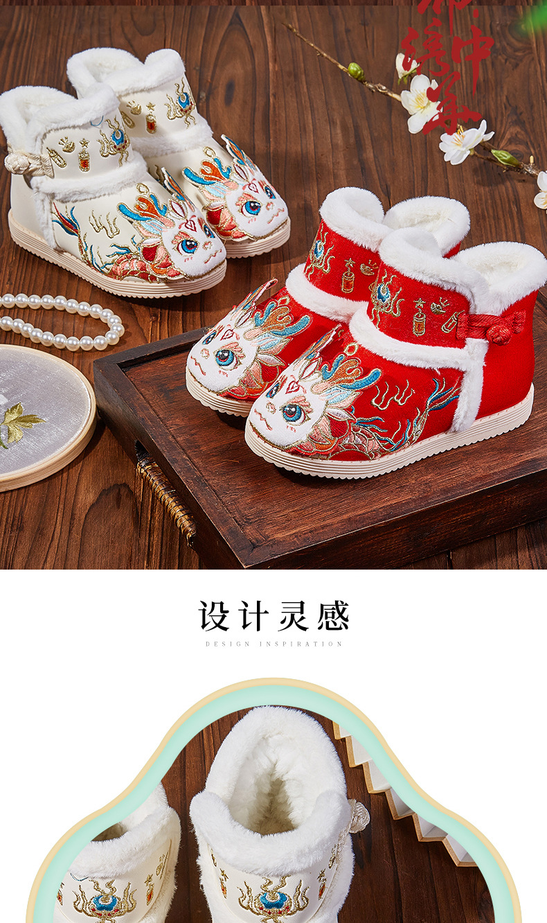 Новая утолщенная хлопковая обувь Longnian Детские хлопковые сапоги Обувь Hanfu для девочек Новогодний зверь без шнуровки обувь из хлопчатобумажной ткани утолщенная обувь с вышивкой