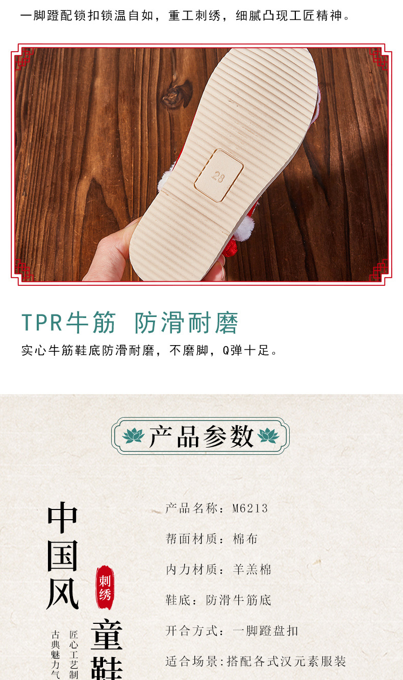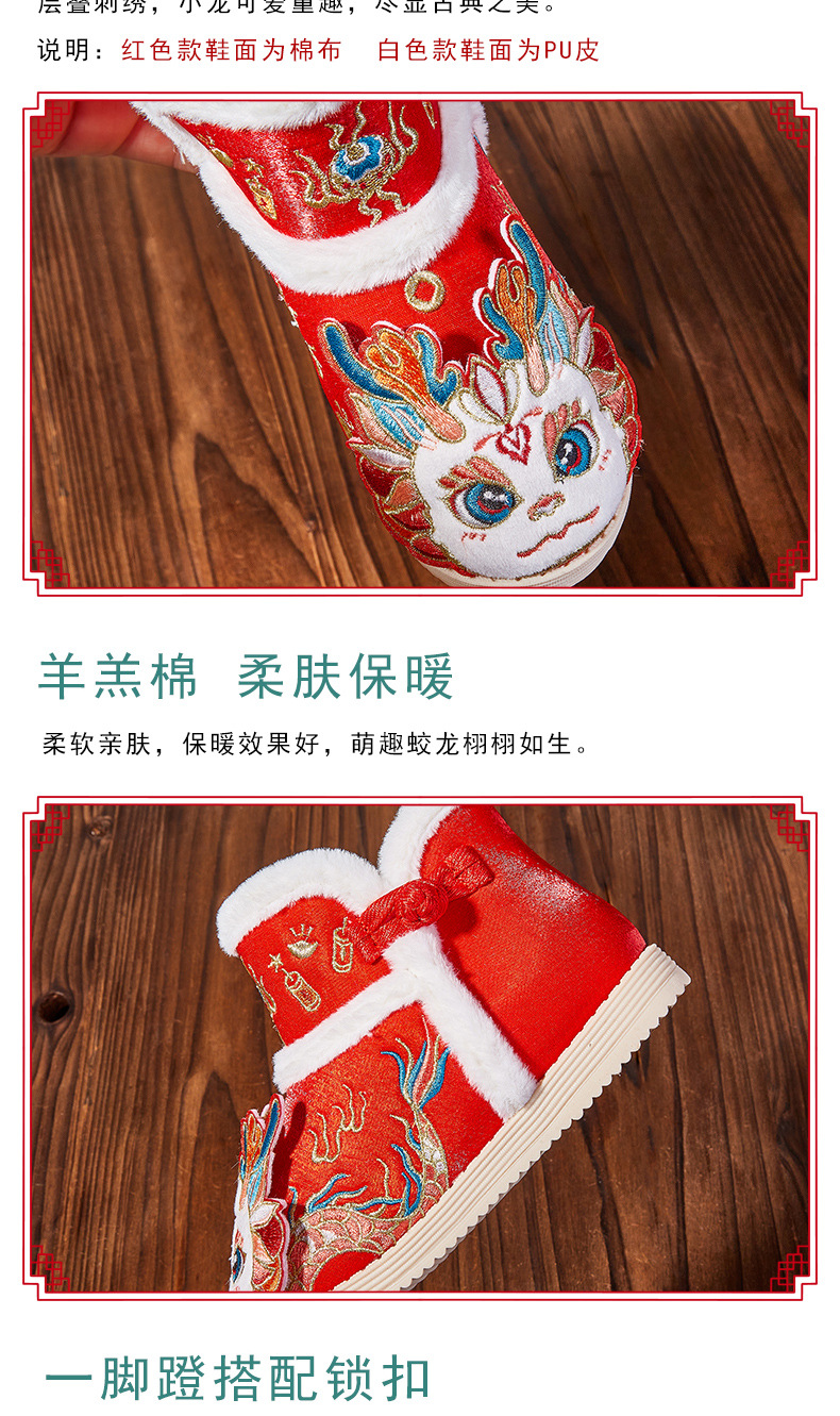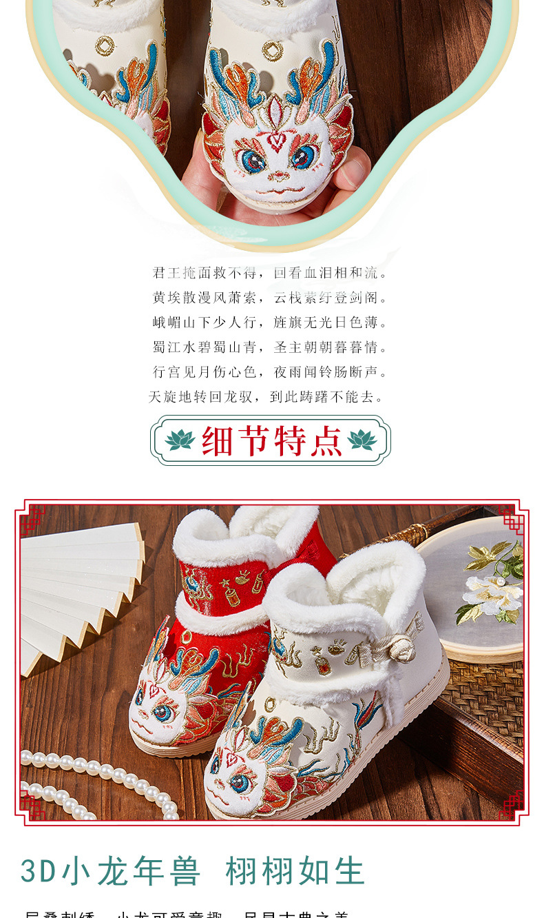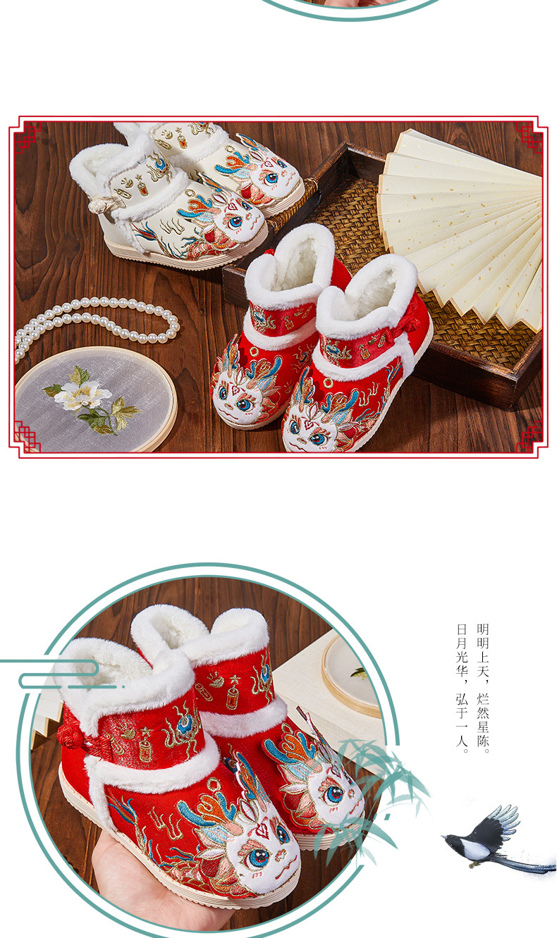 Новая утолщенная хлопковая обувь Longnian Детские хлопковые сапоги Обувь Hanfu для девочек Новогодний зверь без шнуровки обувь из хлопчатобумажной ткани утолщенная обувь с вышивкой