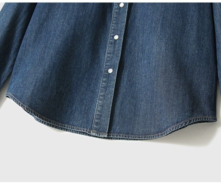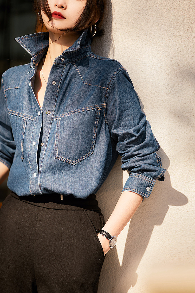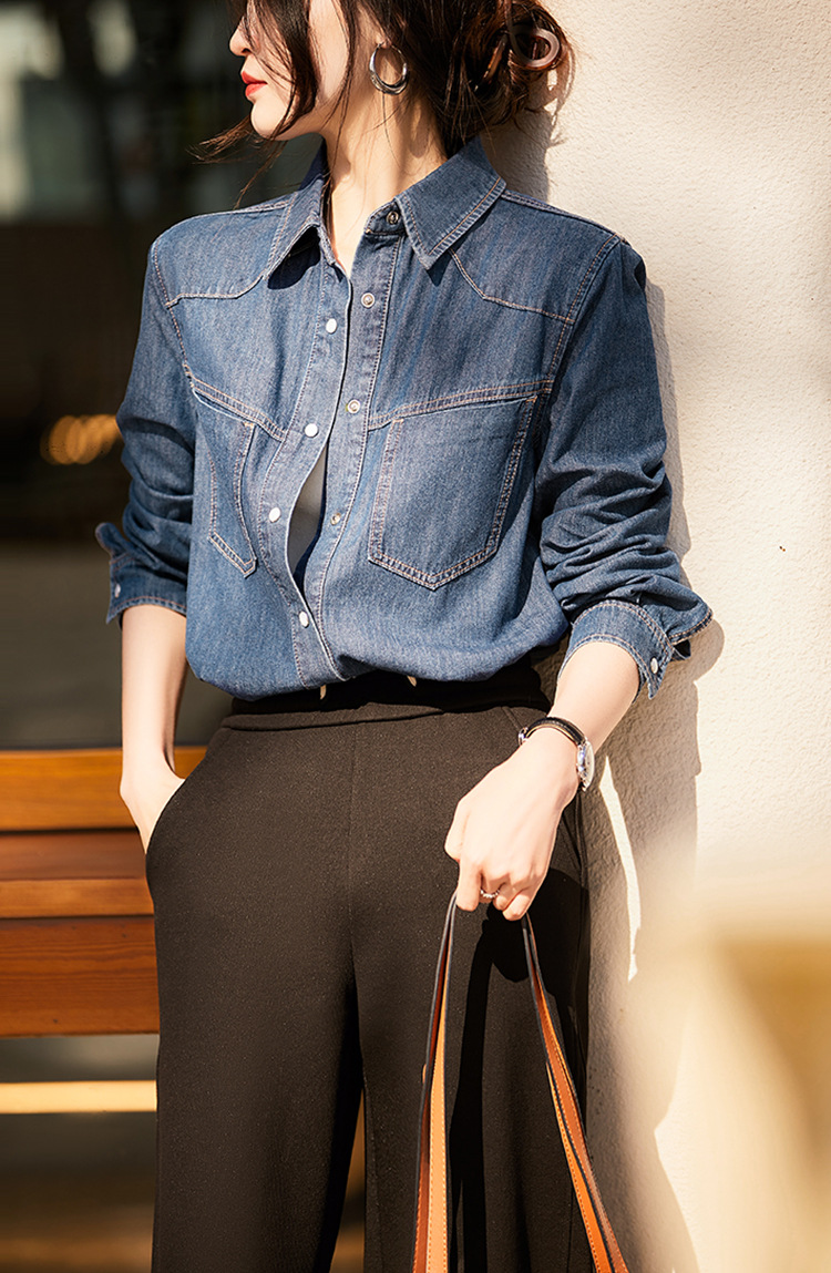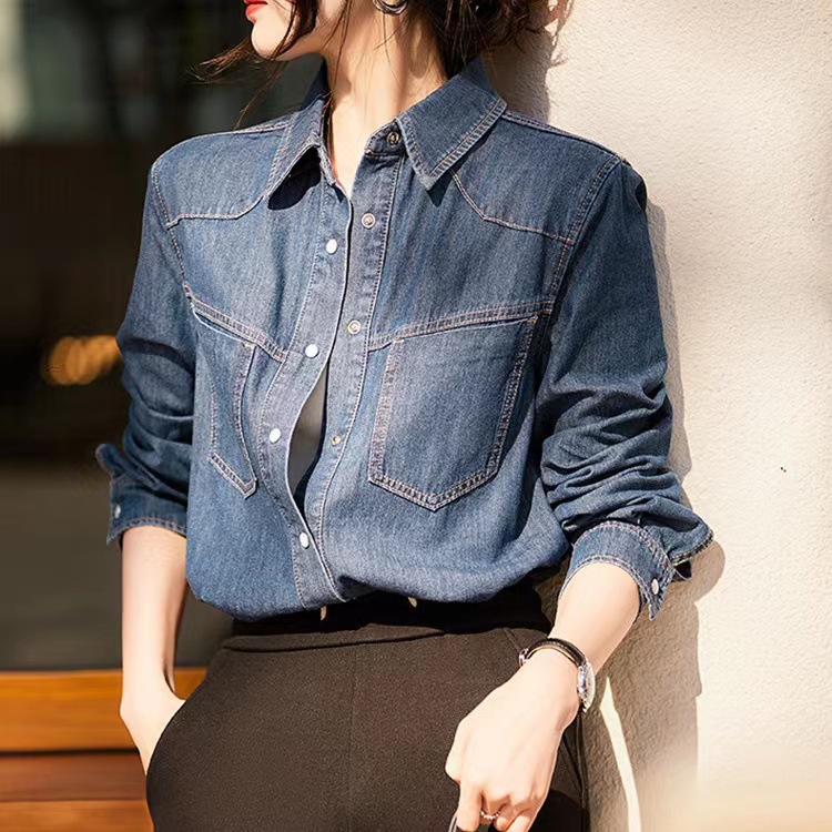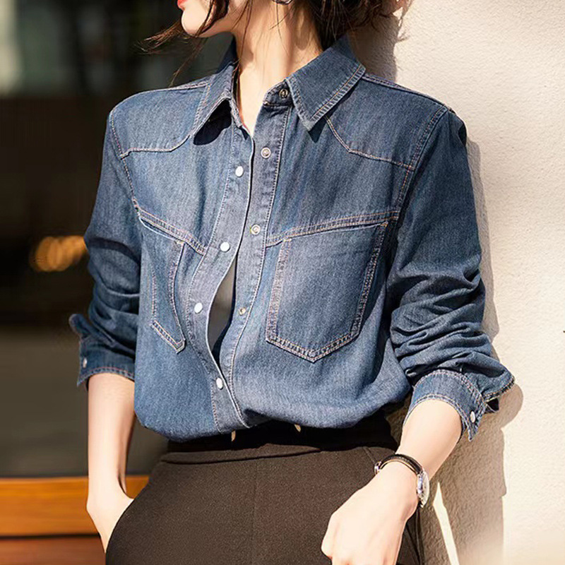 Синяя джинсовая рубашка в стиле ретро в гонконгском стиле для женщин, весна и осень 2024 года, новый дизайн, Ниша, внутренняя одежда, французский топ