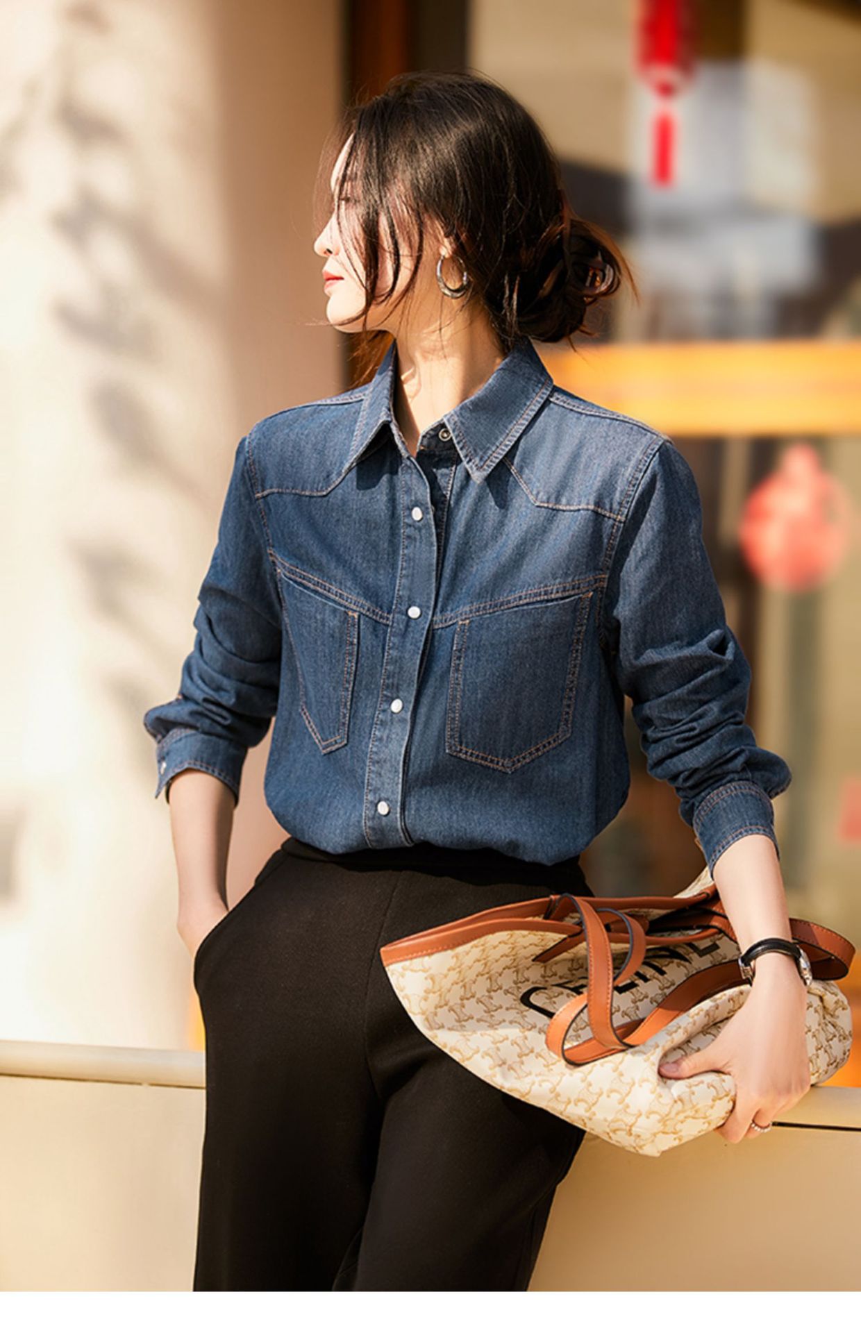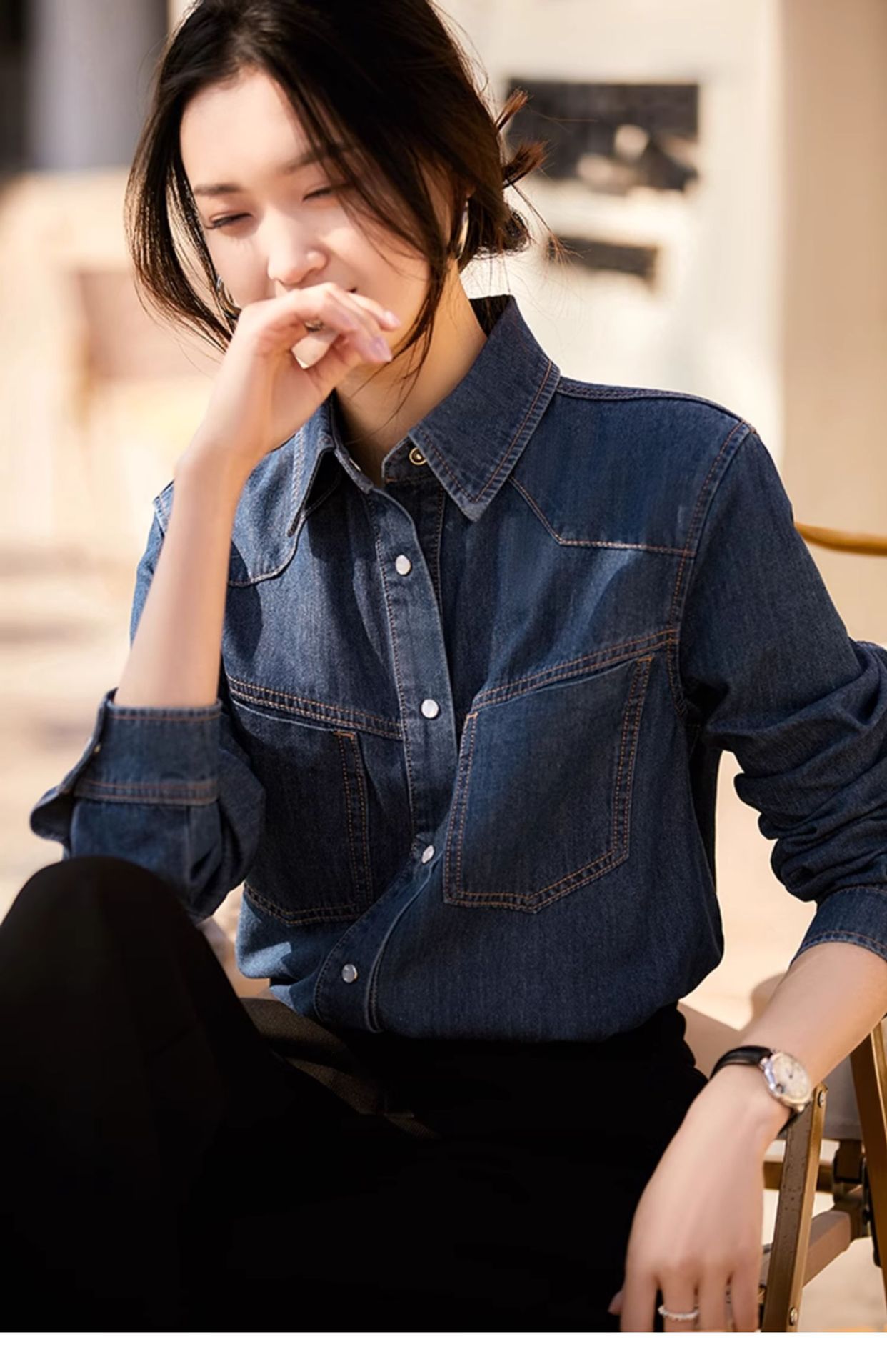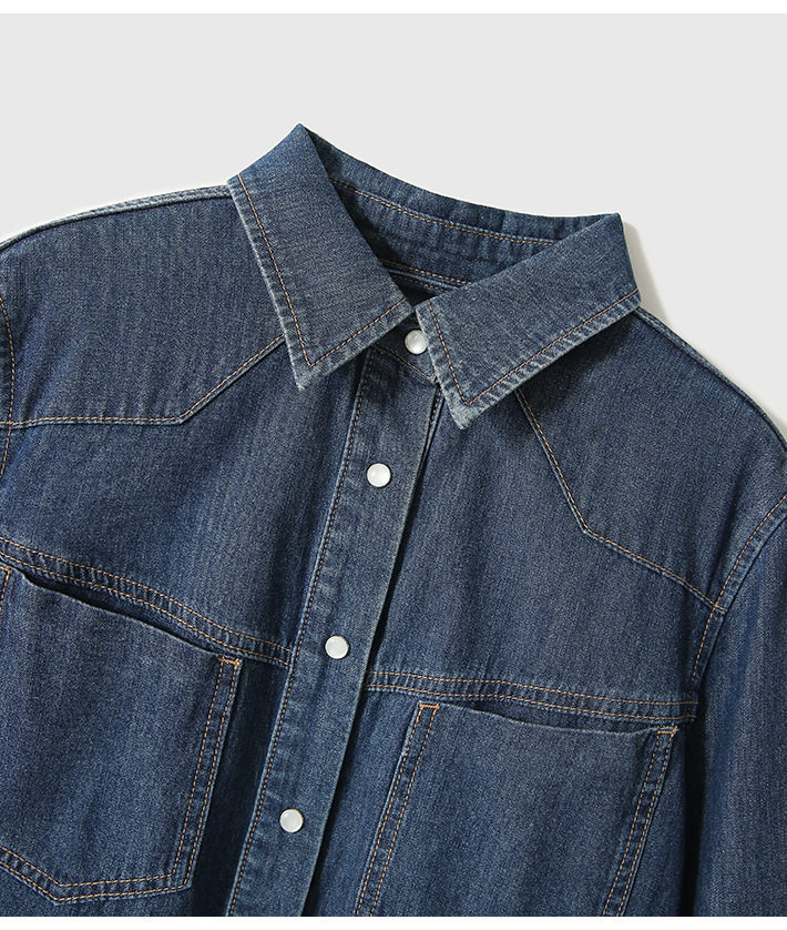 Синяя джинсовая рубашка в стиле ретро в гонконгском стиле для женщин, весна и осень 2024 года, новый дизайн, Ниша, внутренняя одежда, французский топ