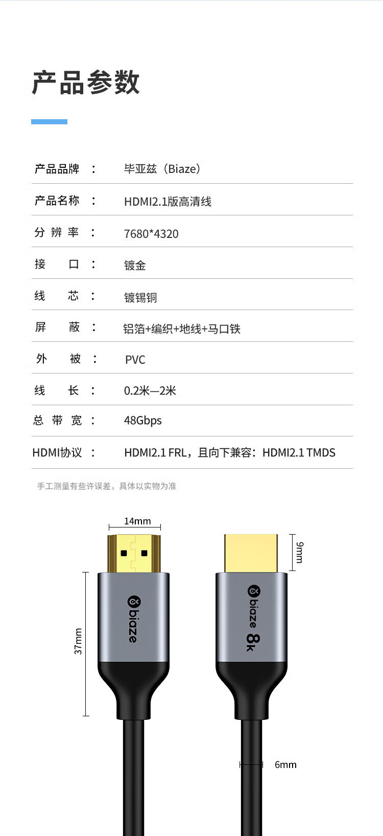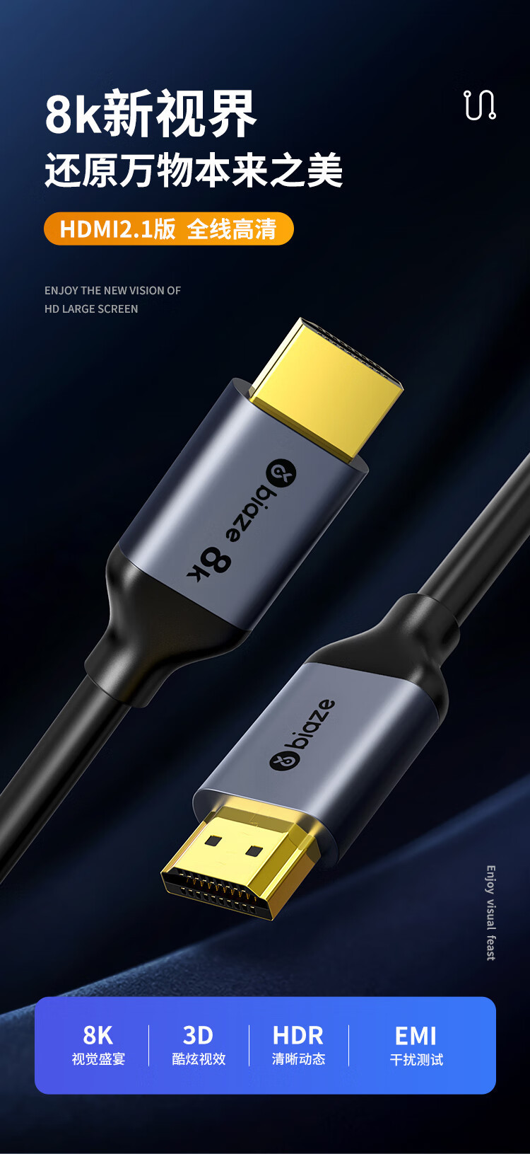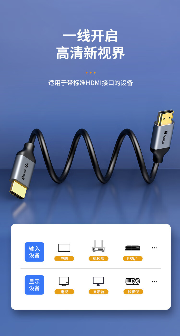 Кабель Biaz HDMI 2,1 HDMI штекер-штекер HD кабель 8K60Hz 4K120Hz 2K144Hz
