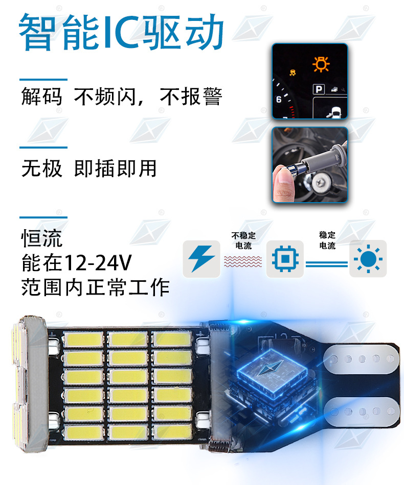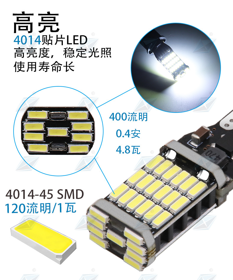Трансграничные светодиодные огни заднего хода автомобиля T15 4014 45smd декодирование постоянного тока бесконечные задние фонари