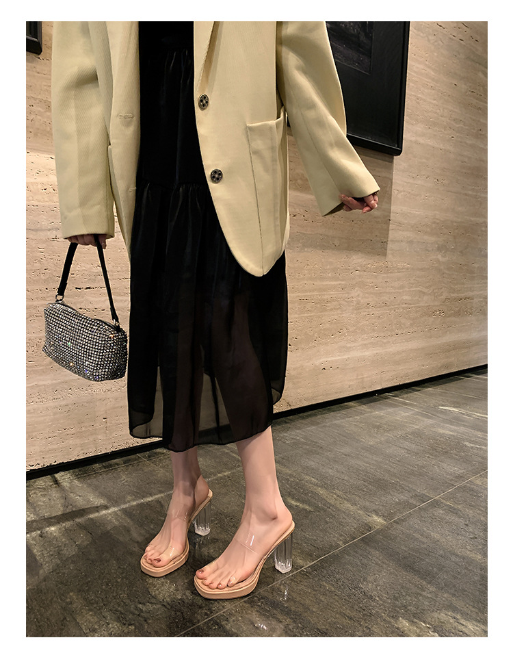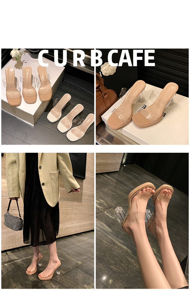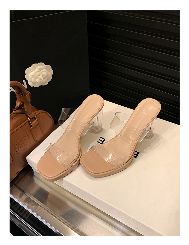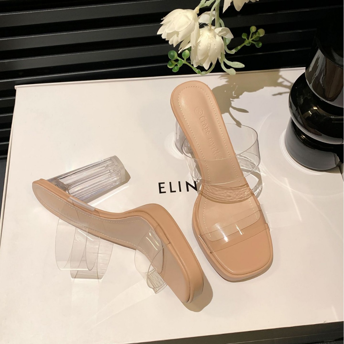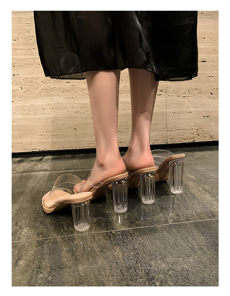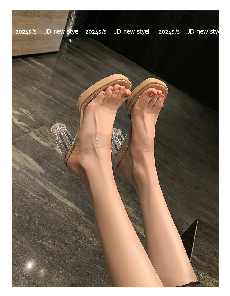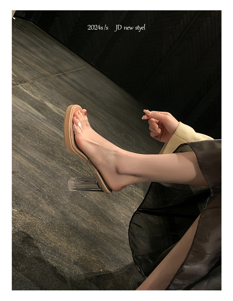 Водонепроницаемые платформы прозрачные тапочки на высоком каблуке 2024 летние новые сандалии на платформе с одним ремешком прозрачные хрустальные сандалии на толстом каблуке для женщин