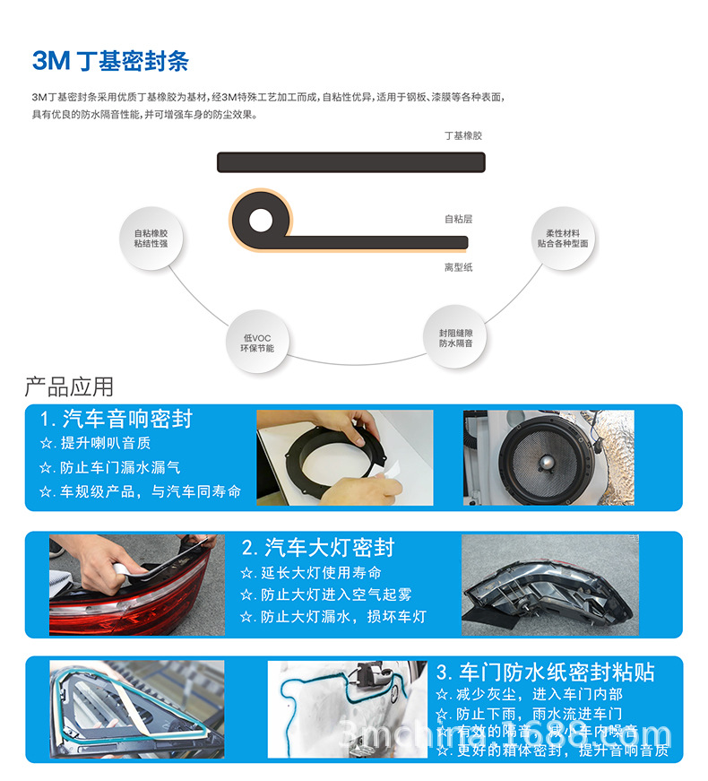 Лента 3M для автомобильных уплотнителей, шумоизоляционная лента для замков дверей автомобиля, водонепроницаемая пленка для фар и дверей автомобиля, водонепроницаемая двусторонняя лента