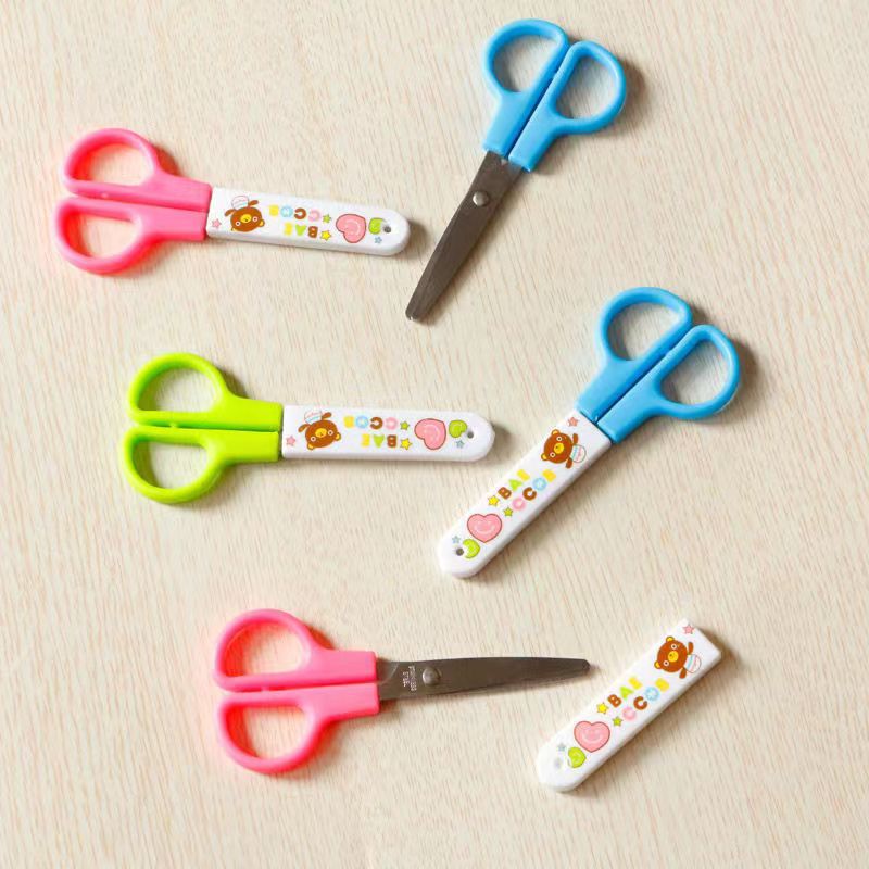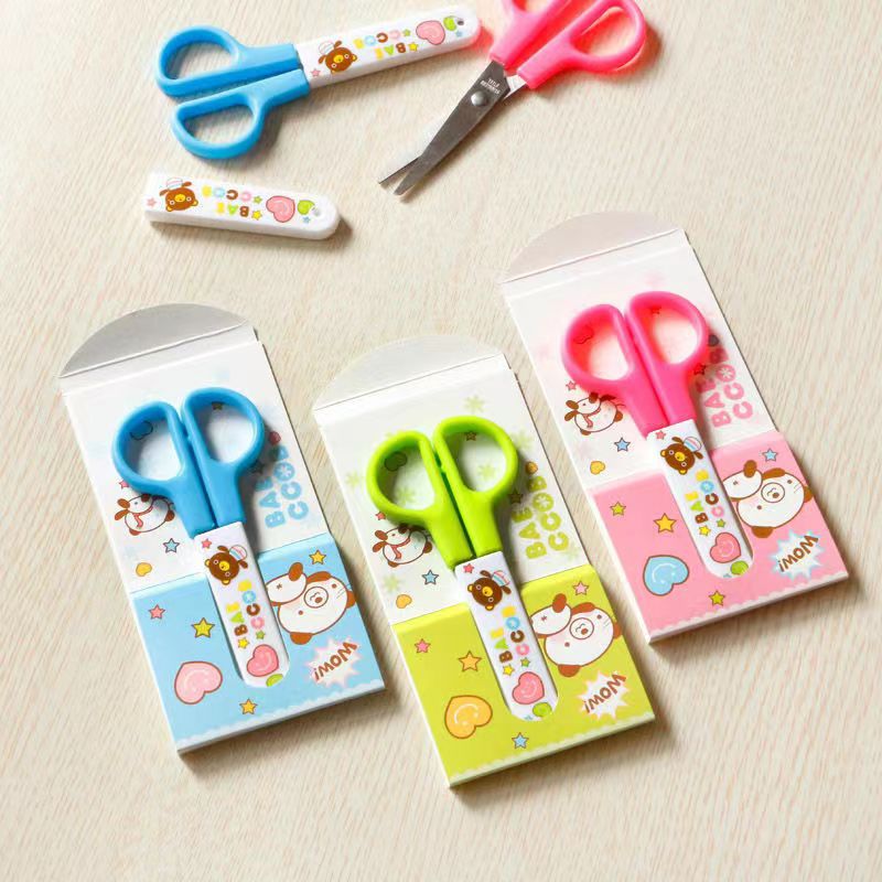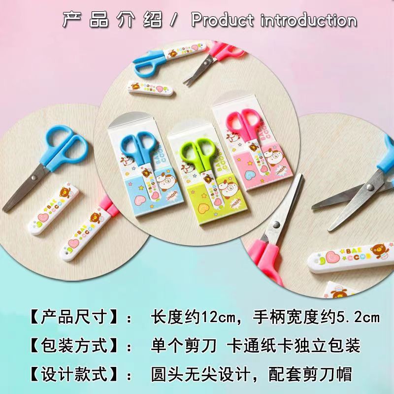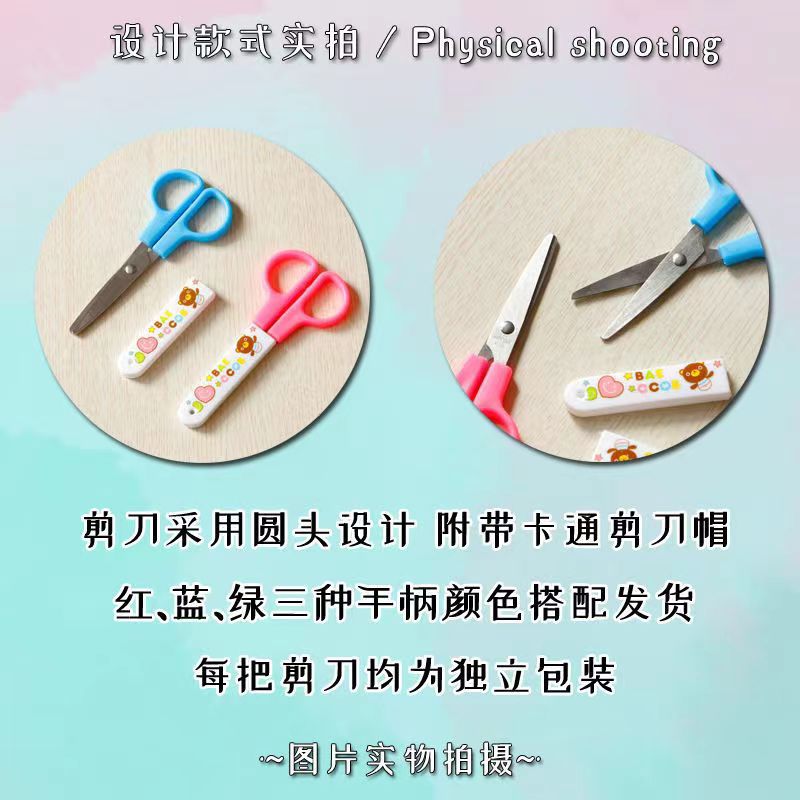 Детские пластиковые безопасные ножницы ручной работы, цветные студенческие ножницы для резки бумаги, Мультяшные цветные студенческие ножницы с капюшоном