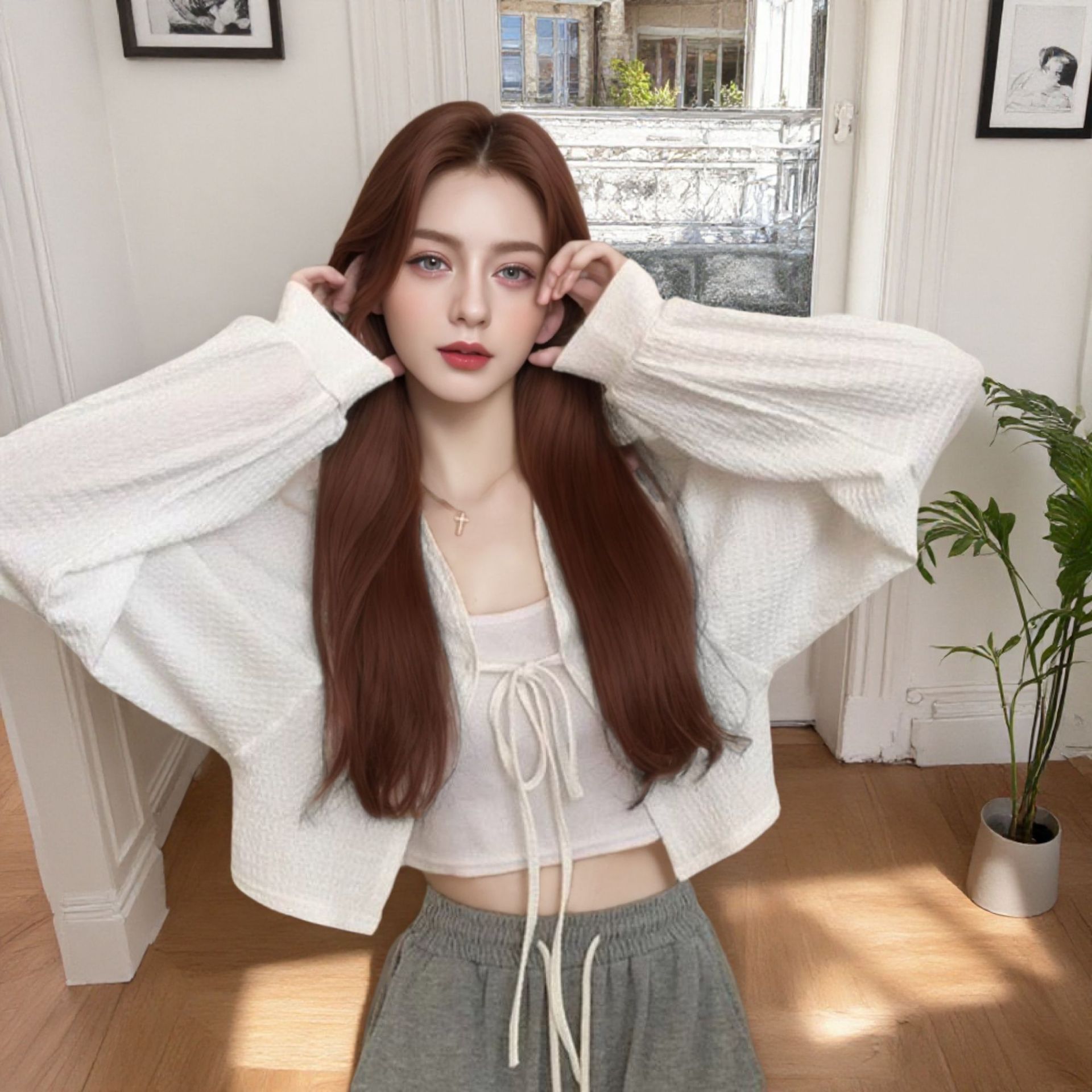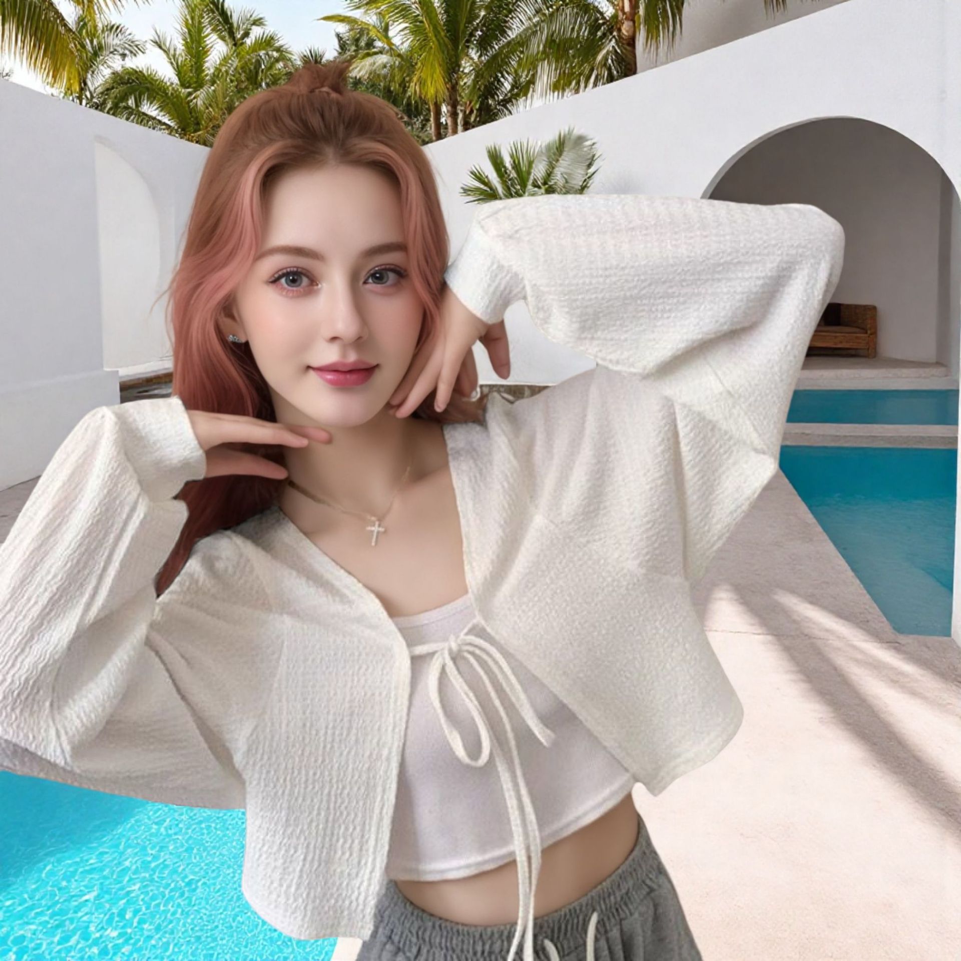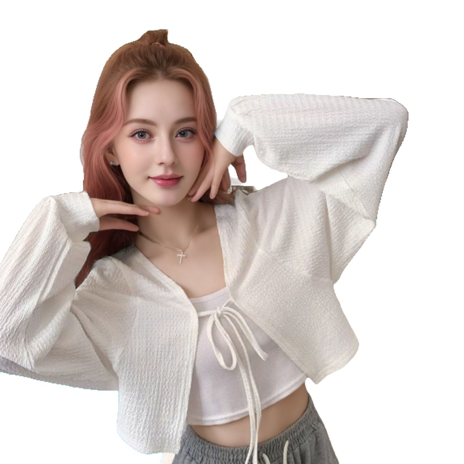 Трансграничная весна и лето 2024 дикие ремешки с длинными рукавами рукава фонарь короткий новый тонкий кардиган короткий куртка солнцезащитный топ женский
