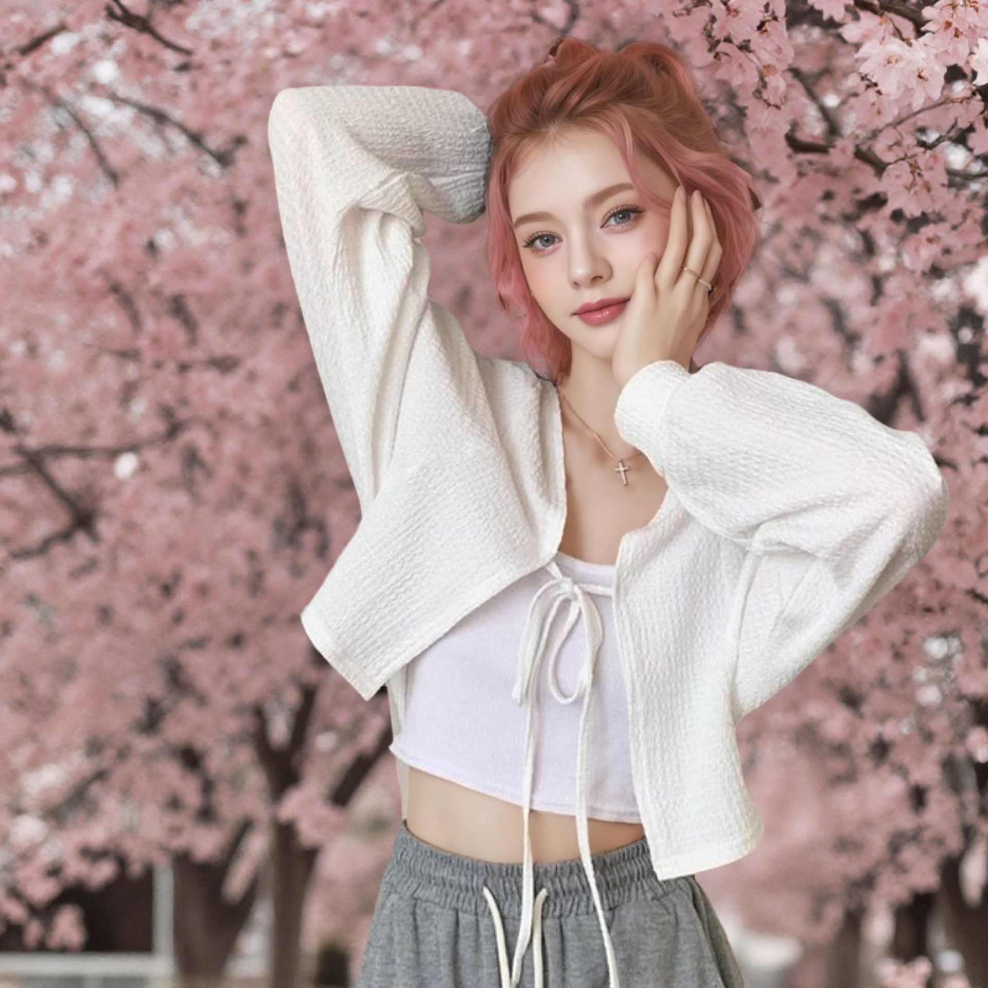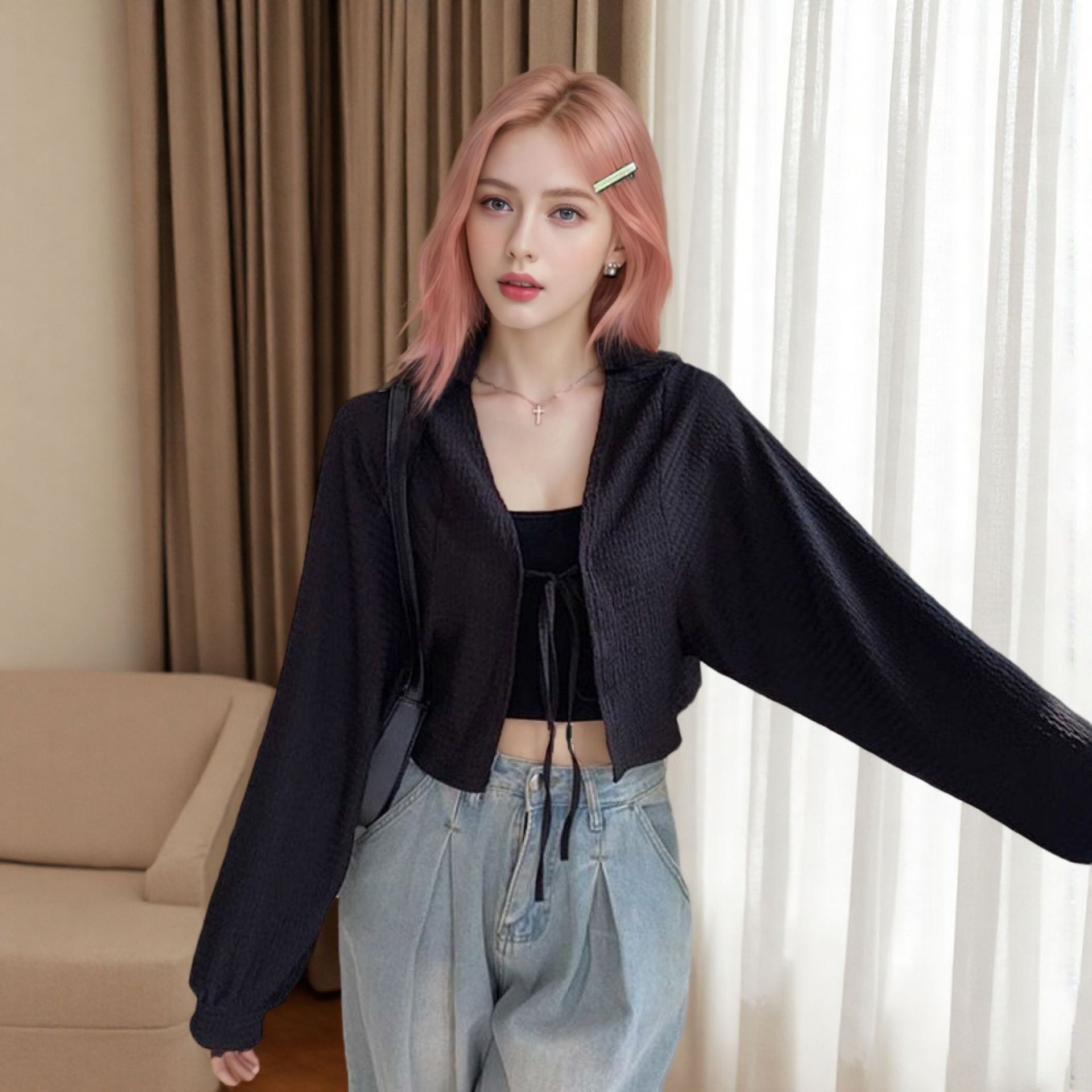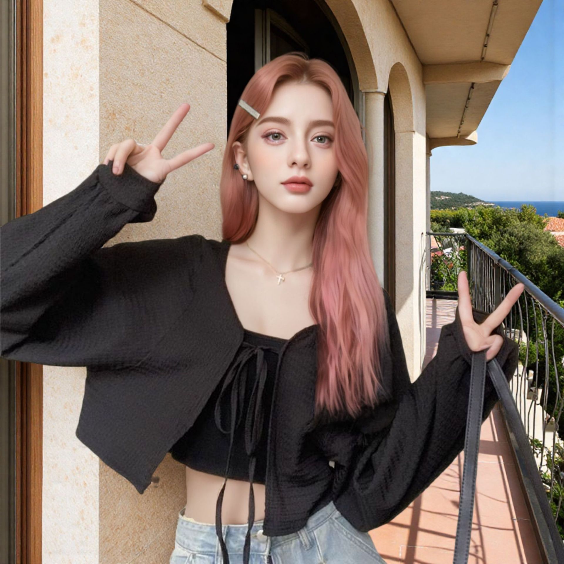 Трансграничная весна и лето 2024 дикие ремешки с длинными рукавами рукава фонарь короткий новый тонкий кардиган короткий куртка солнцезащитный топ женский