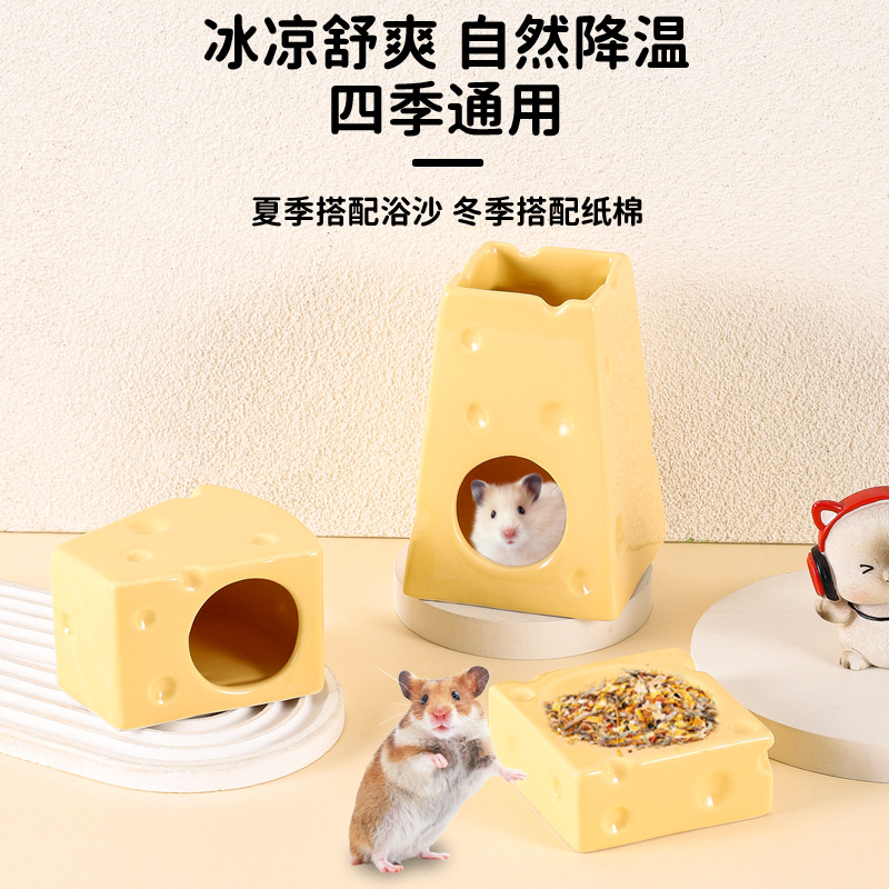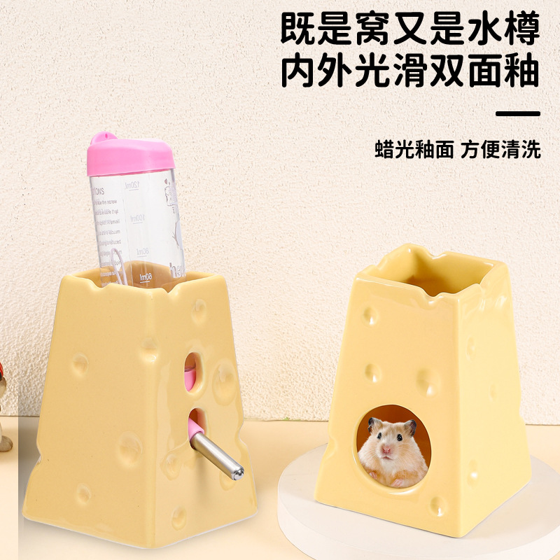 Керамическое гнездо хомяка Золотой медведь охлаждение летнее охлаждающее убежище дом крутой ледяной домик керамический бассейн для кормления сыра кронштейн для бутылки с водой