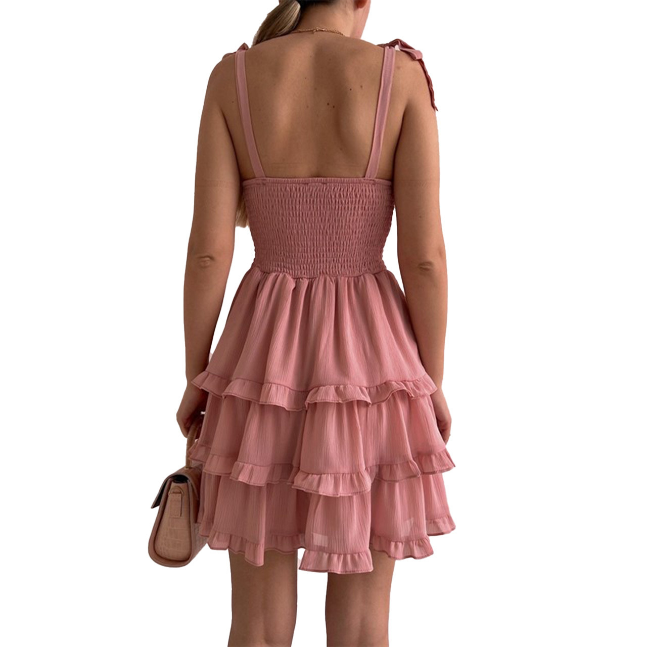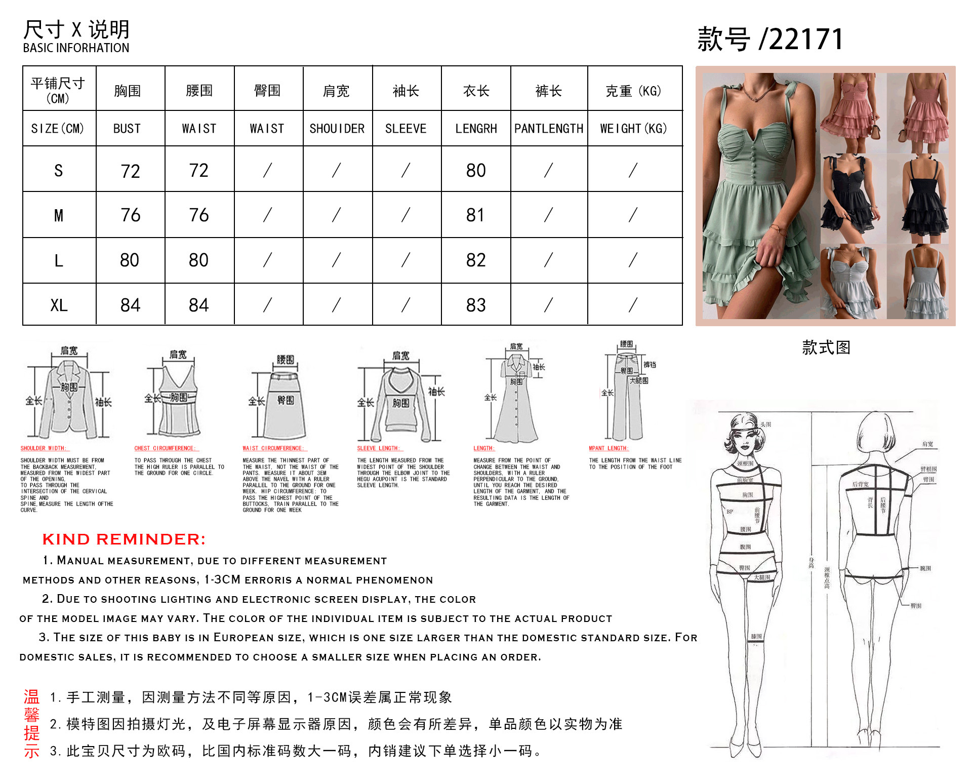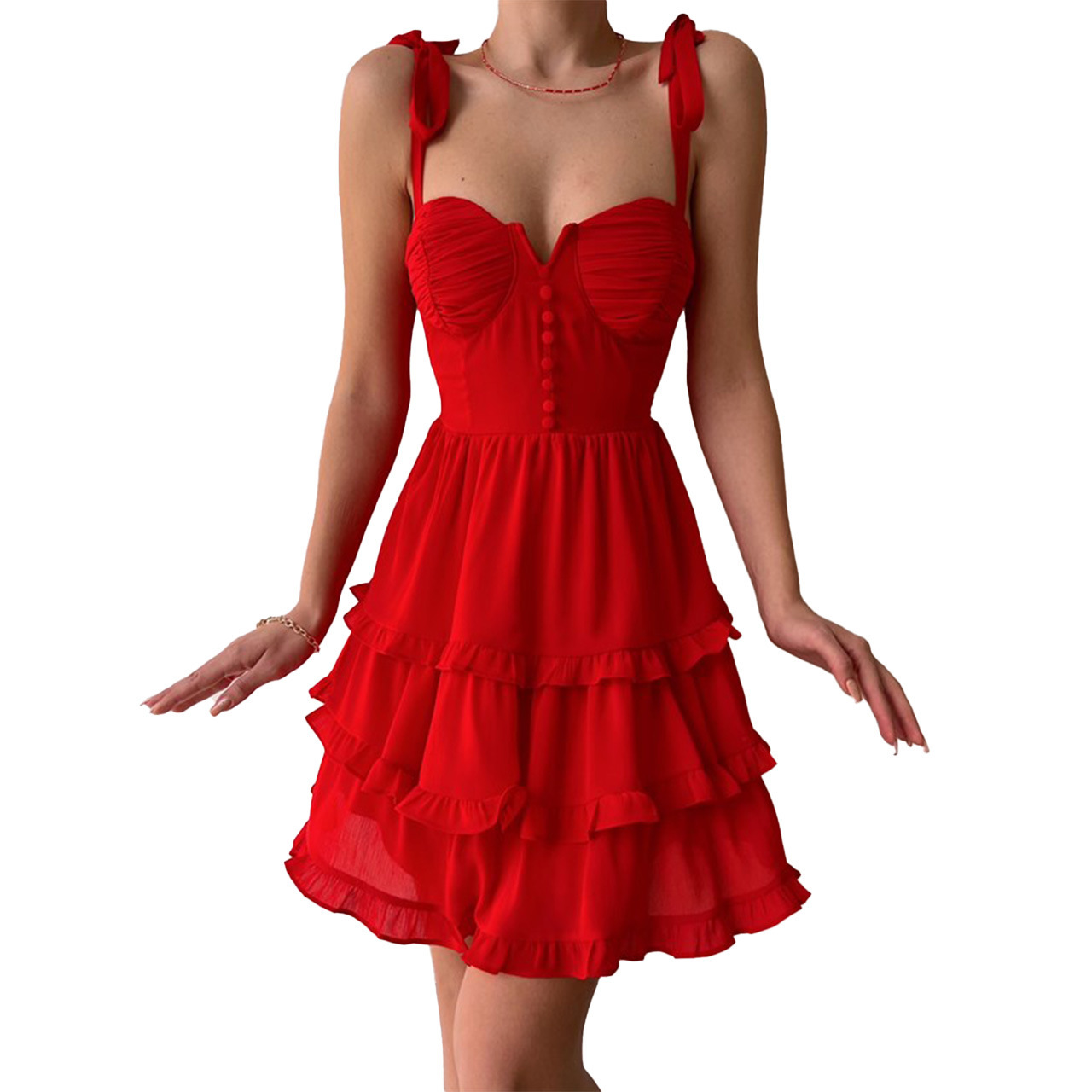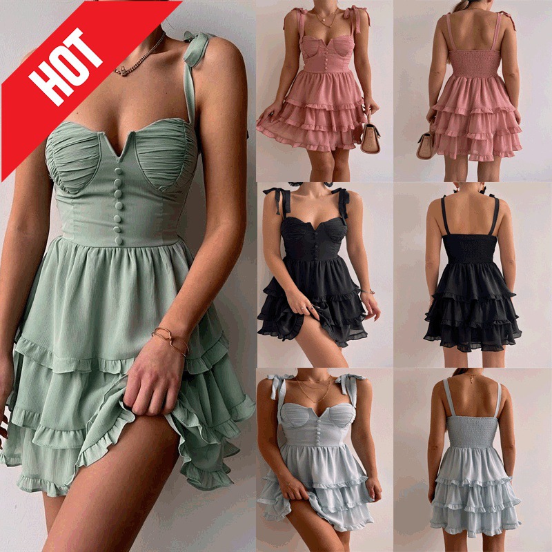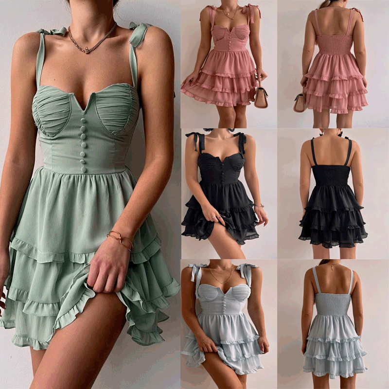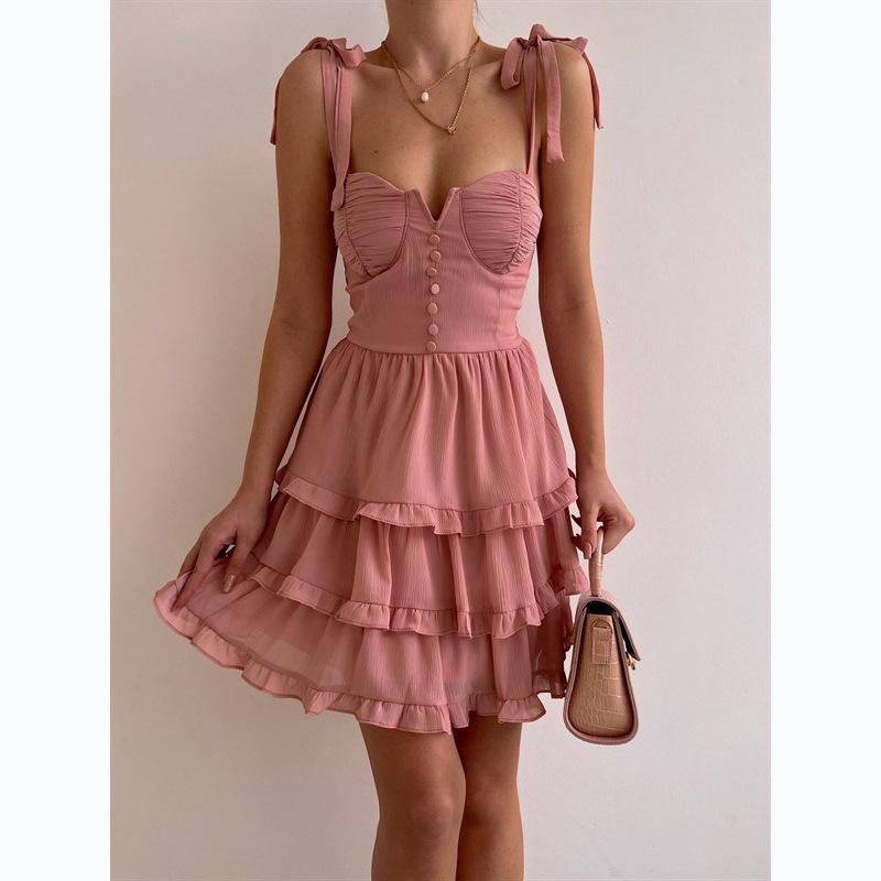2024 Европейская и американская внешняя торговля трансграничный стиль летнее Милое сексуальное однотонное шифоновое платье 22171