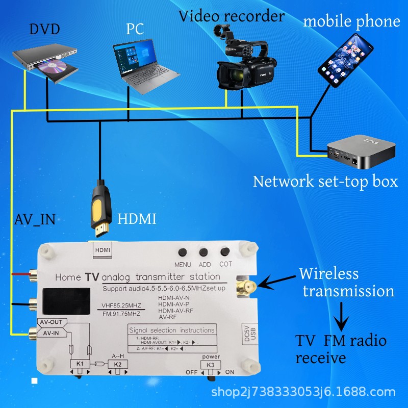 Транслятор телевизионного сигнала для трансграничной связи, видеоконвертер AV-HDMI, радиочастотный конвертер, телевизионный конвертер с разъемом N-типа