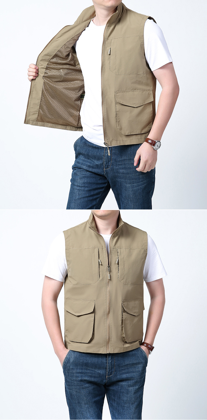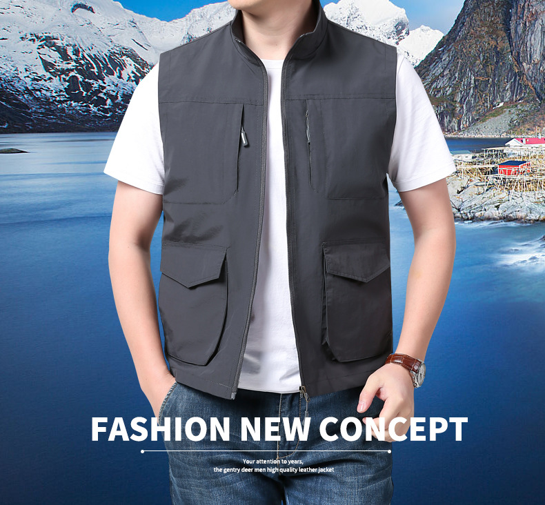 Мужской жилет, красивая Повседневная весенне-осенняя верхняя одежда, тонкая модная рабочая одежда больших размеров, куртка, Свободный жилет с несколькими сумками