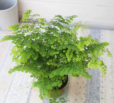 铁线蕨以分株繁殖为主。分株宜在春季新芽尚未萌发前结合换盆进行。此蕨的每个小叶片都酷似银杏叶,十分可爱;只要给予充足的水分,它就能旺盛的生长,终年常绿,造型优美,老叶的深绿色衬托着新叶的嫩绿,给你的室内带来一片生机盎然。银杏蕨还能净化空气,是室内装饰的很好选择!