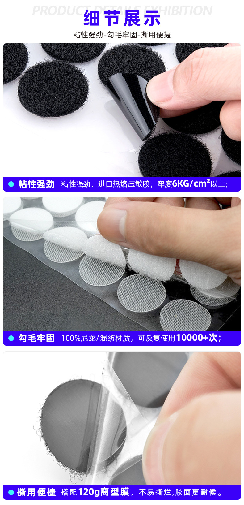Круглые клейкие точечные элементы велкро от производителя: прочные, ультратонкие, цветные, прозрачные, перфорированные, самоклеящиеся.