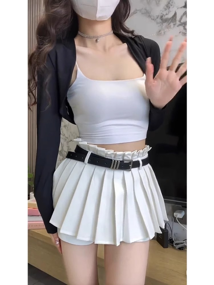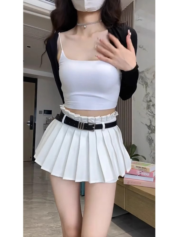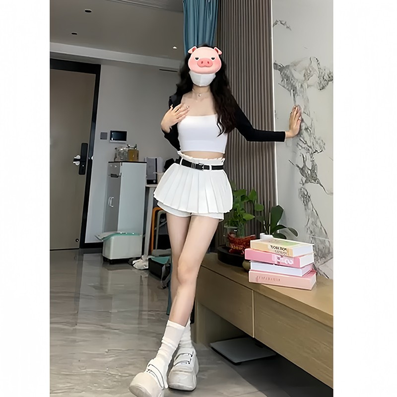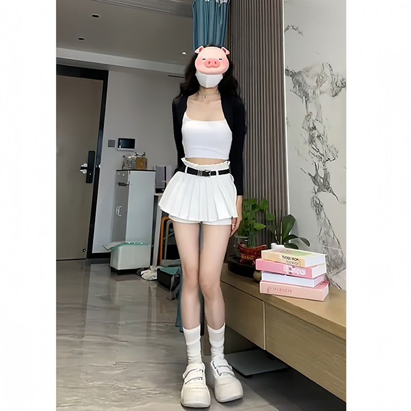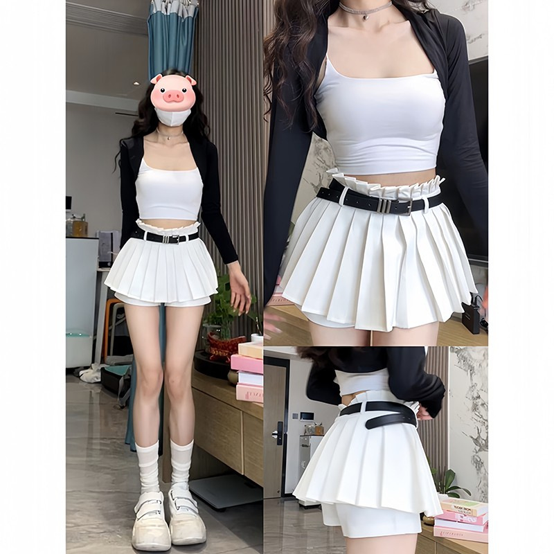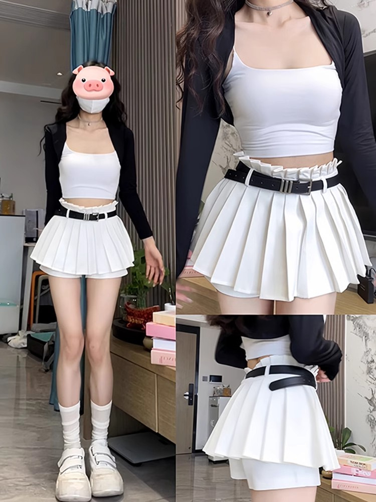 Белая короткая юбка женская весна/осень/зима 2024 Новая плиссированная юбка брюки цельная Нижняя горячая девушка А-силуэта пушистая юбка