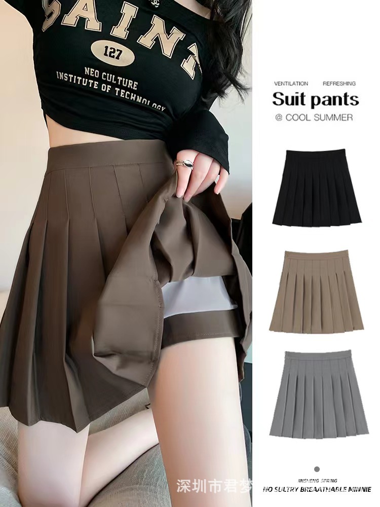 Плиссированная юбка цвета хаки Женская с высокой талией, утягивающая 2024 весенне-летняя суперпопулярная юбка на подкладке JK юбка A- Line
