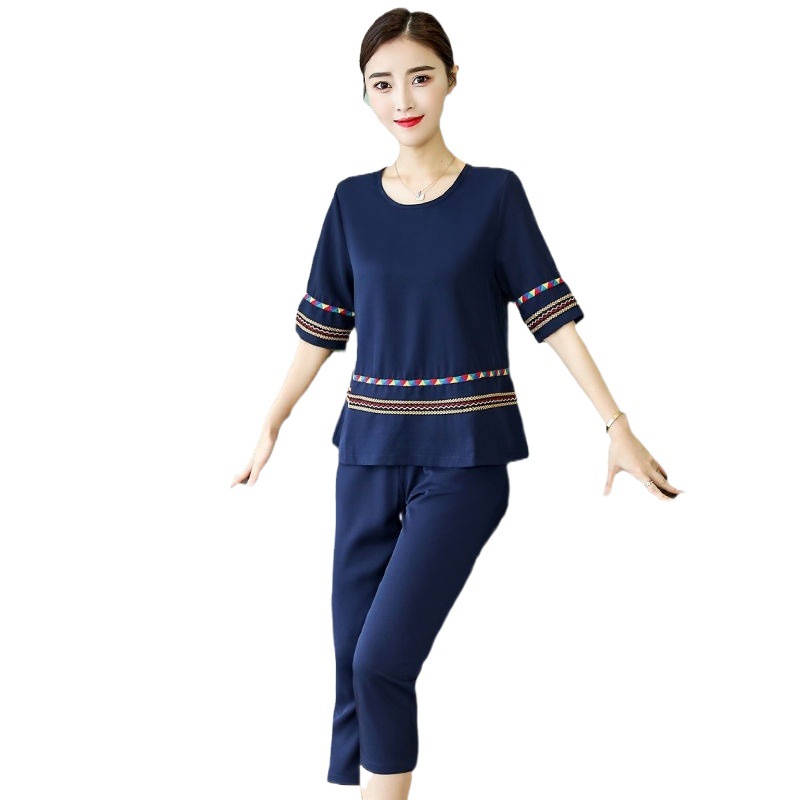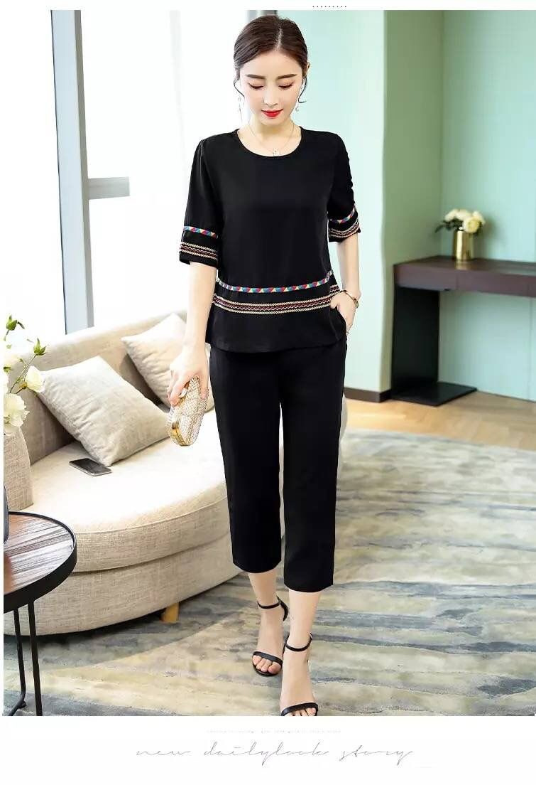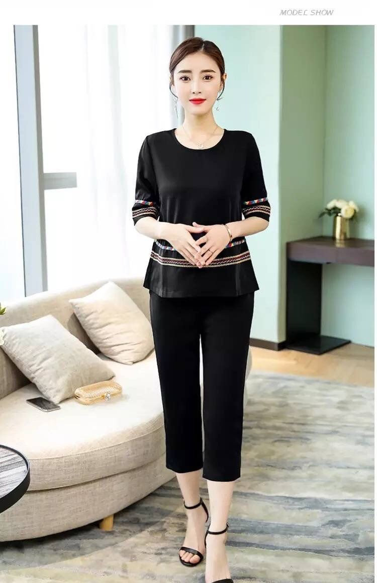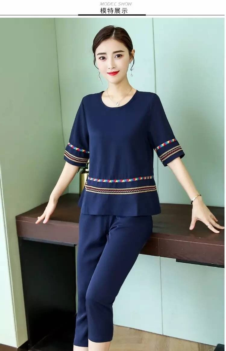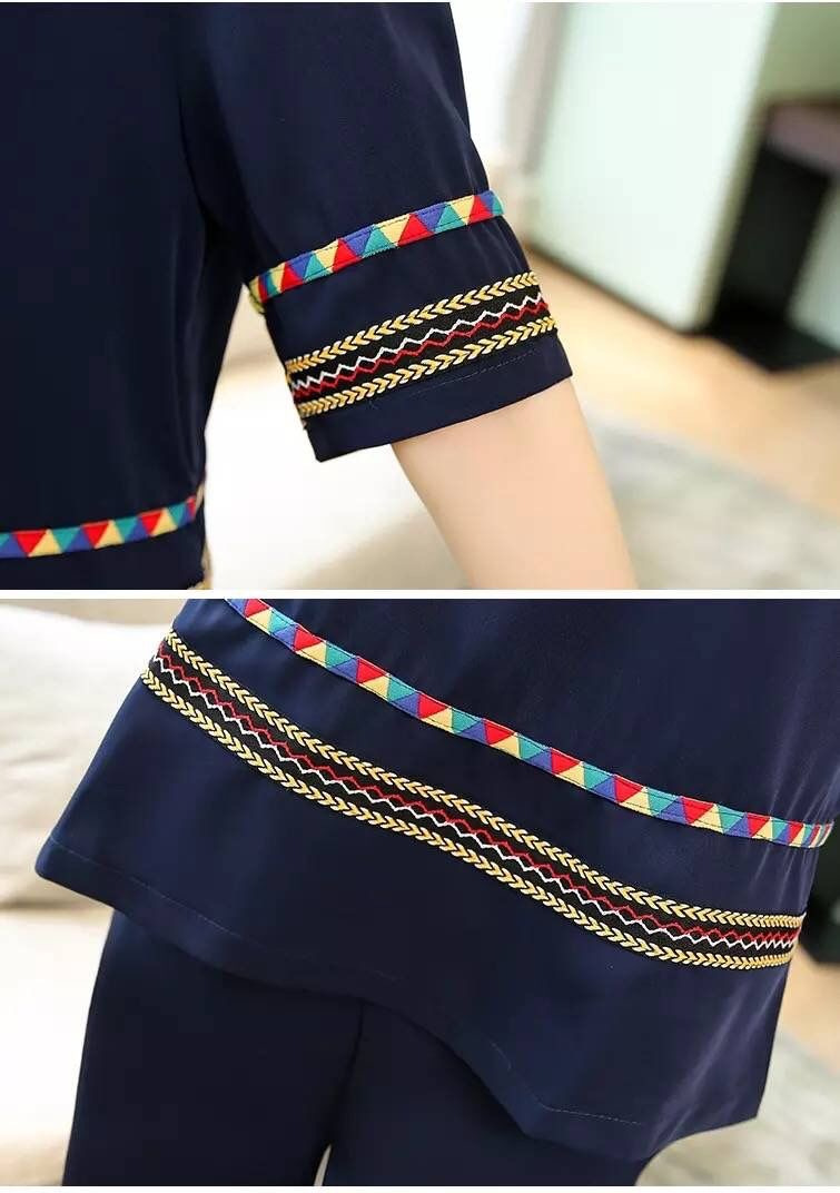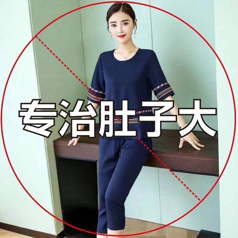 Женская одежда больших размеров в этническом стиле, костюм для похудения в западном стиле, Летний Новый комплект из двух предметов с короткими рукавами для полных девочек, закрывающих живот и уменьшающих возраст