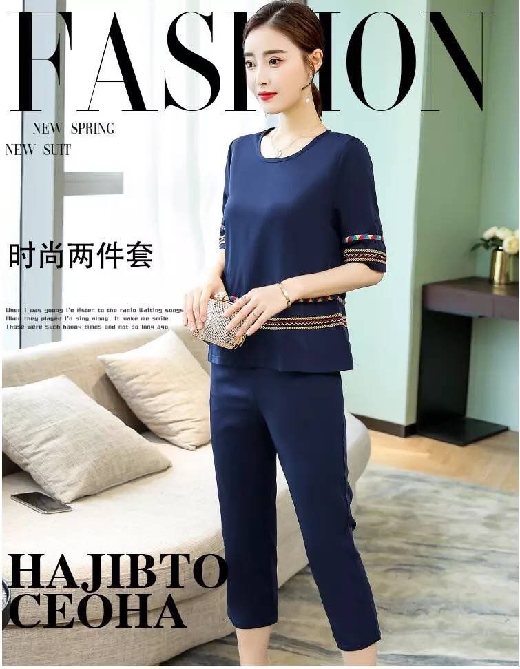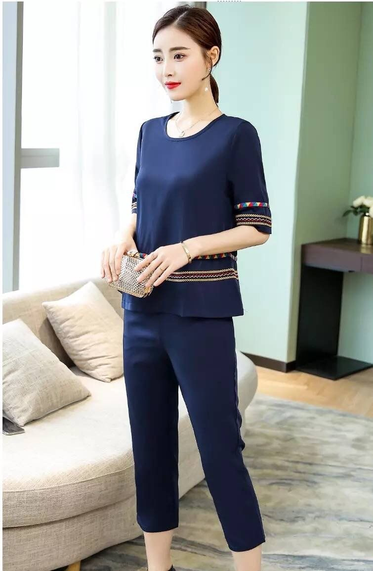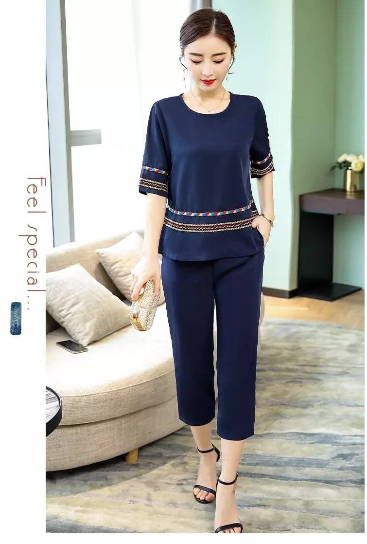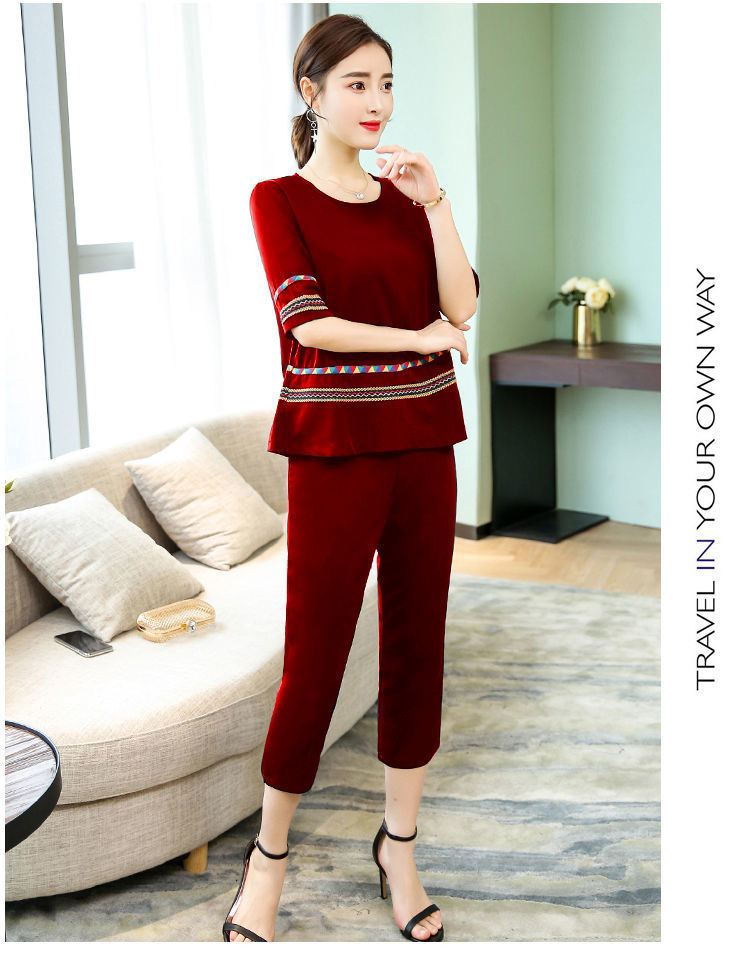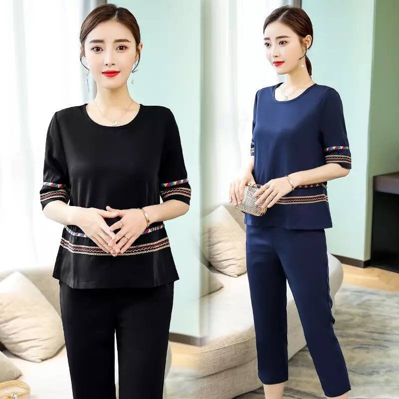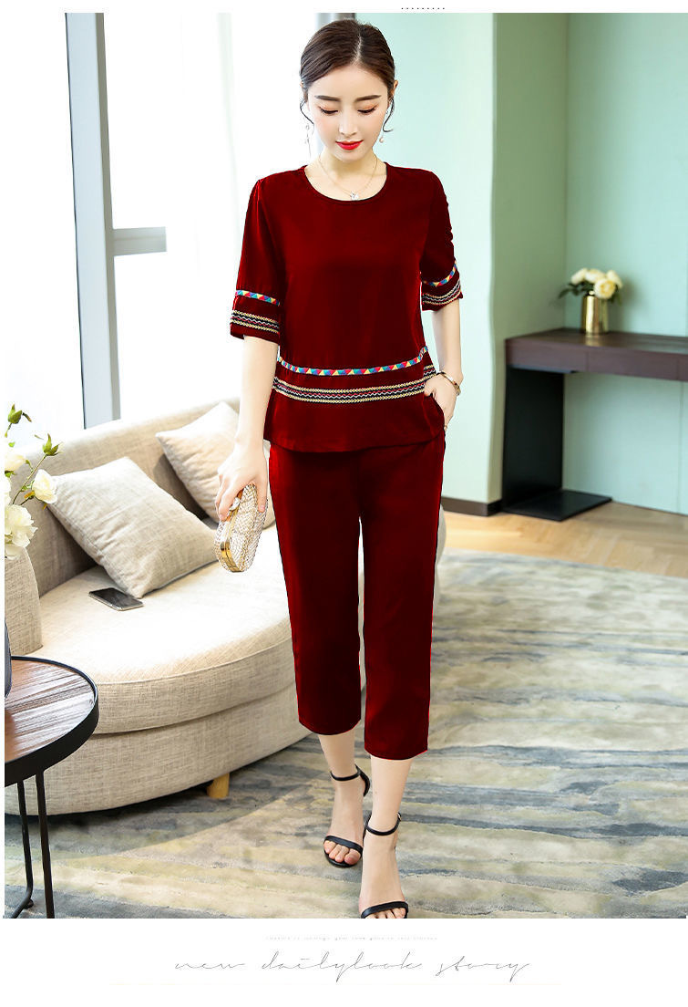 Женская одежда больших размеров в этническом стиле, костюм для похудения в западном стиле, Летний Новый комплект из двух предметов с короткими рукавами для полных девочек, закрывающих живот и уменьшающих возраст