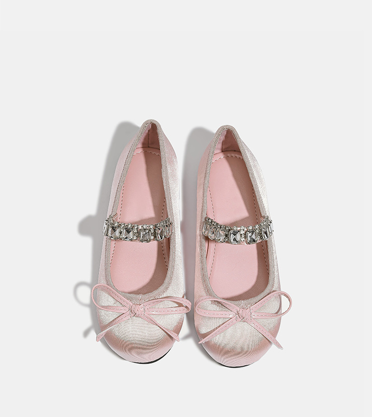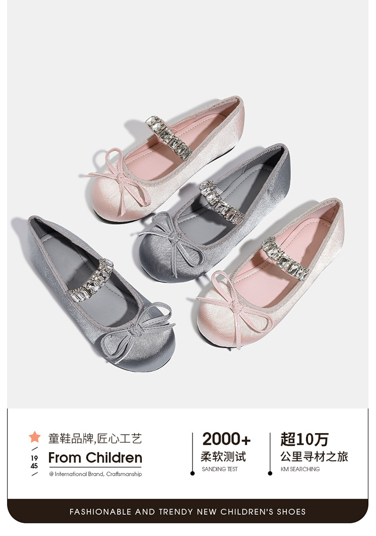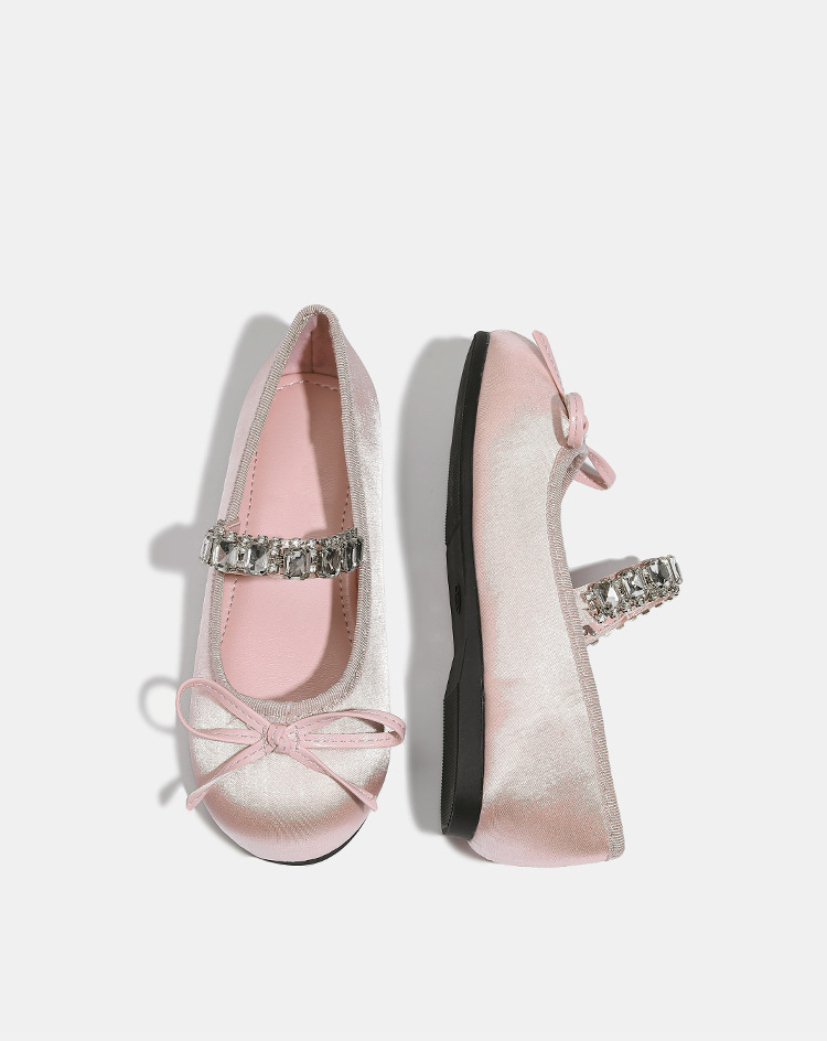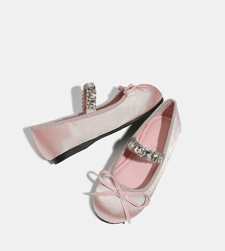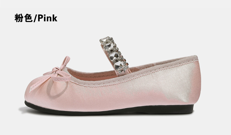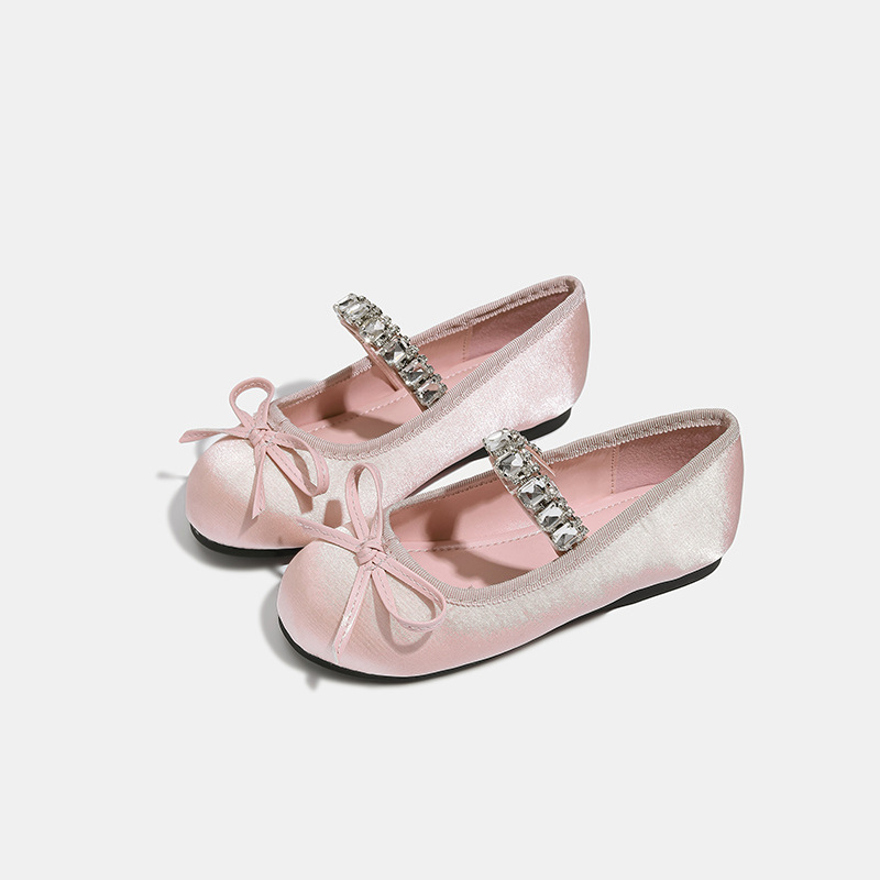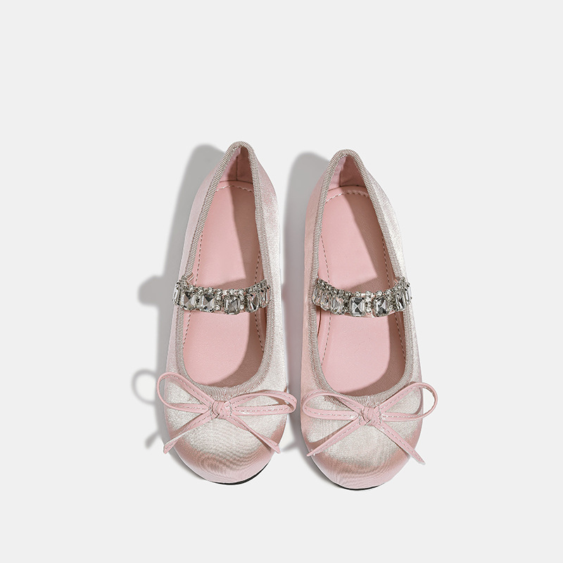 Девушки одиночные туфли принцессы атласные весной и осенью новые мягкие подошвы и неглубокие банты детские хрустальные туфли балетные танцевальные туфли