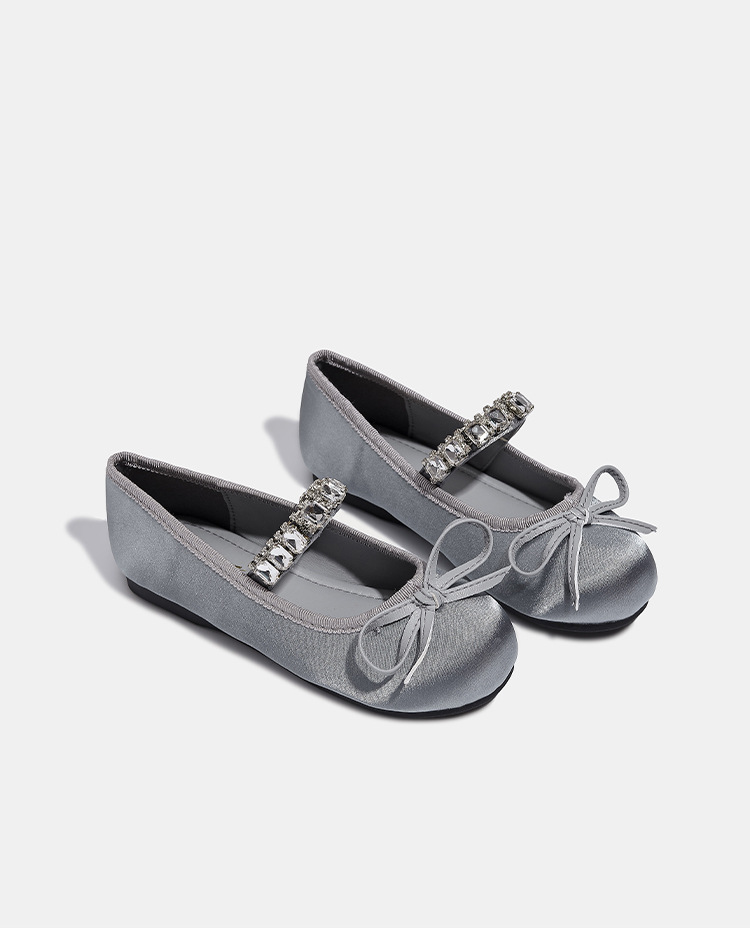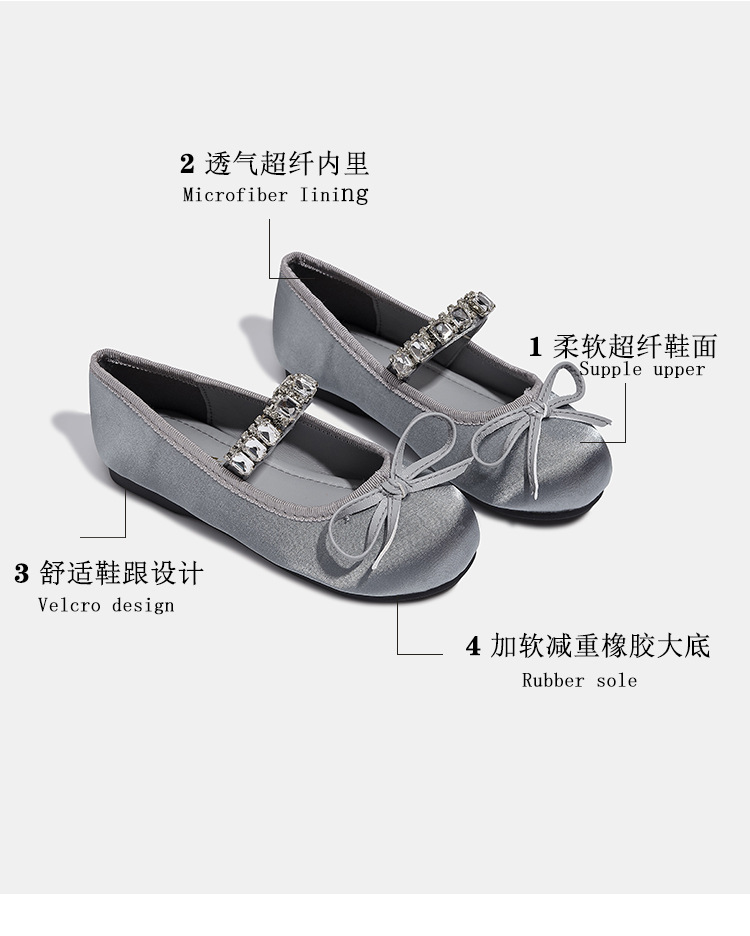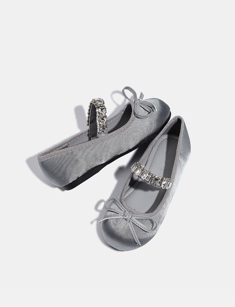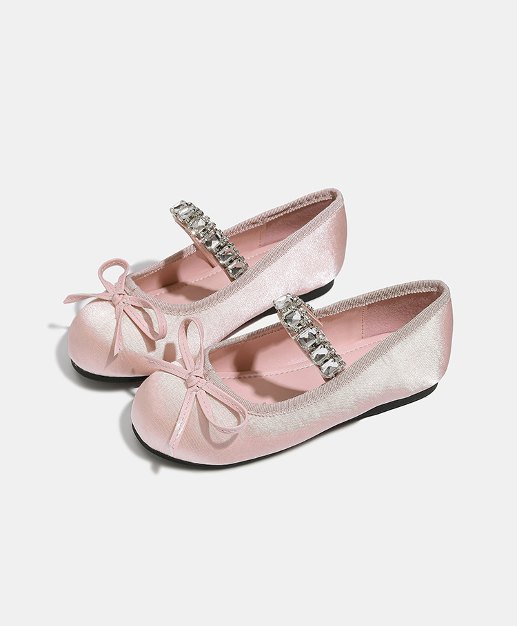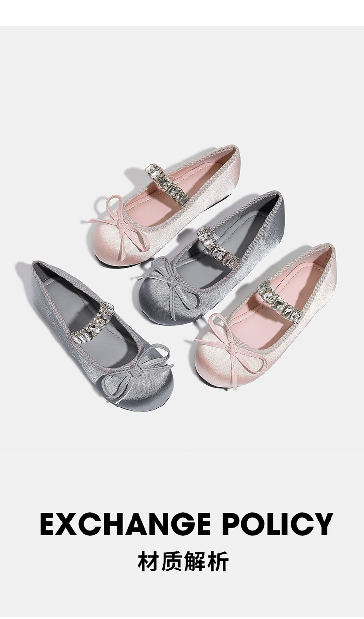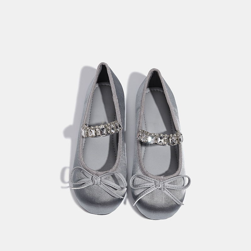 Девушки одиночные туфли принцессы атласные весной и осенью новые мягкие подошвы и неглубокие банты детские хрустальные туфли балетные танцевальные туфли