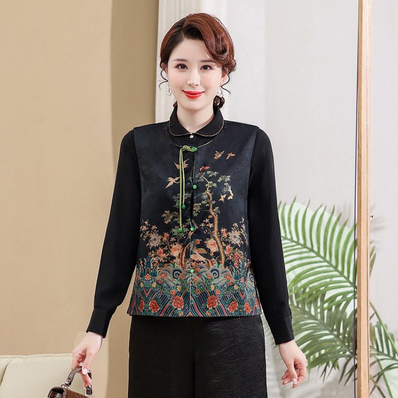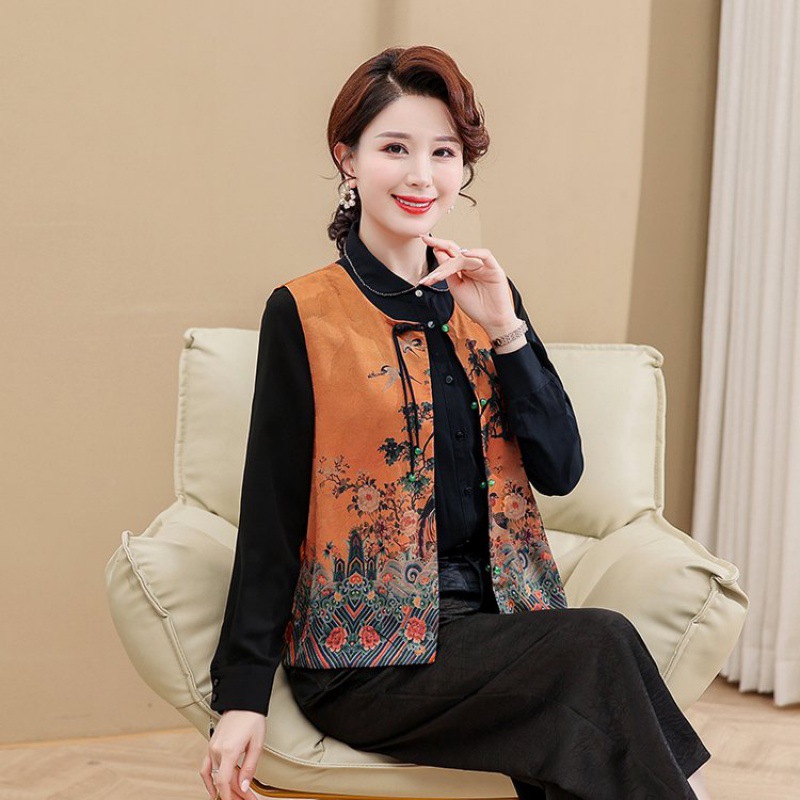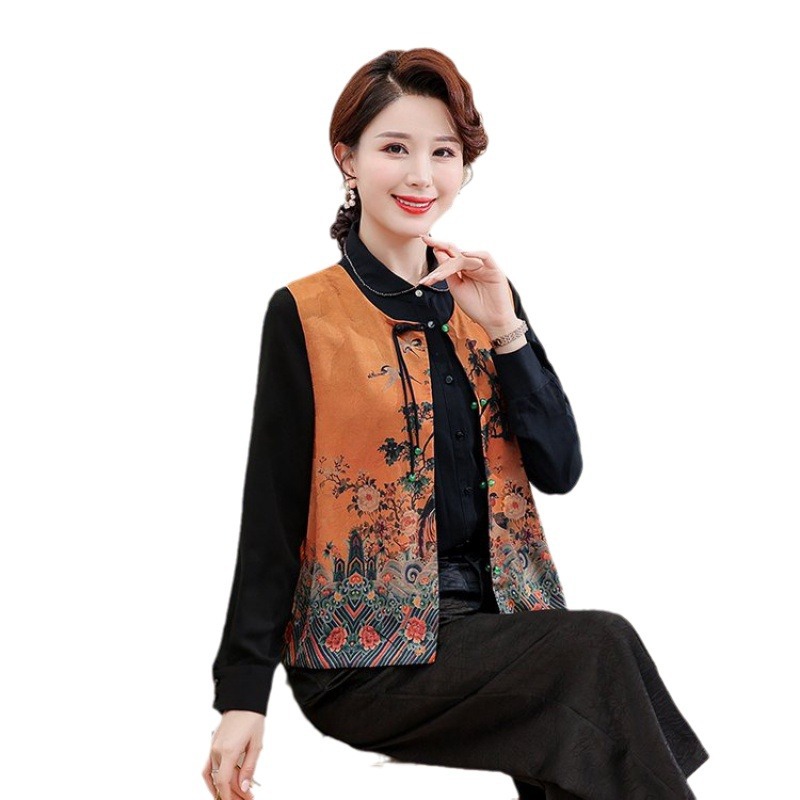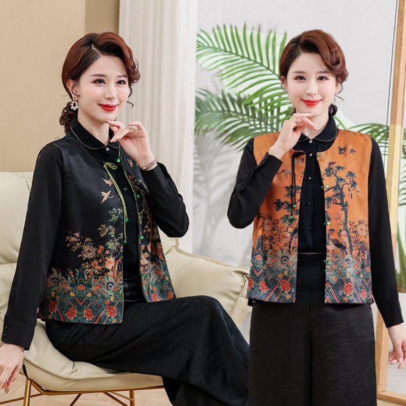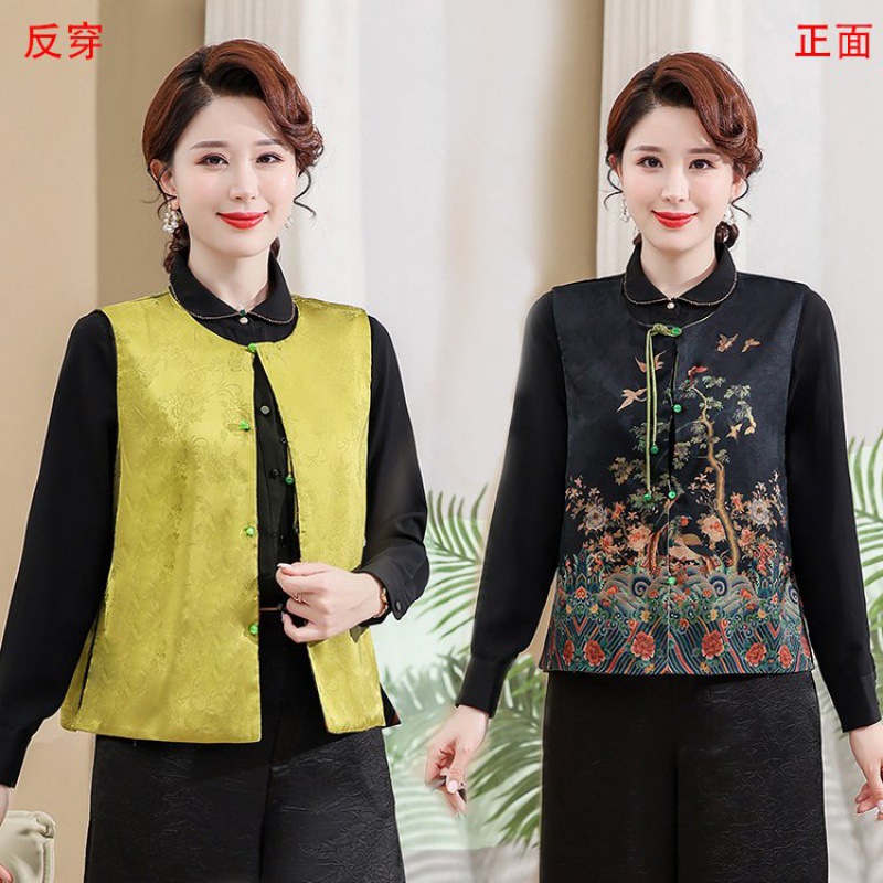 [Двусторонняя одежда] Весенний жилет в национальном стиле для мам 2024 Новый женский кардиган с пряжкой в китайском стиле с принтом в этническом стиле