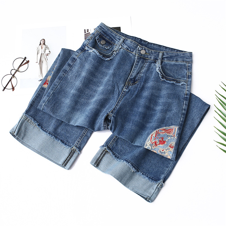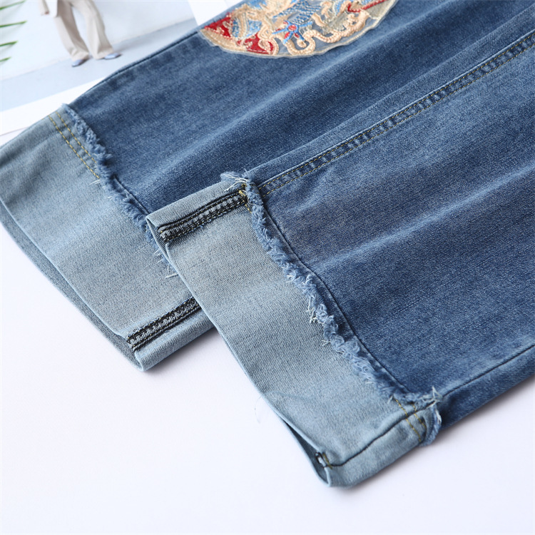 Весна 2024 Новые джинсы больших размеров, модные Универсальные брюки для керлинга в национальном стиле с вышивкой 206