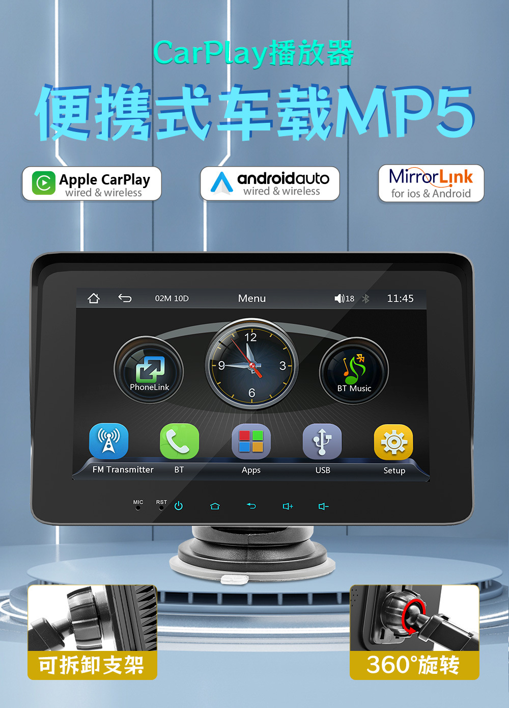 Новый 12 В портативный автомобильный MP5-плеер беспроводной Carplay многофункциональная реверсивная машина для вставки карт изображения MP4