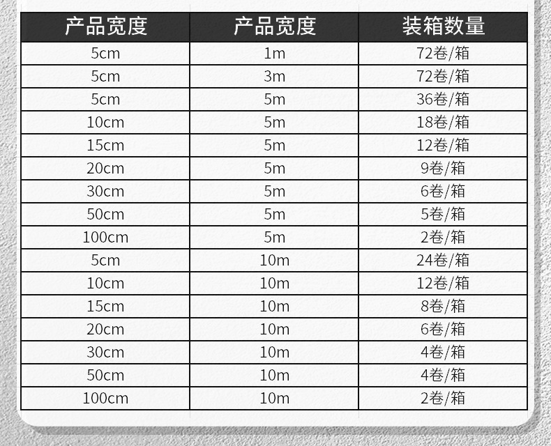 Ширина 5cm1m; Ширина 5 см, длина 3 м.; Ширина 5 см, длина 5 м.; Ширина 10 см, длина 5 м.; Ширина 15 см, длина 5 м.; Ширина 20 см, длина 5 м.; Ширина 30 см длина 5 м; Ширина 50 см длина 5 м; 1 м в ширину и 5 м в длину; Ширина 1 м и длина 10 м
