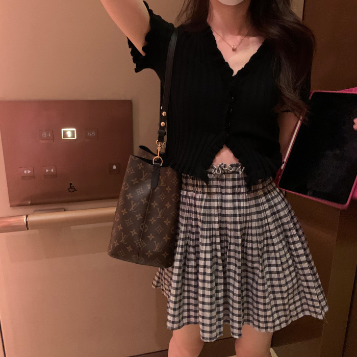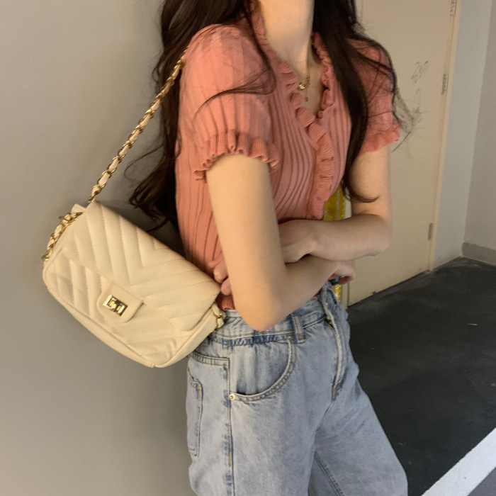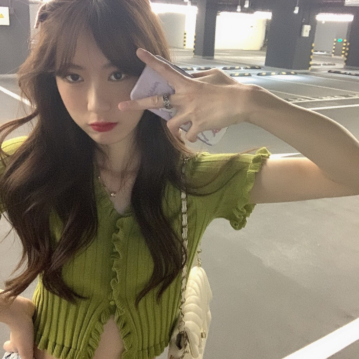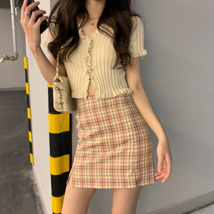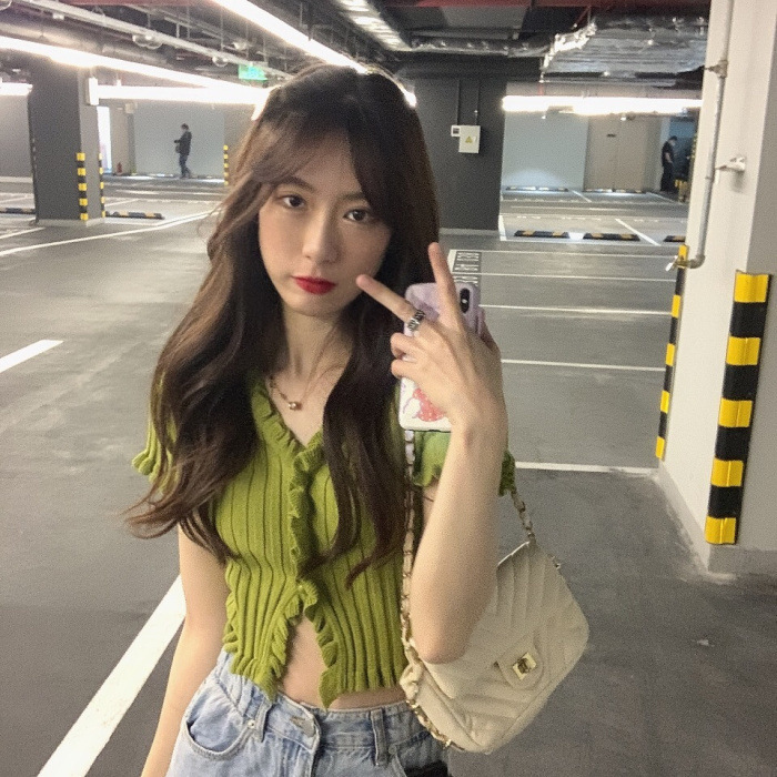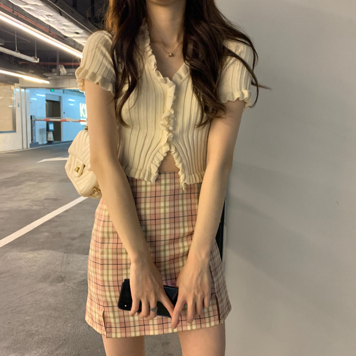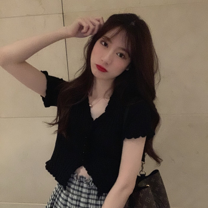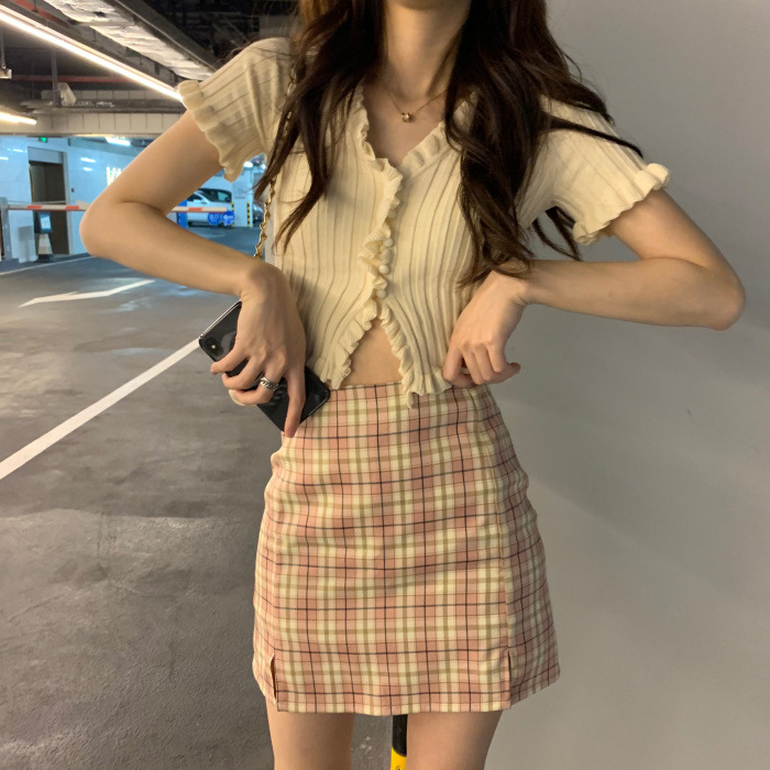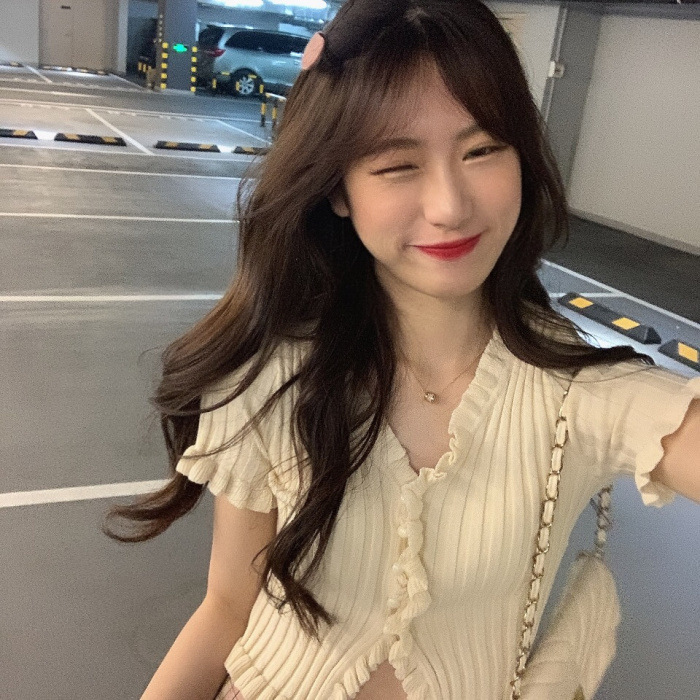 Короткая Горячая женская верхняя одежда для женщин 2024 новый летний деревянный ушко интернет-знаменитости с высокой талией пупок с V-образным вырезом свитер с коротким рукавом