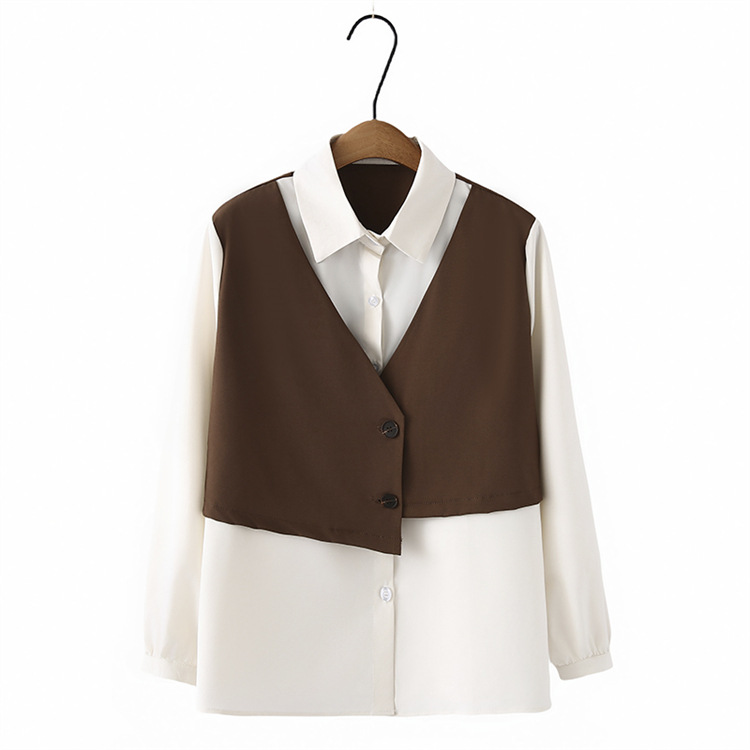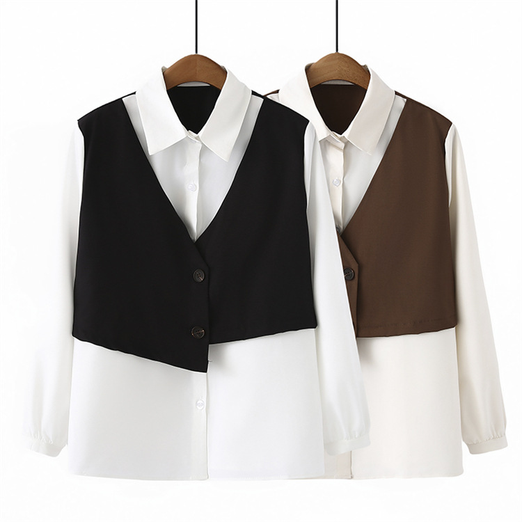 Уменьшающая возраст Модная рубашка больших размеров 2024 весна новый стиль Толстая сестра темперамент корейский стиль шить поддельная рубашка из двух частей 383