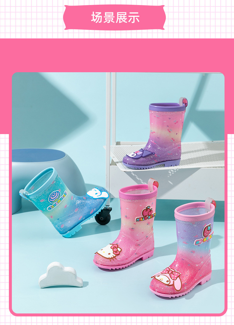 Разноцветные детские резиновые сапоги Sanrio Hello Kitty для девочек, куломи, мультяшная мелодия, Нескользящие водные сапоги для учеников начальной школы