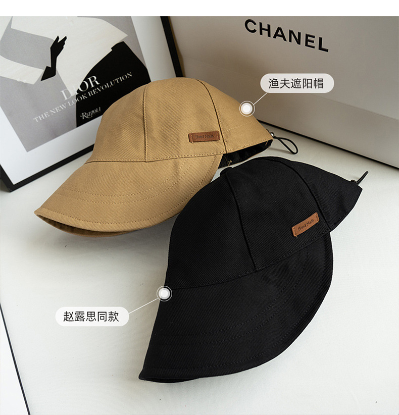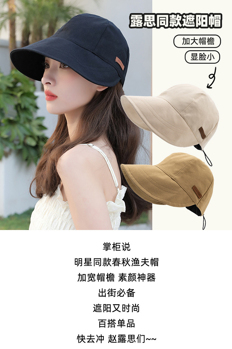 Zhao Lusi такая же Рыбацкая шляпа Женская 2024 Весна и лето защита от солнца защита от ультрафиолета Солнцезащитная шляпа простая черная шляпа от солнца