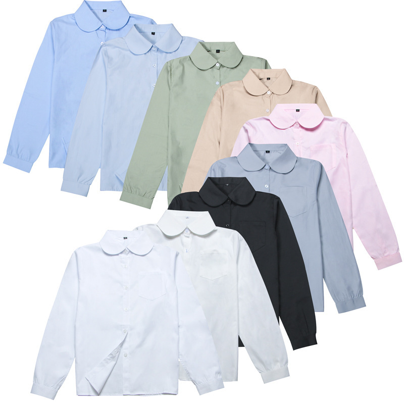 Фабрика в наличии оптом Униформа JK планка для таблеток с круглым вырезом Базовая рубашка с длинным рукавом женская рубашка Студенческая Рабочая одежда весна и осень
