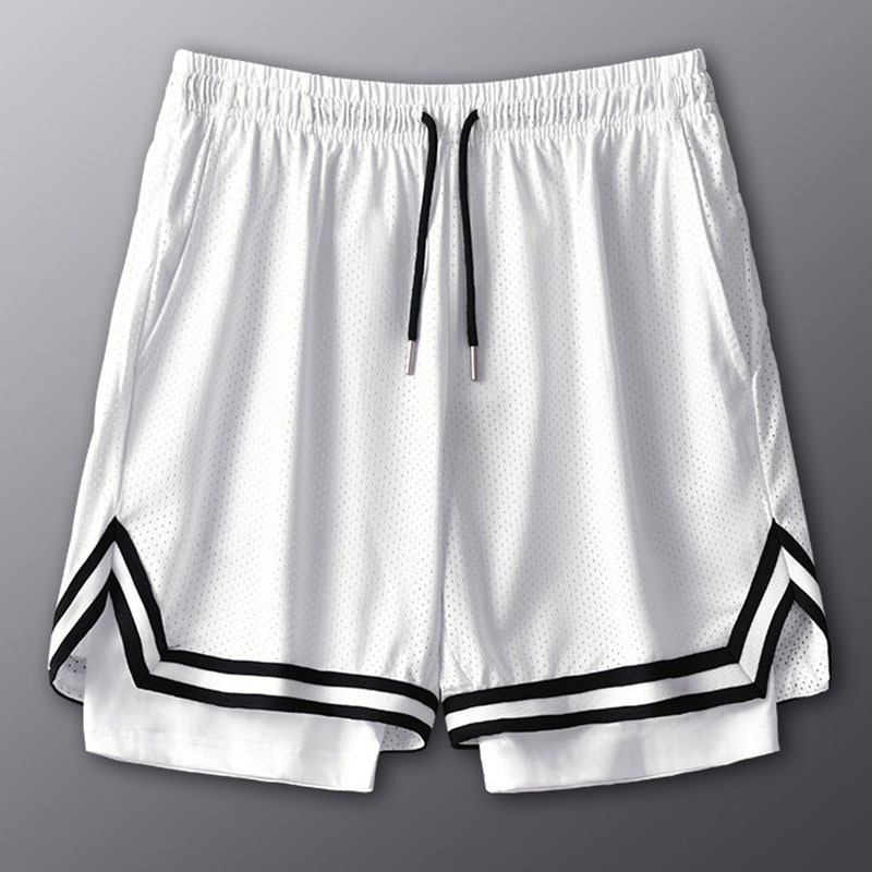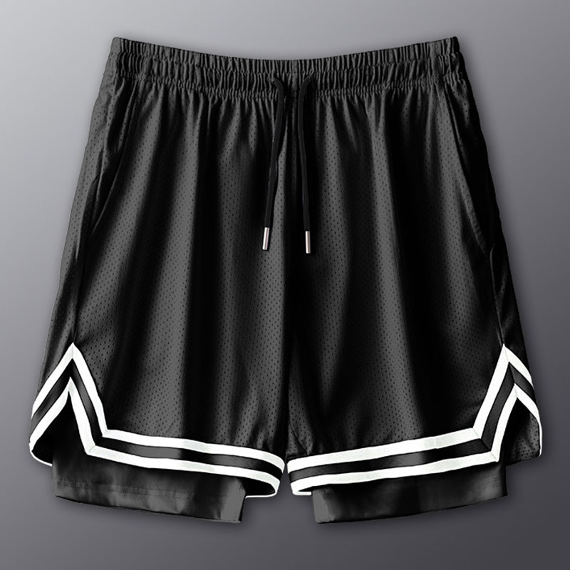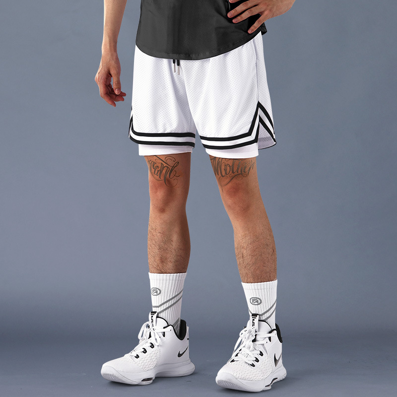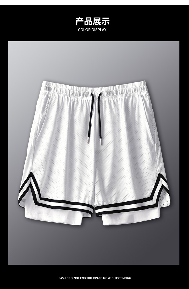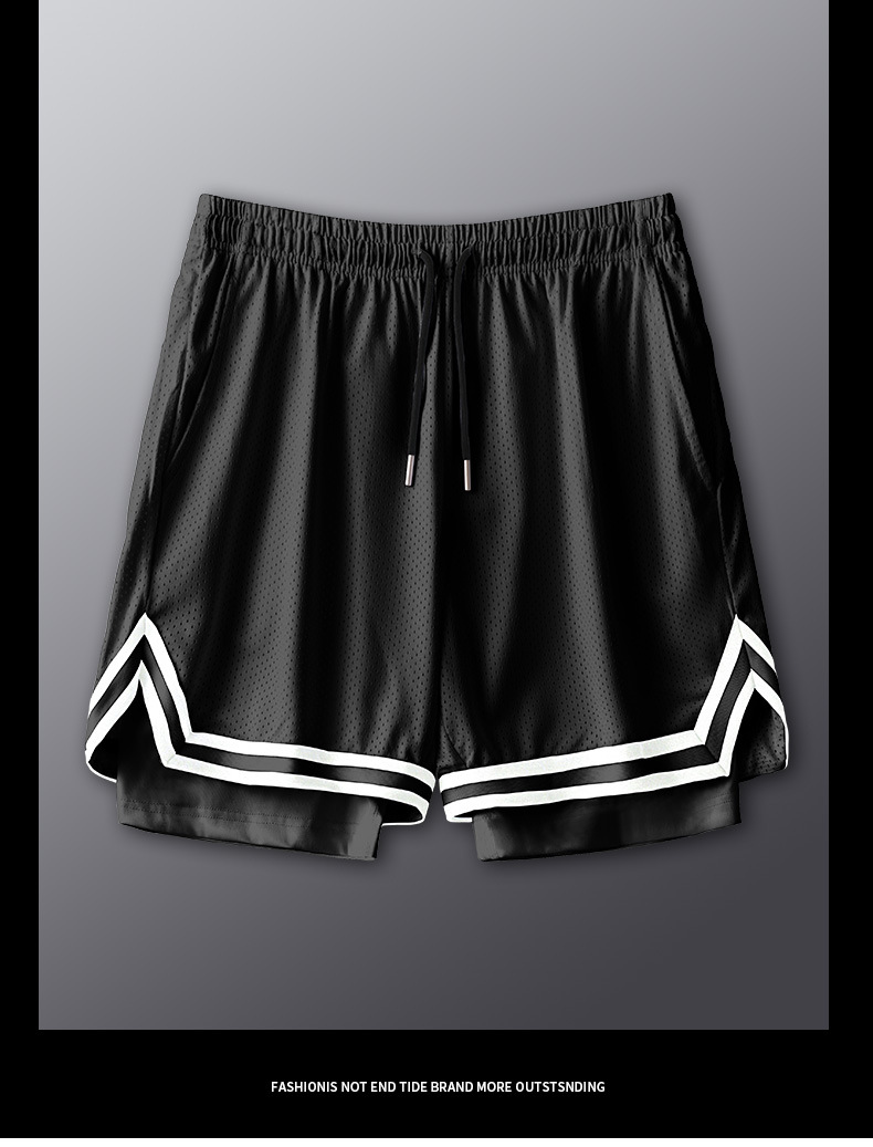 Летние американские баскетбольные шорты, мужские искусственные двухкомпонентные тренировочные спортивные беговые, быстросохнущие шорты для фитнеса на коленях из ледяного шелка