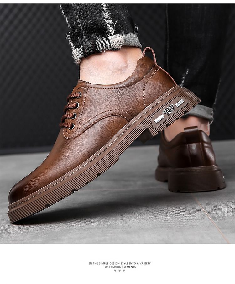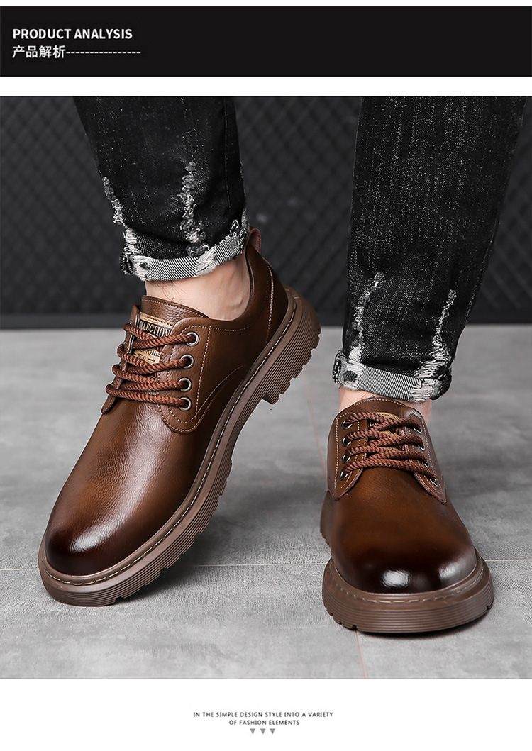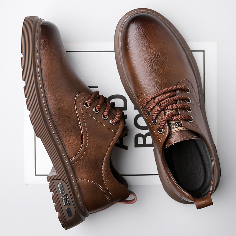 Весенняя Новая мужская кожаная обувь, Мужская Рабочая обувь с большим носком, повседневные короткие сапоги с низким верхом, модная обувь, мужская обувь Martin