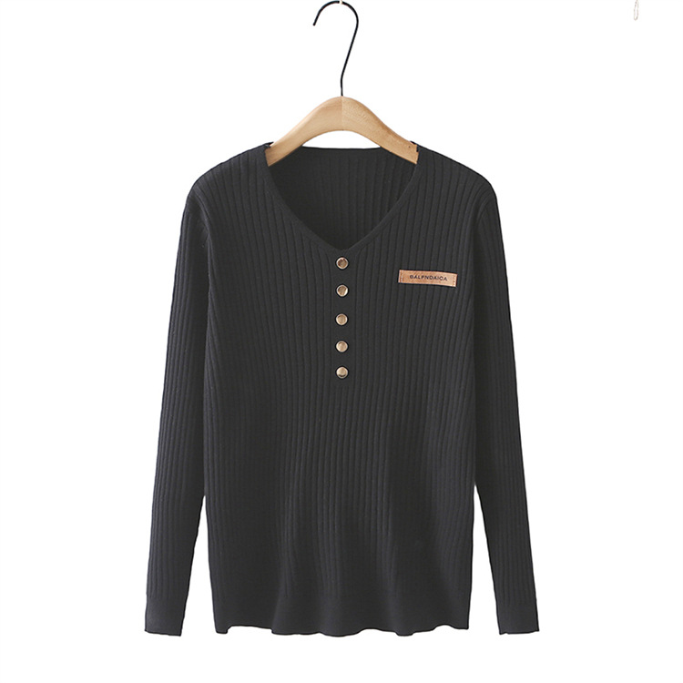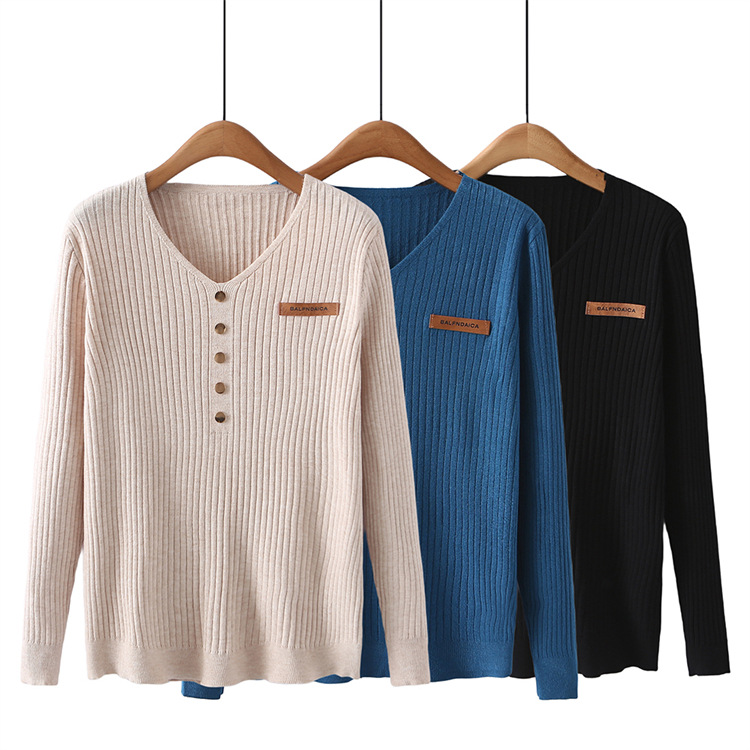 2024 Весна Новый свитер больших размеров с длинными рукавами, Модная приталенная рубашка с V-образным вырезом и надписью для девочек 1015