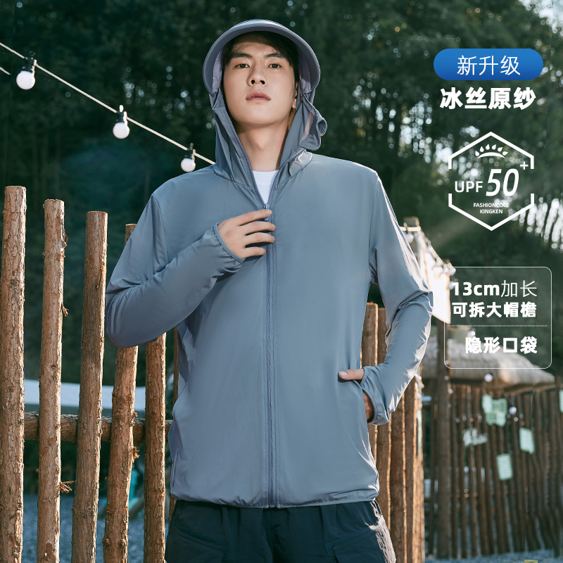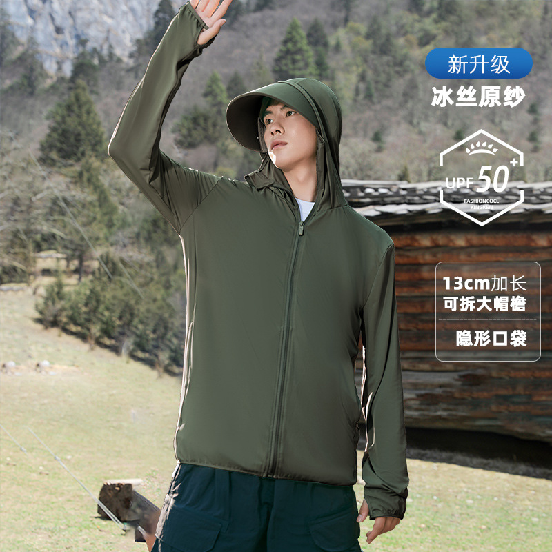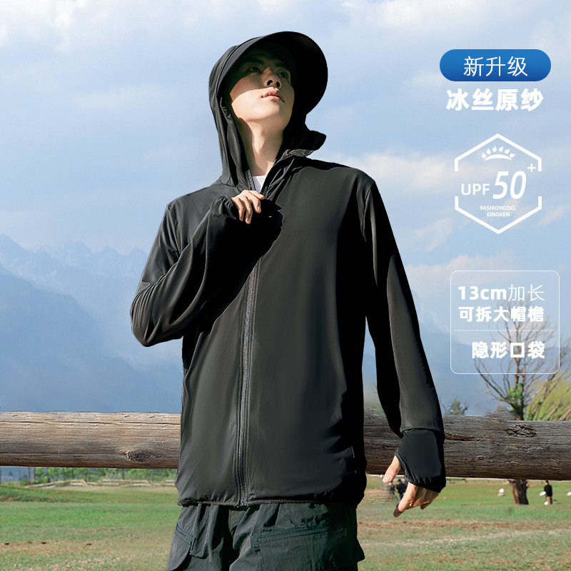 UPF50 + уличная Солнцезащитная одежда мужская летняя защита от ультрафиолета ледяной шелк крутая тонкая Солнцезащитная одежда с капюшоном для рыбалки