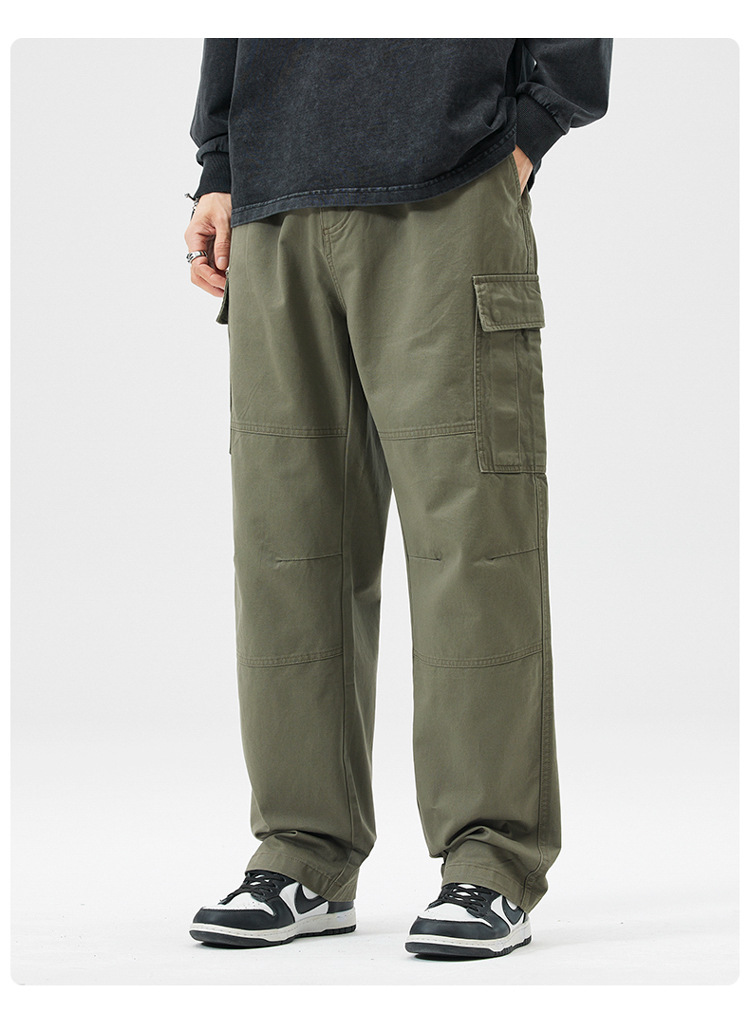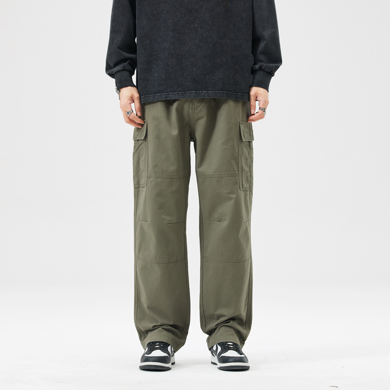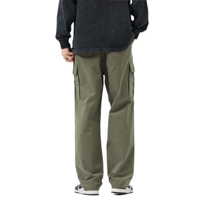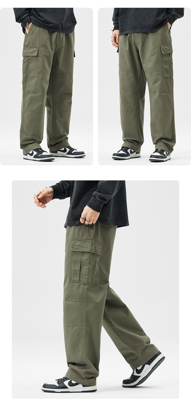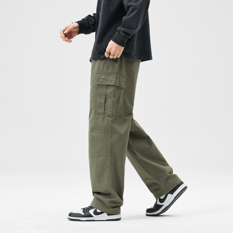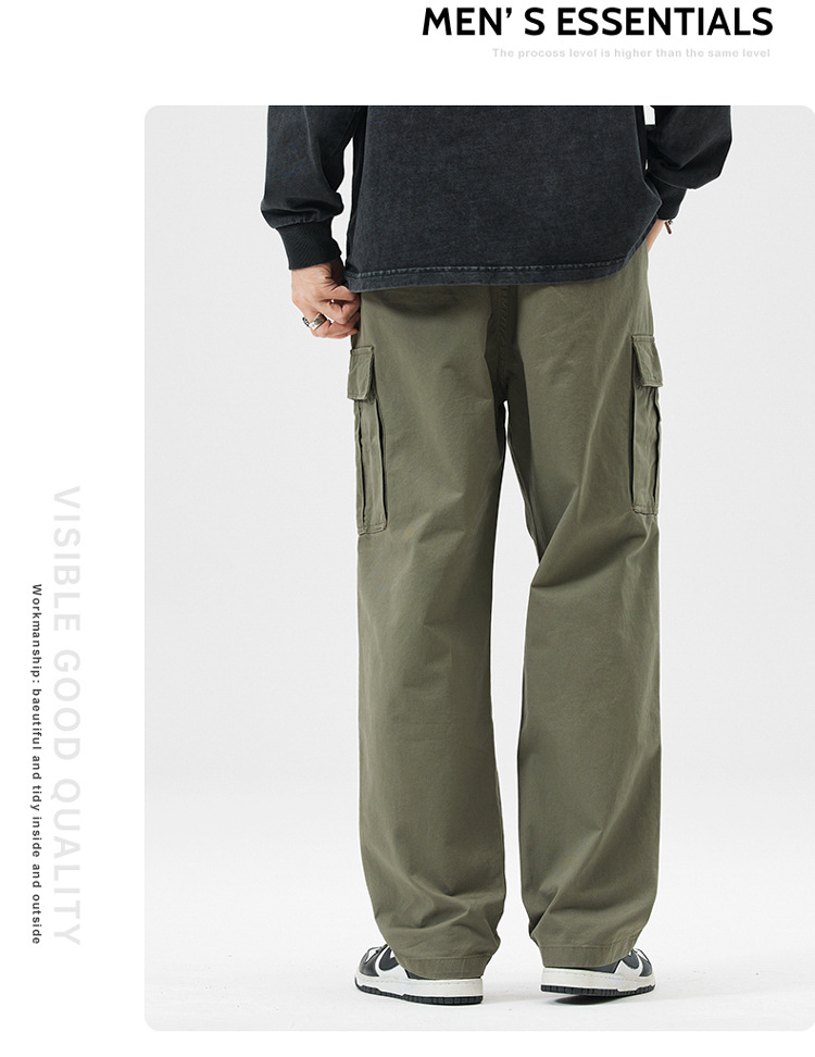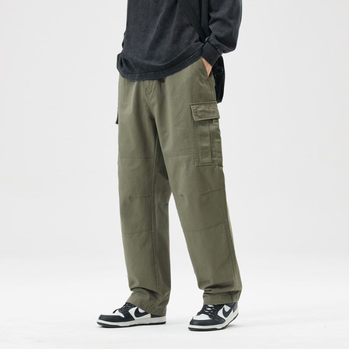 Весенне-осенний хлопковый комбинезон с несколькими карманами, мужские свободные прямые американские модные брендовые зеленые повседневные брюки