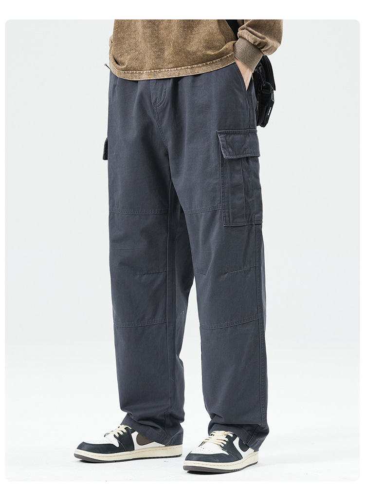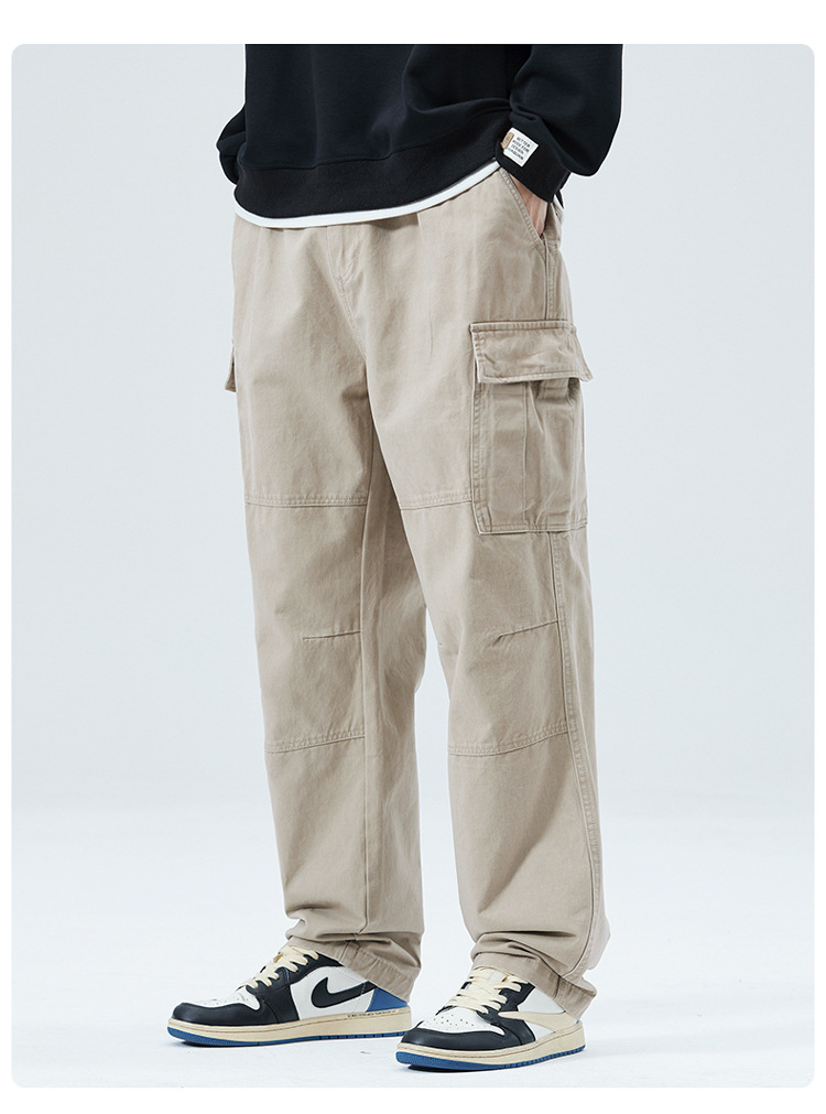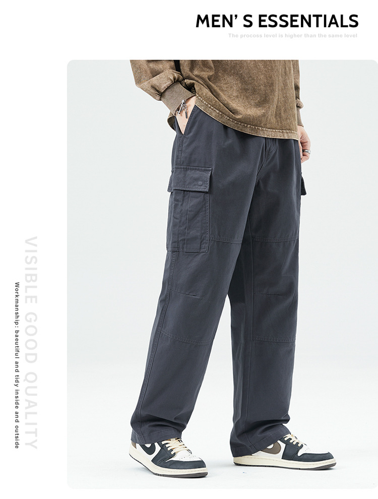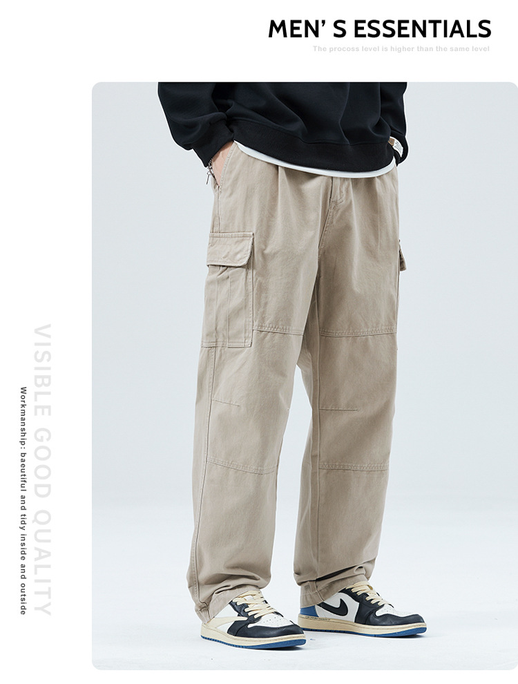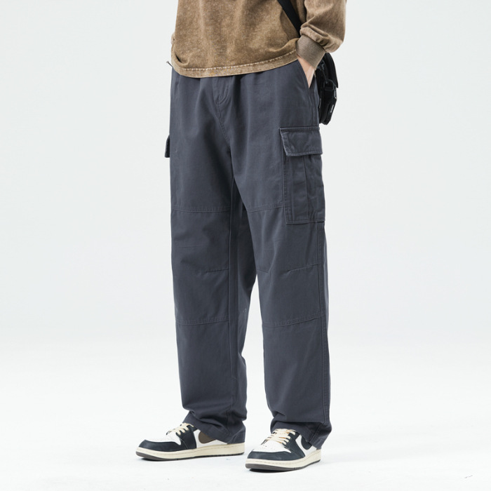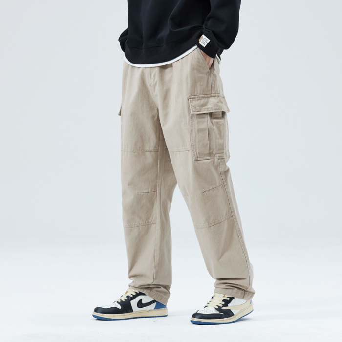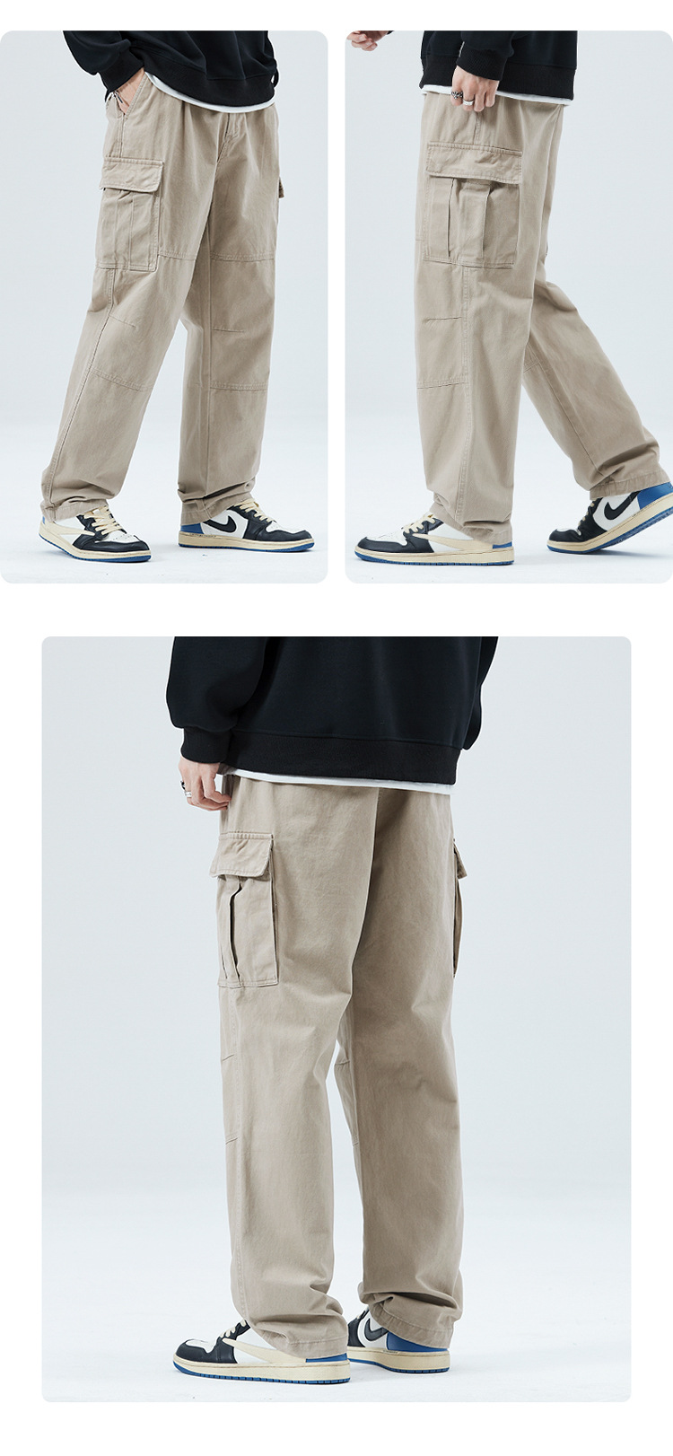Весенне-осенний хлопковый комбинезон с несколькими карманами, мужские свободные прямые американские модные брендовые зеленые повседневные брюки