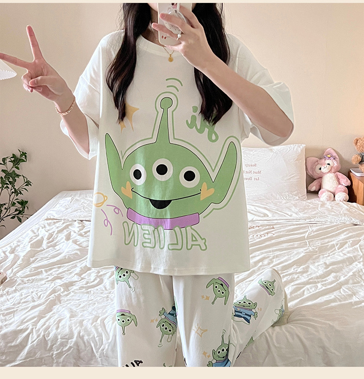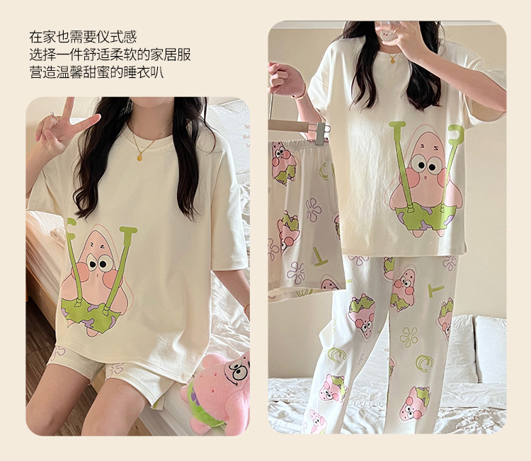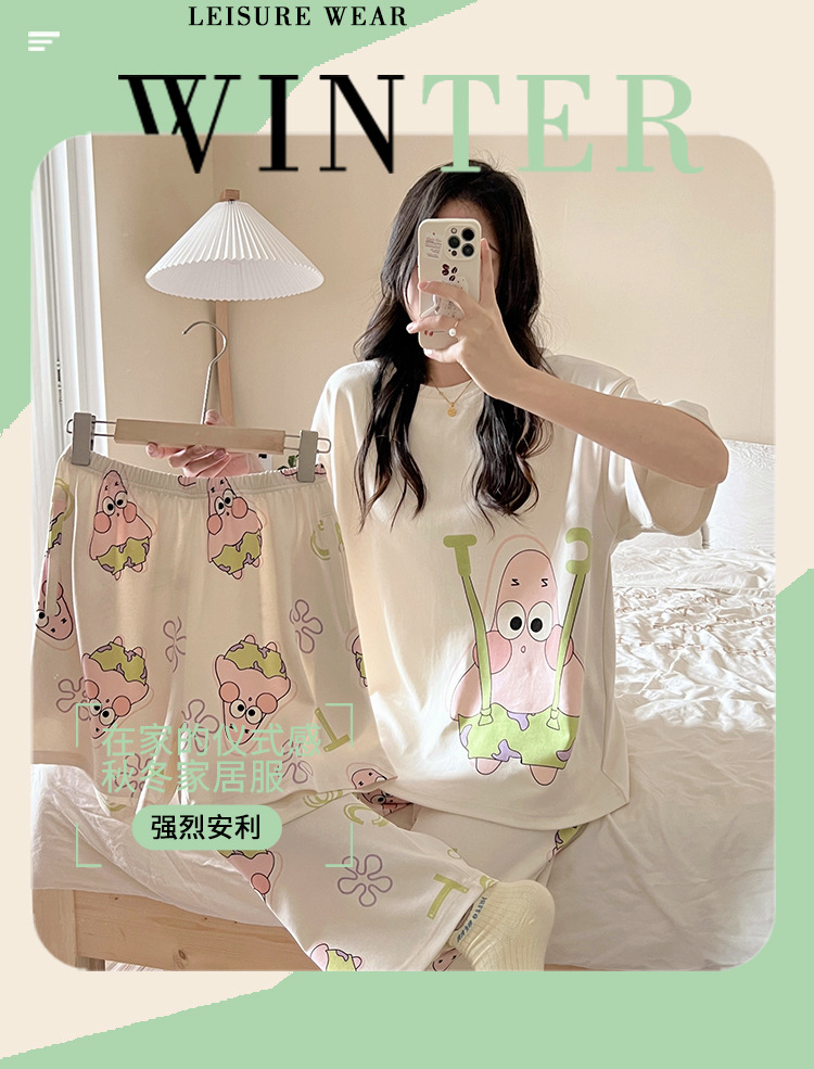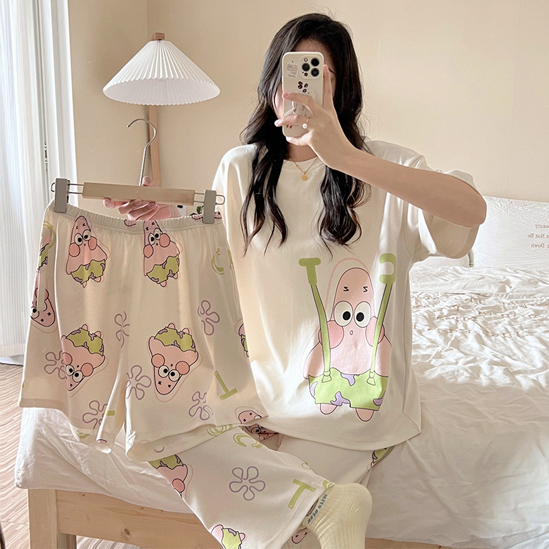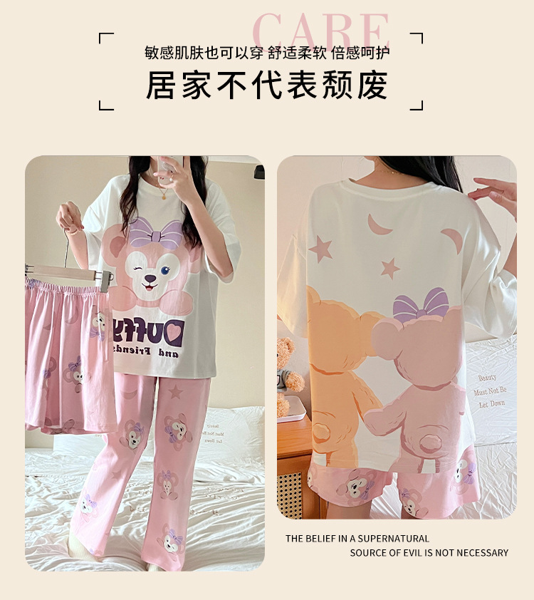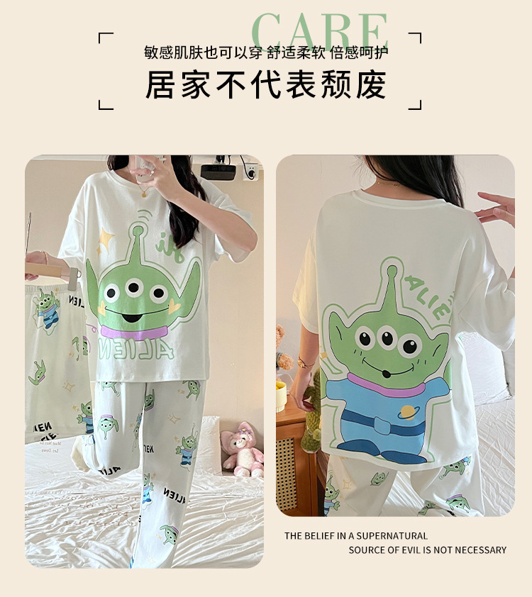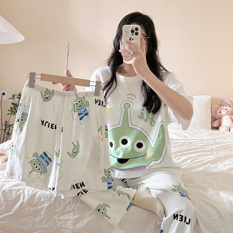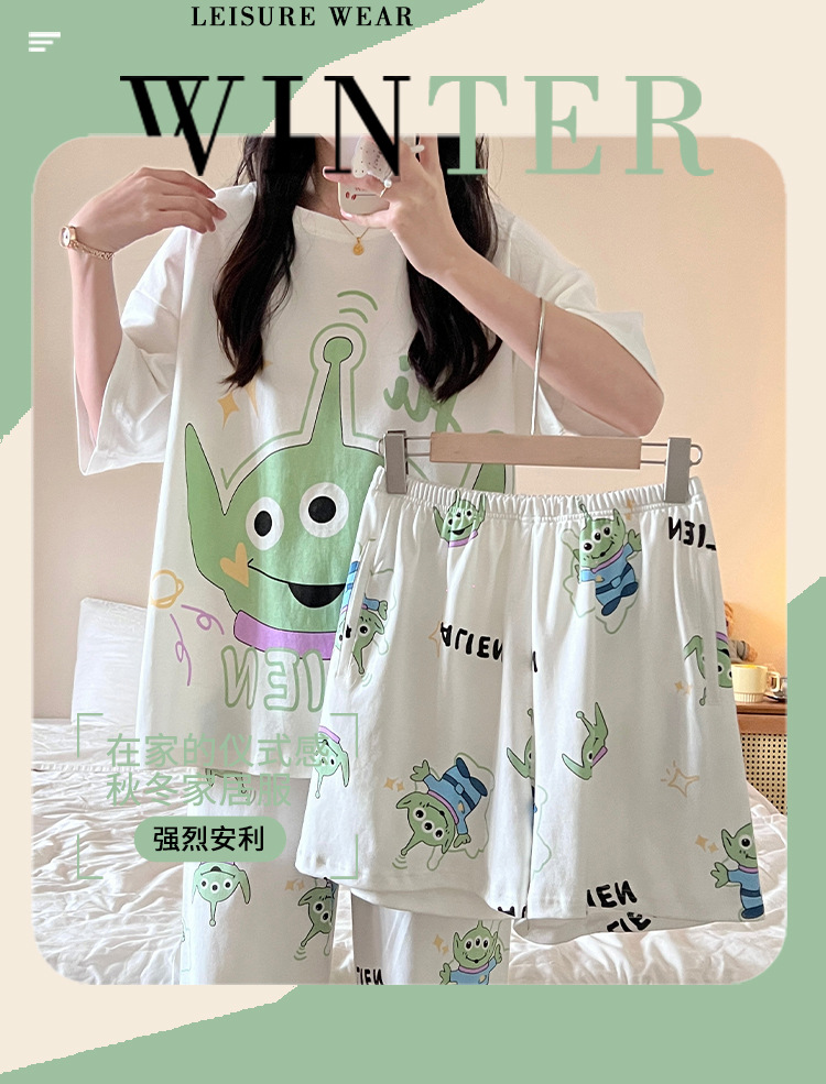 Пижама, женский летний костюм-тройка, тонкие брюки с короткими рукавами, верхняя одежда, повседневная Милая женская домашняя одежда с героями мультфильмов