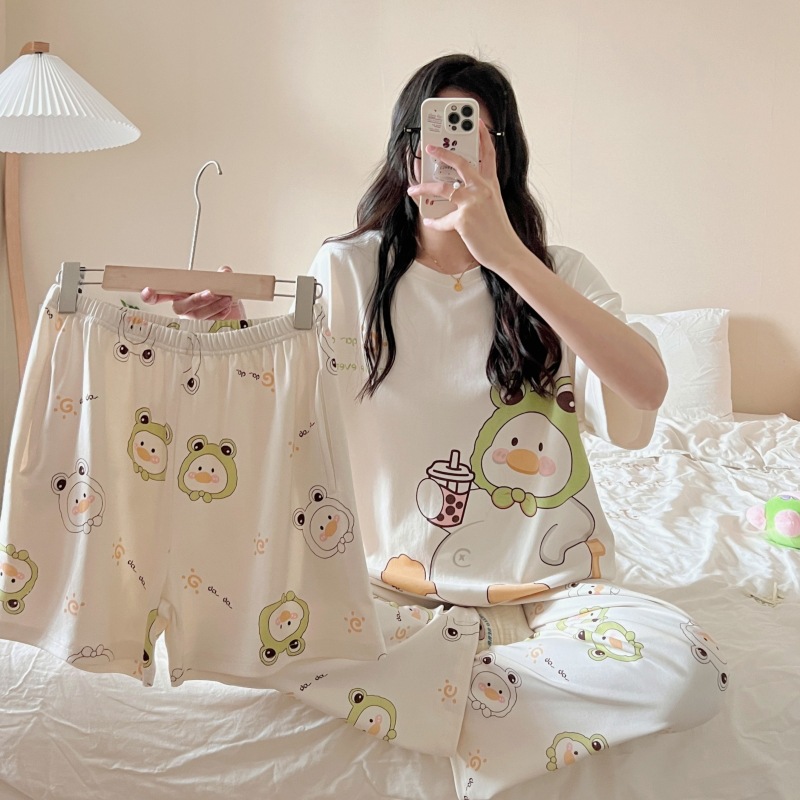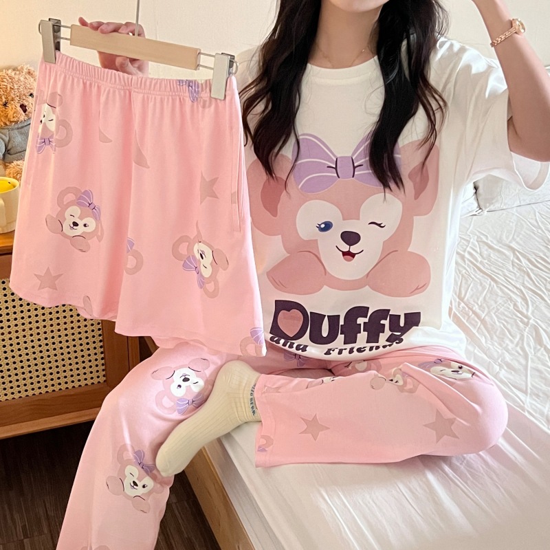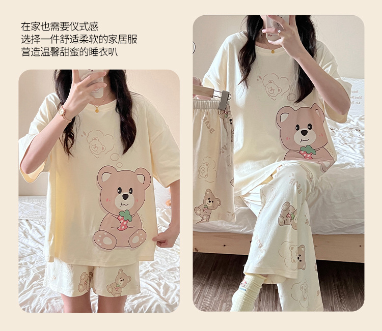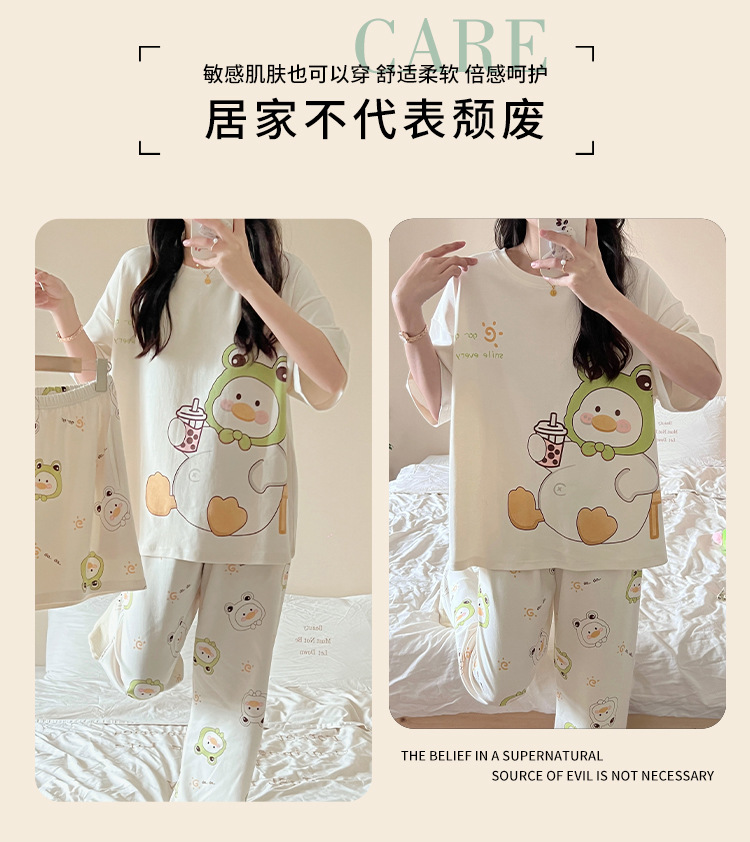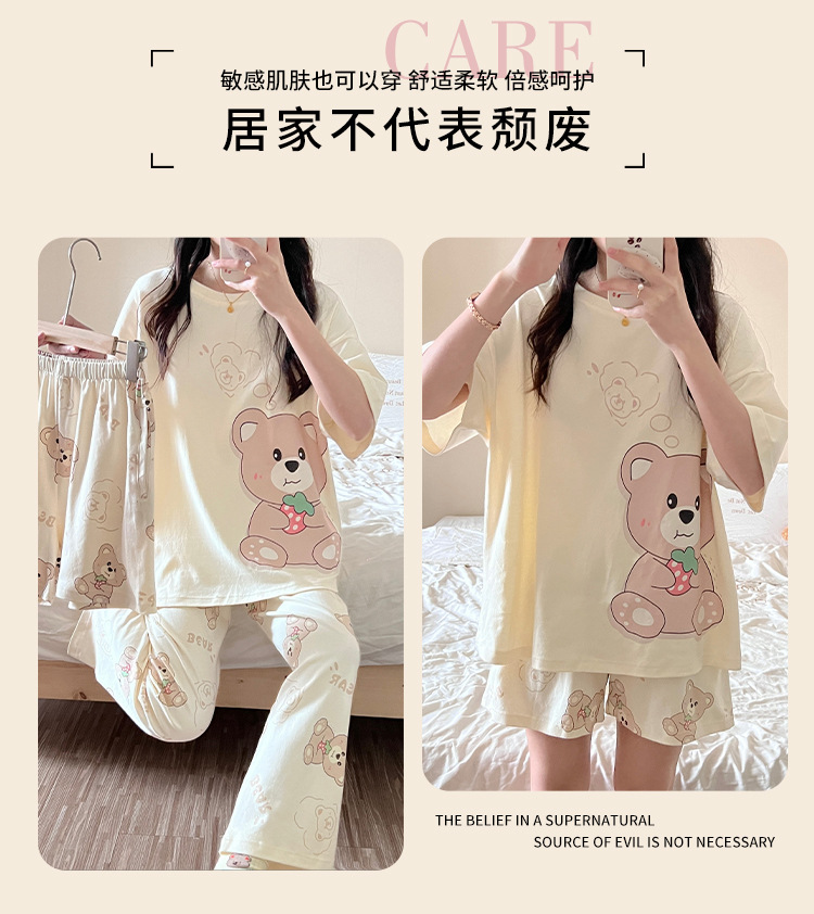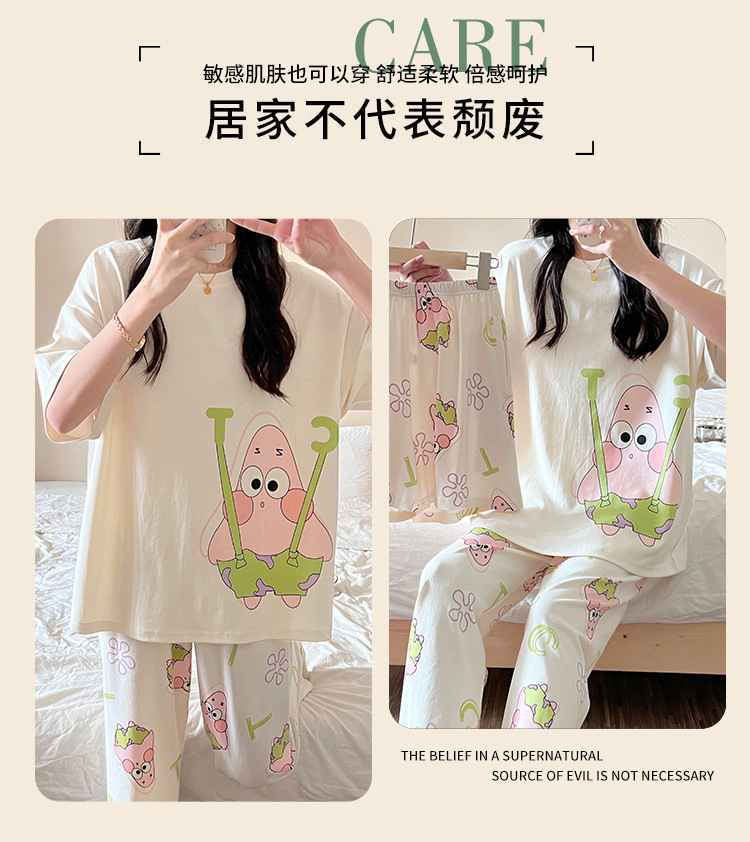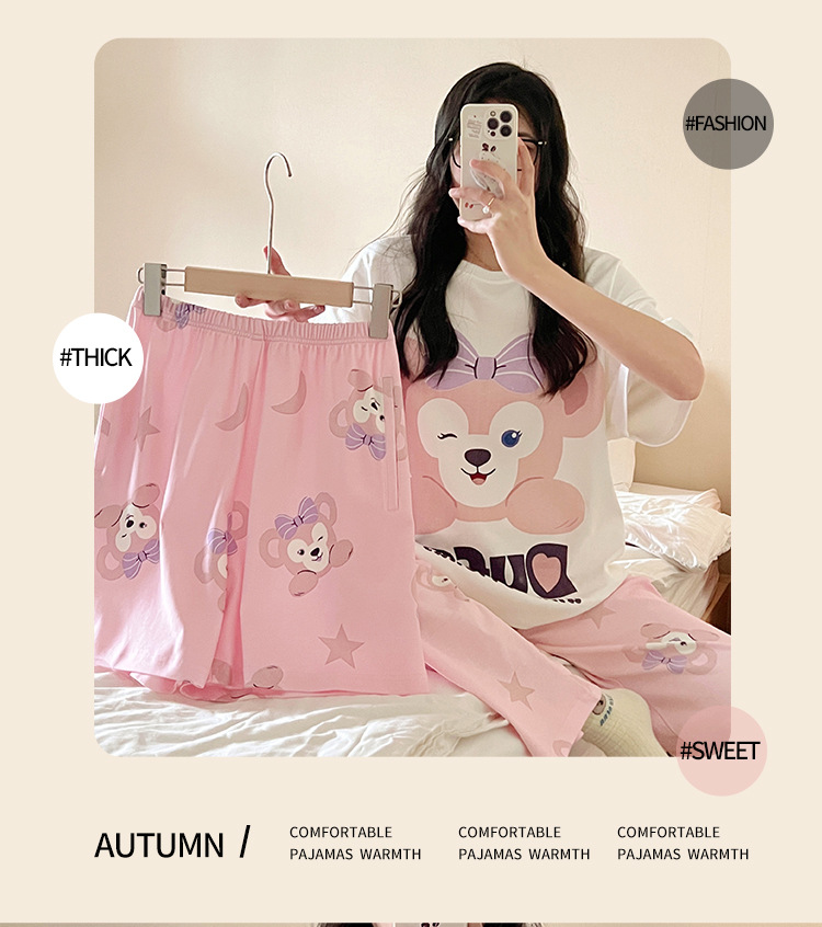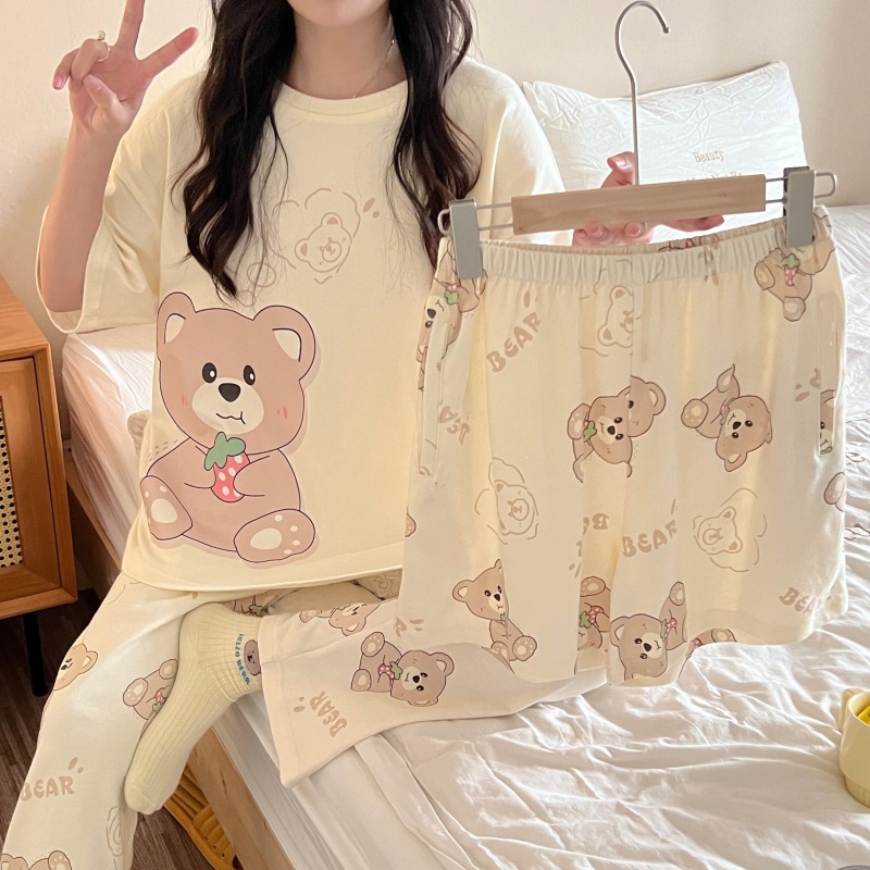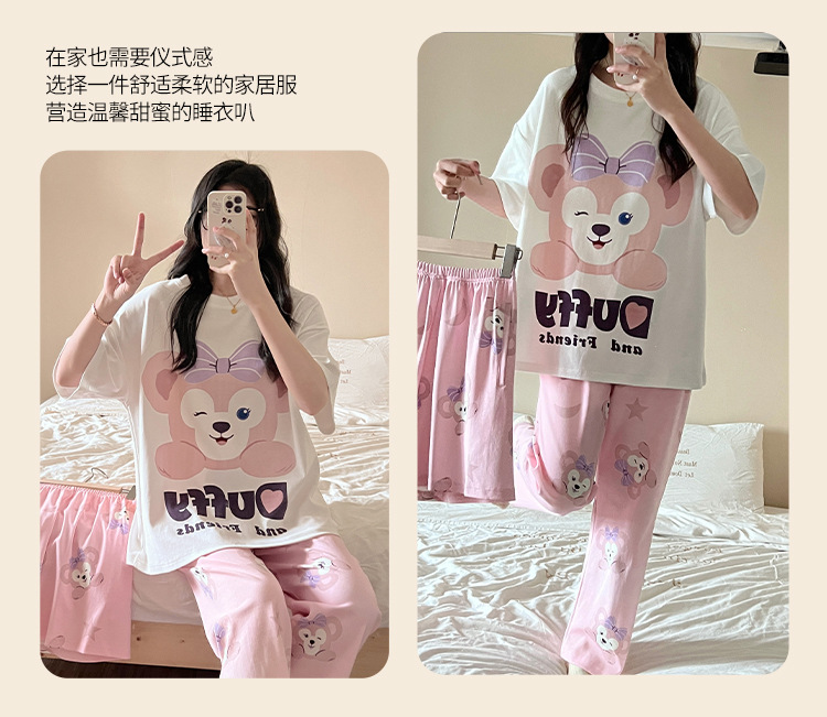 Пижама, женский летний костюм-тройка, тонкие брюки с короткими рукавами, верхняя одежда, повседневная Милая женская домашняя одежда с героями мультфильмов
