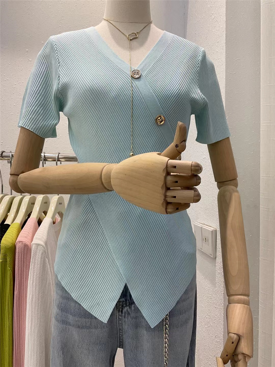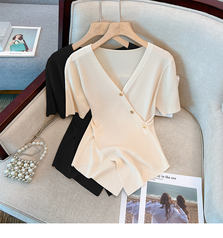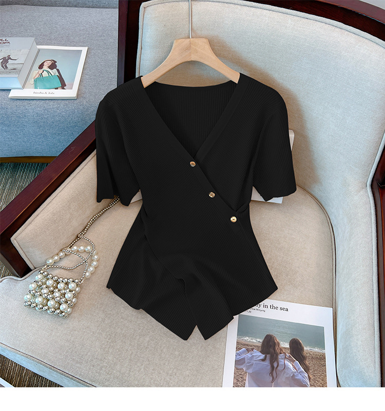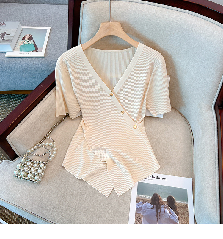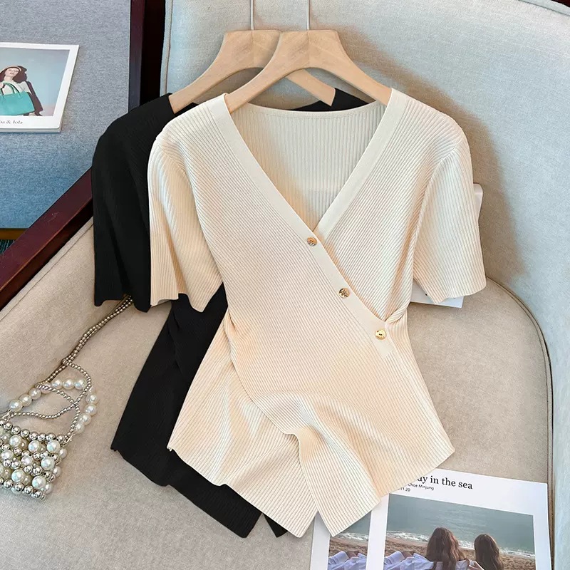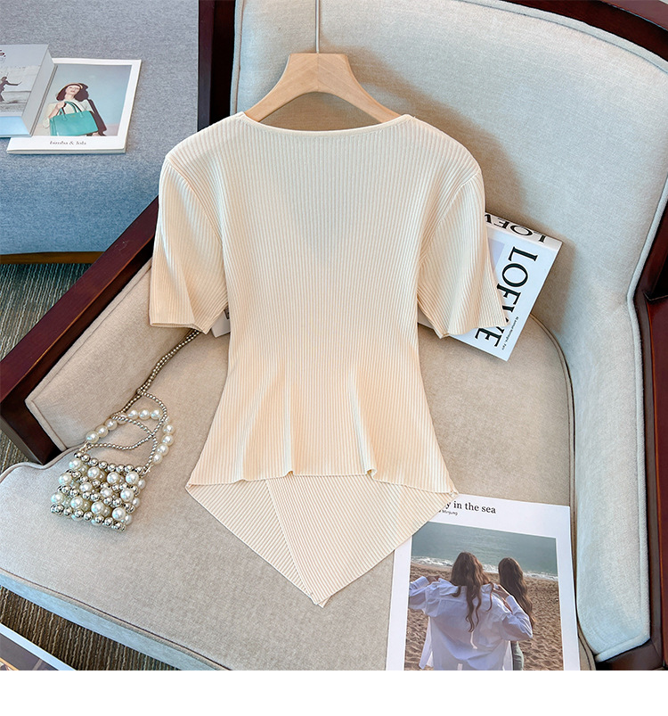Женский свитер больших размеров из ледяного шелка с короткими рукавами, летняя дизайнерская нишевая футболка, нерегулярная Верхняя Мода для похудения