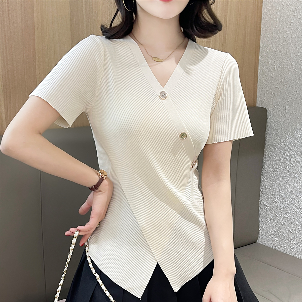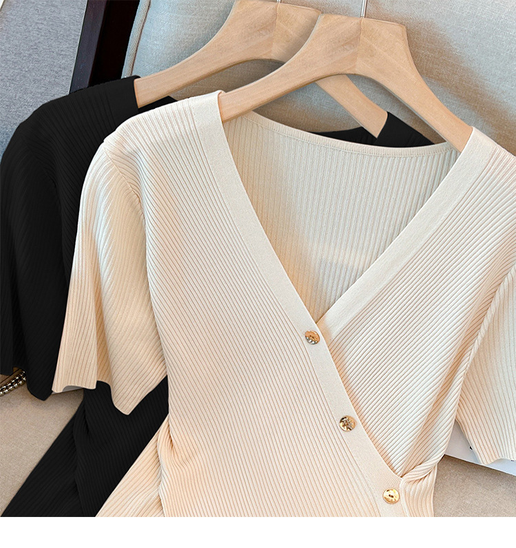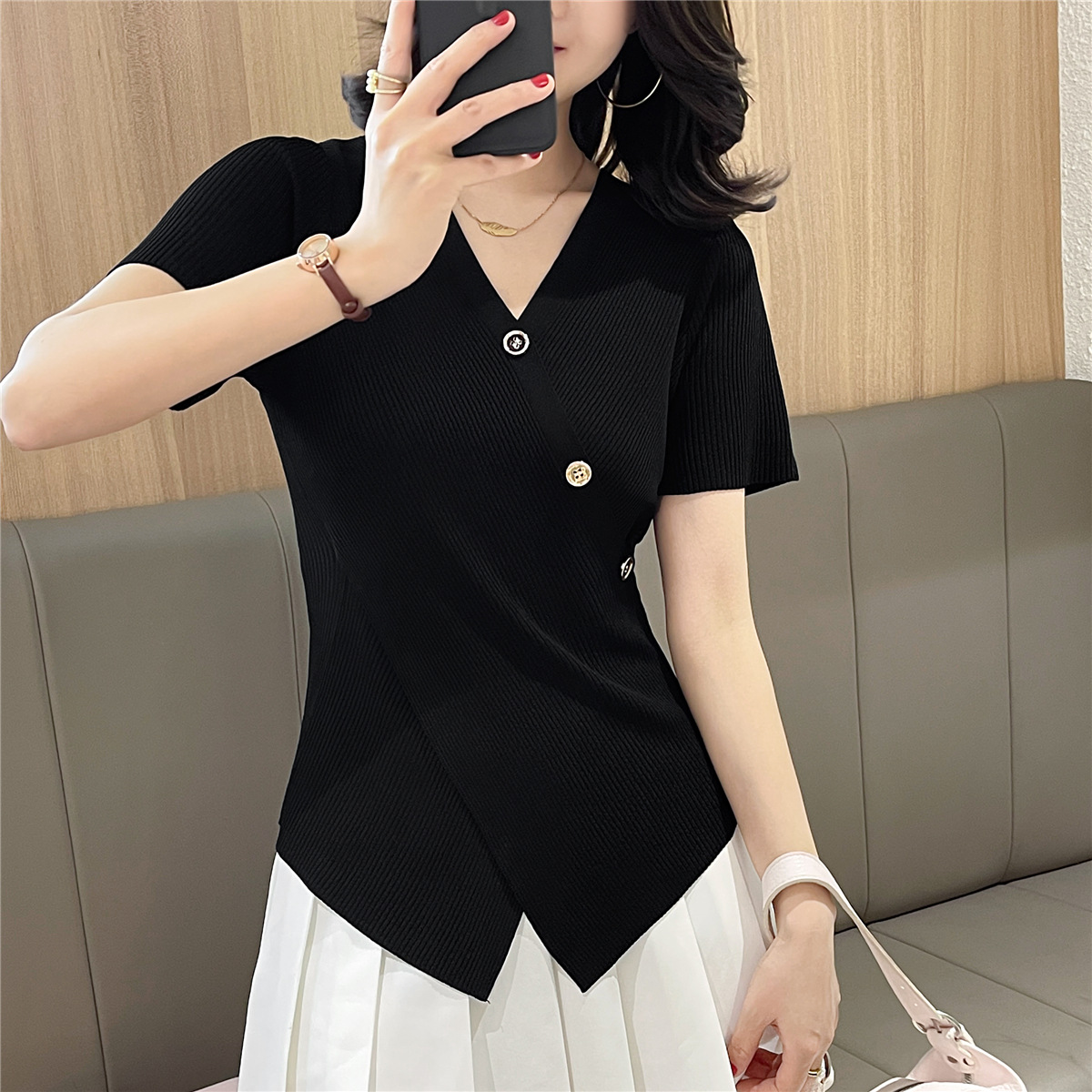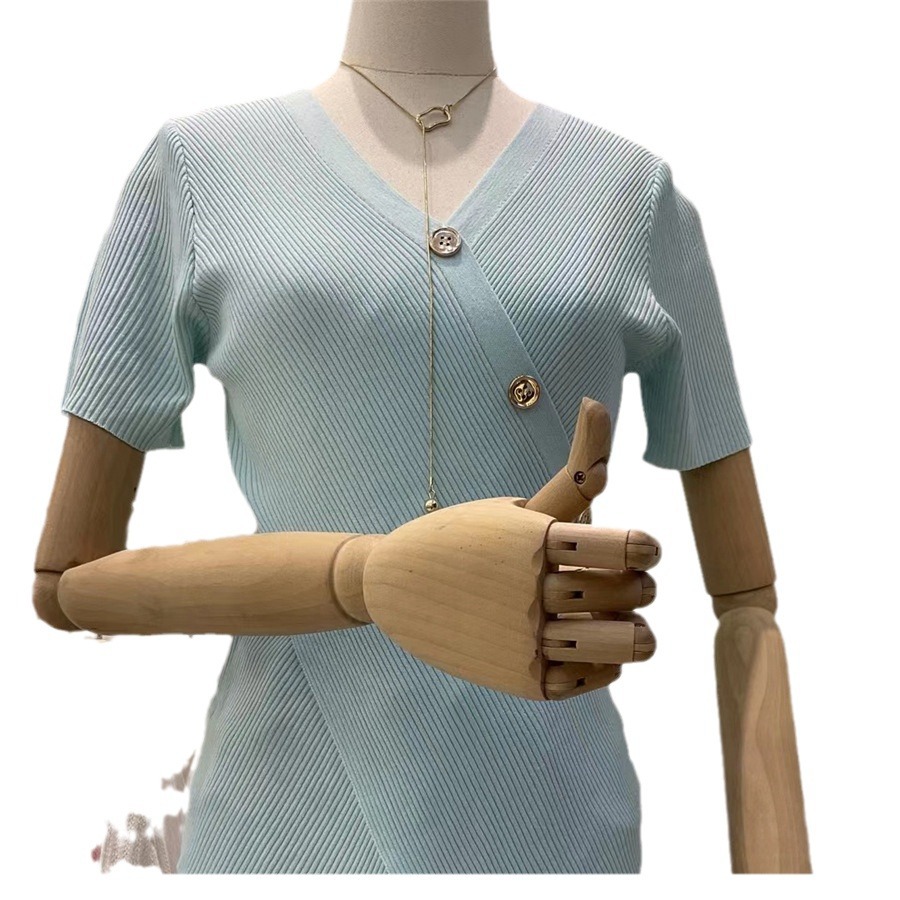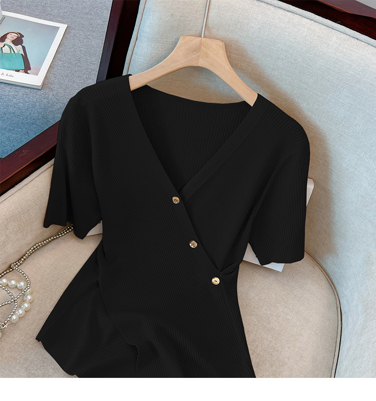 Женский свитер больших размеров из ледяного шелка с короткими рукавами, летняя дизайнерская нишевая футболка, нерегулярная Верхняя Мода для похудения